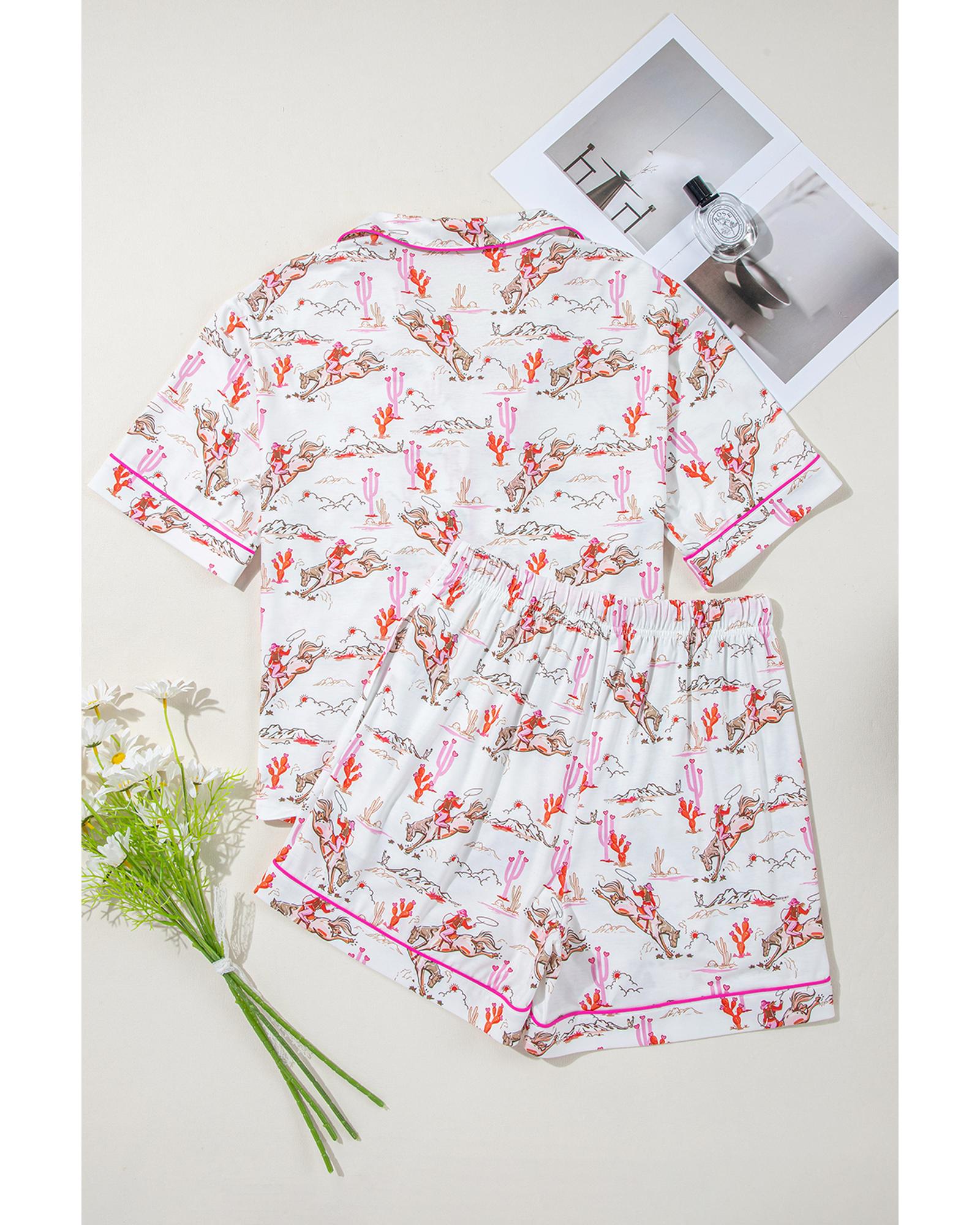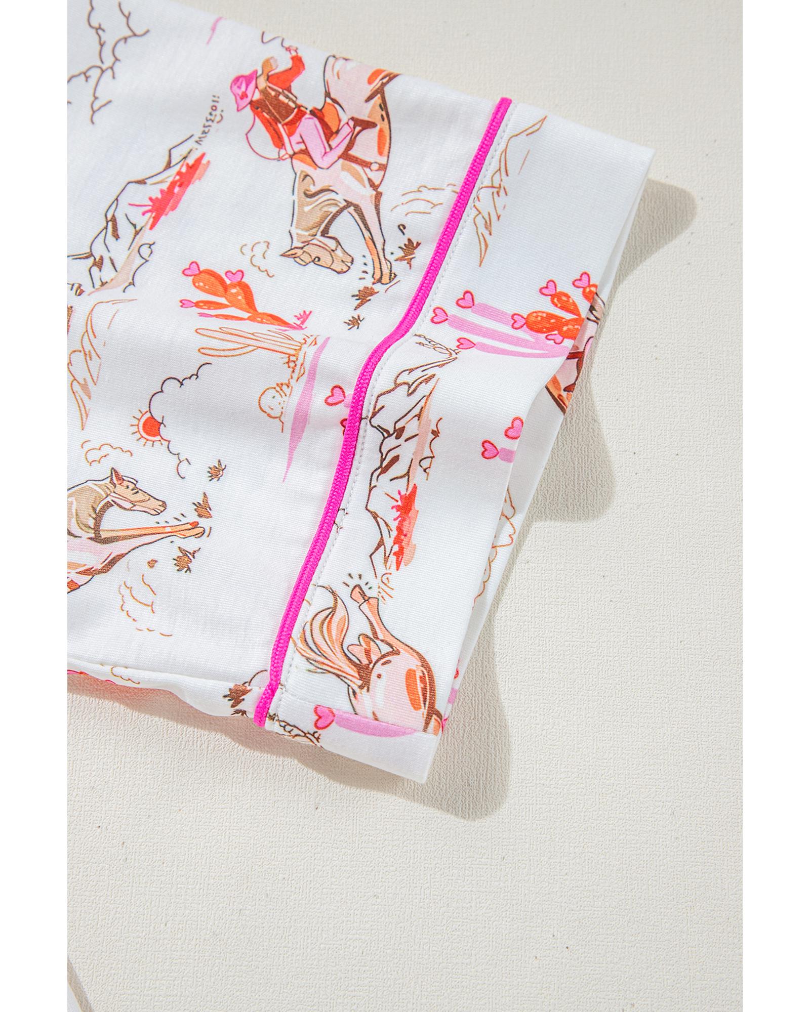 White Christmas Pattern Long Sleeve Top and Wide Leg Pants Set - S