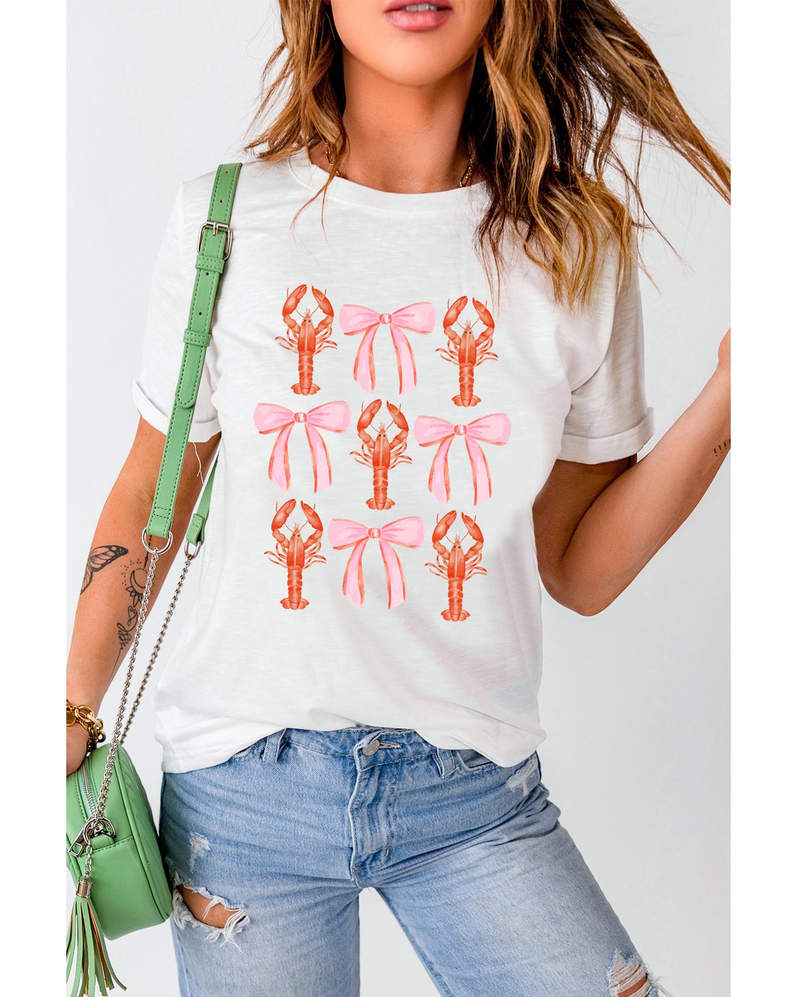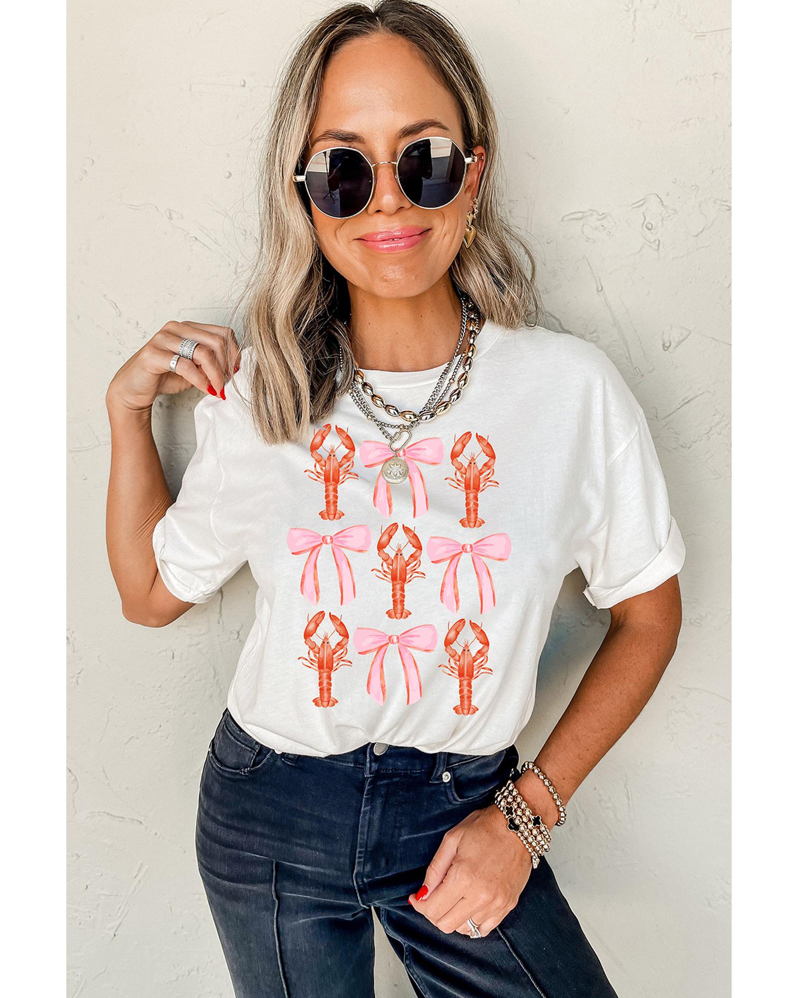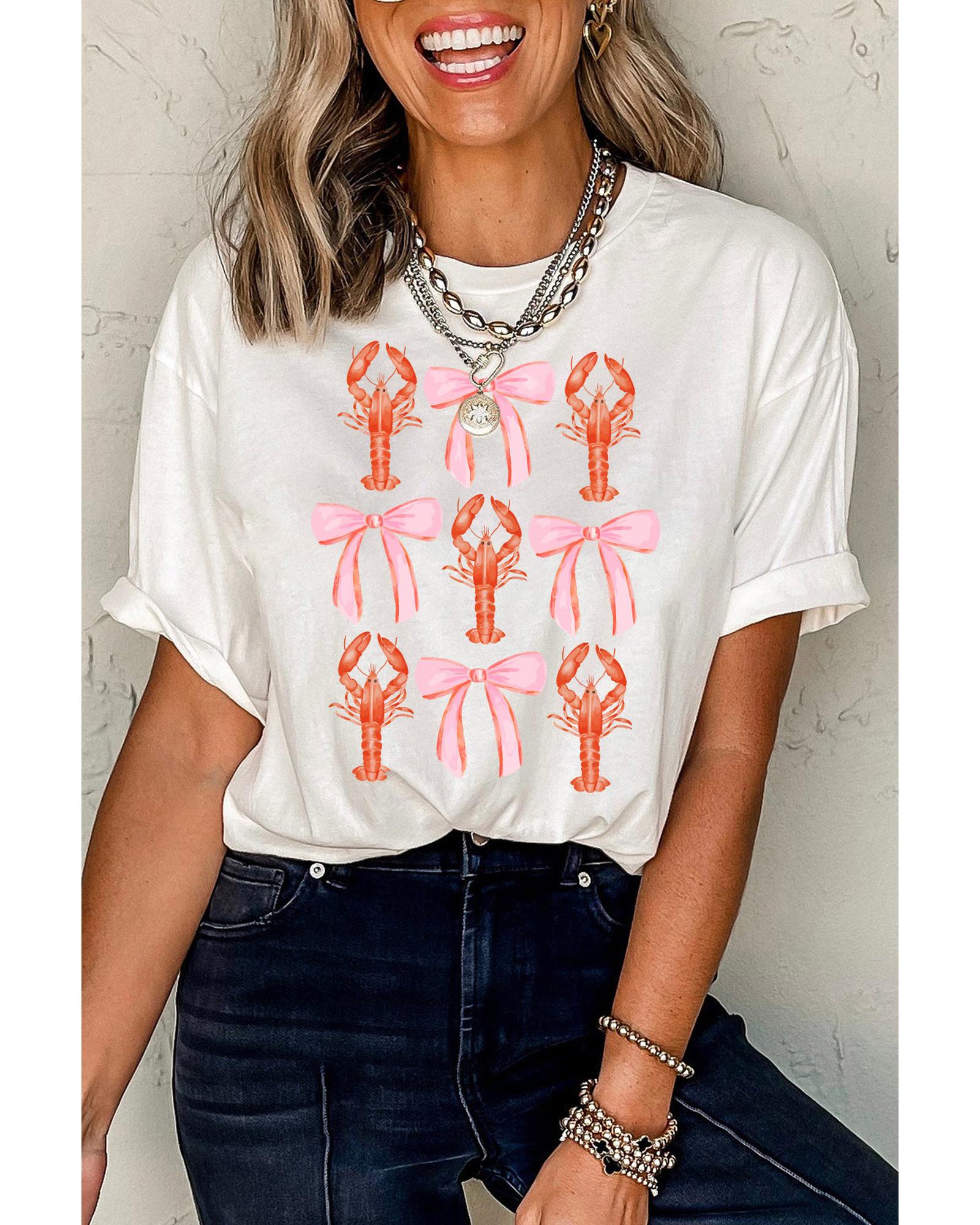 Pink Stars and Stripes Bow Knot Crew Neck T Shirt - 3XL