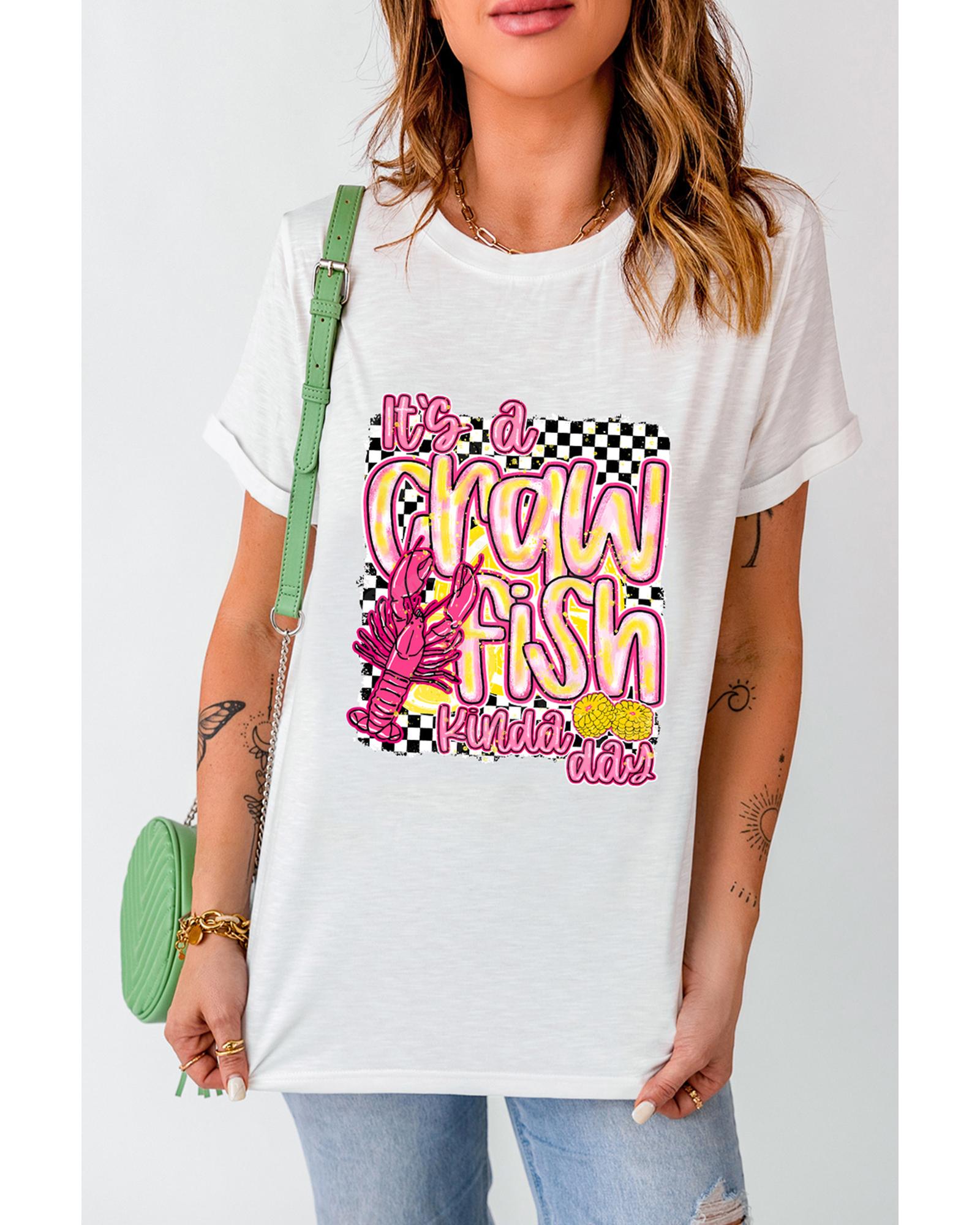 White Crawfish Checkered Pattern Graphic Tee – XL