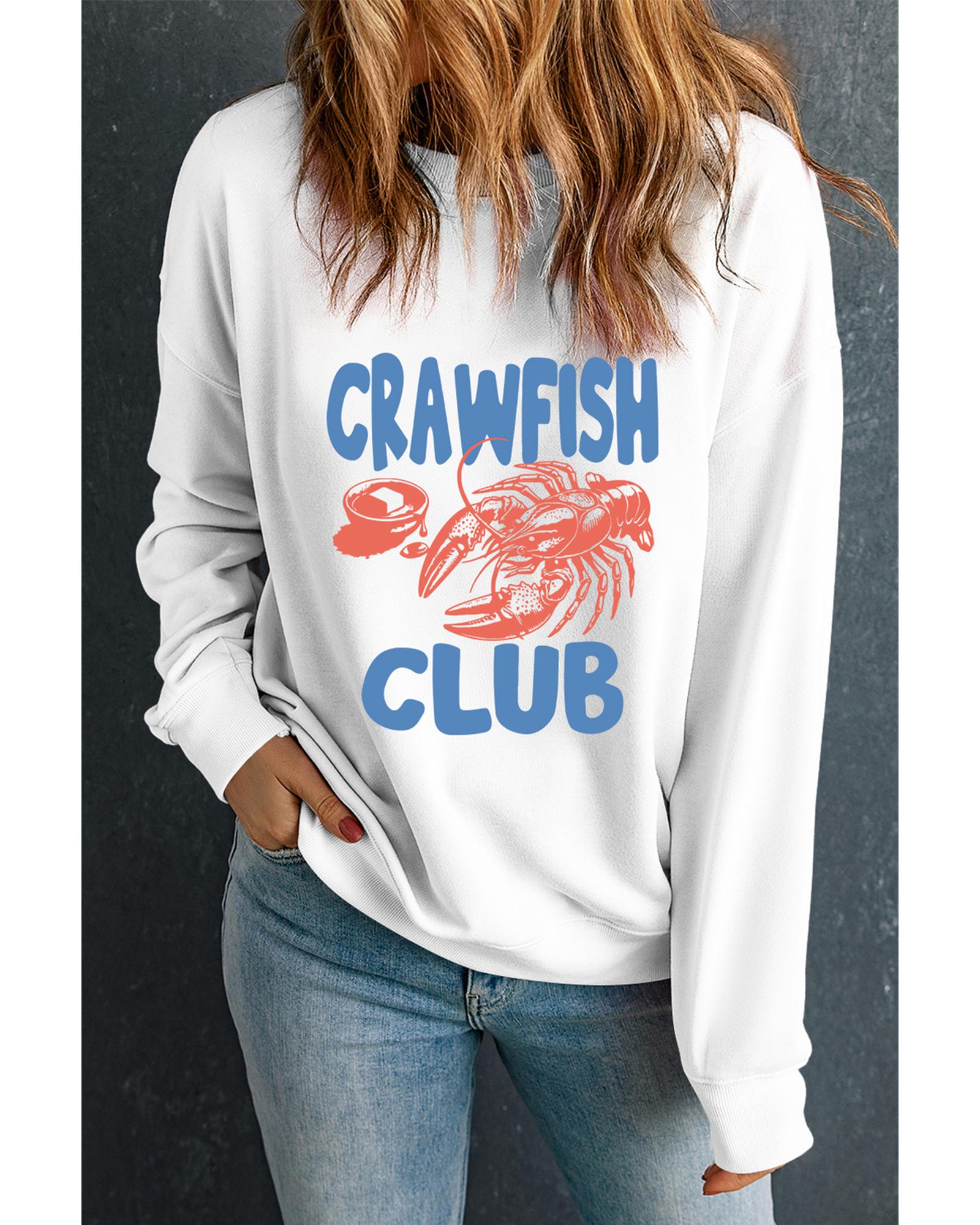 White CRAWFISH CLUB Printed Drop Shoulder Sweatshirt – L