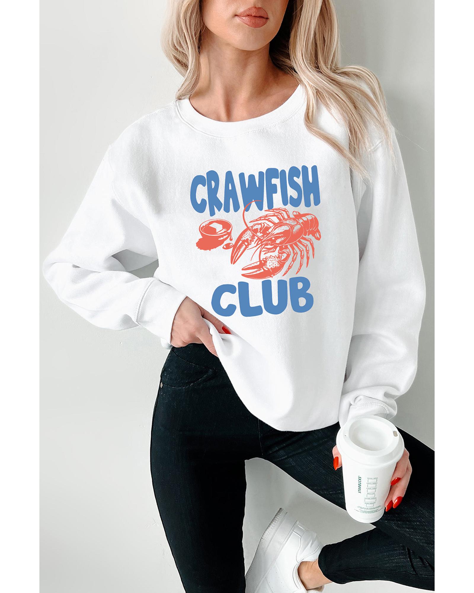 White CRAWFISH CLUB Printed Drop Shoulder Sweatshirt – S