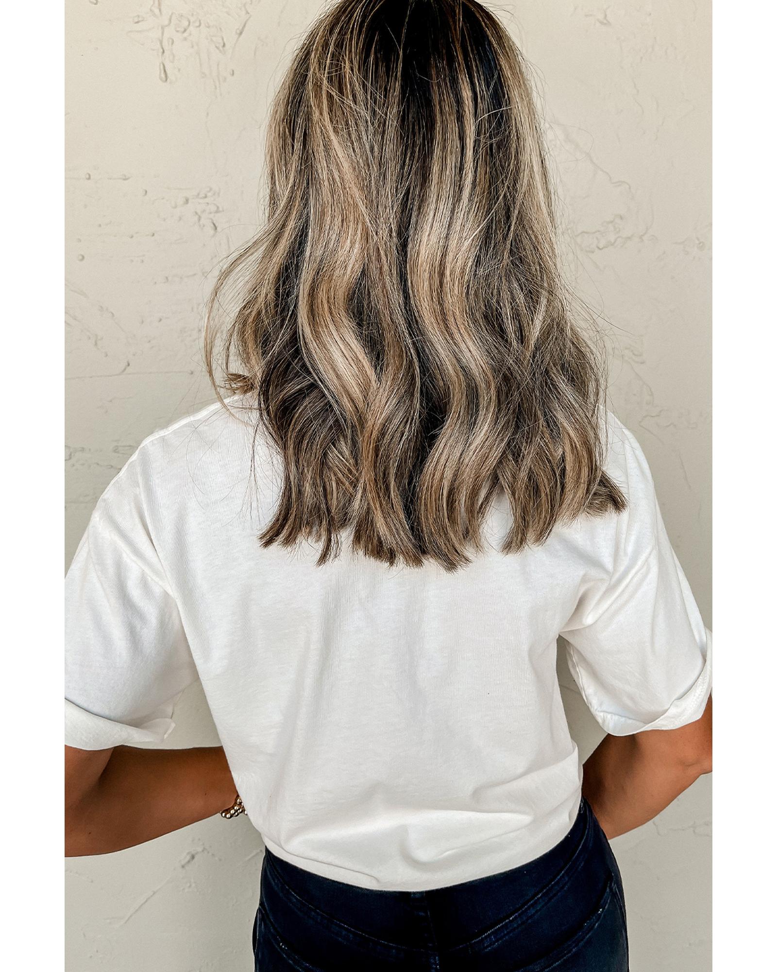 White Sequined Mardi Gras Symbolic Pattern Casual Tee - M