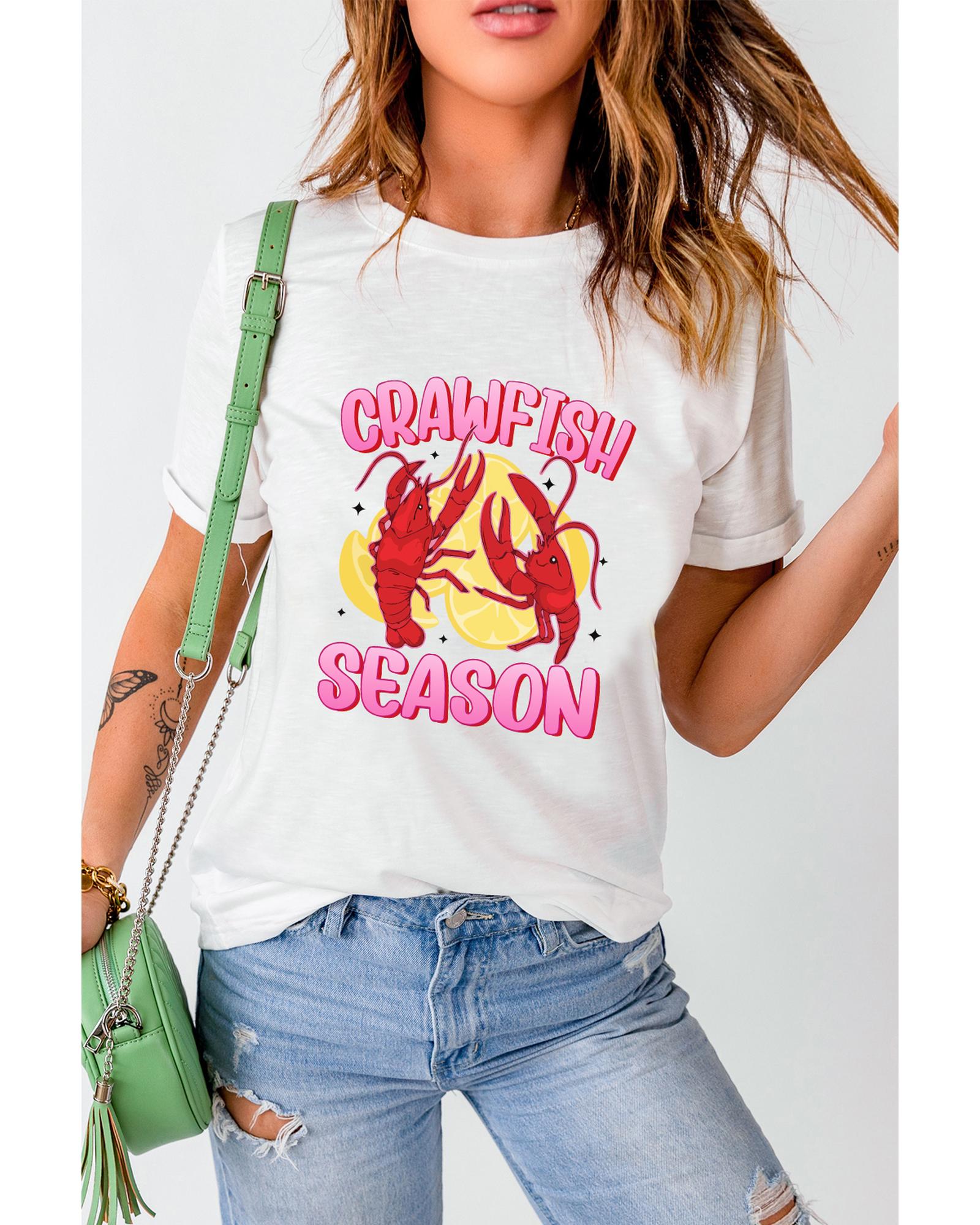 - Trendy graphic tee featuring playful crawfish and lemon spice patterns