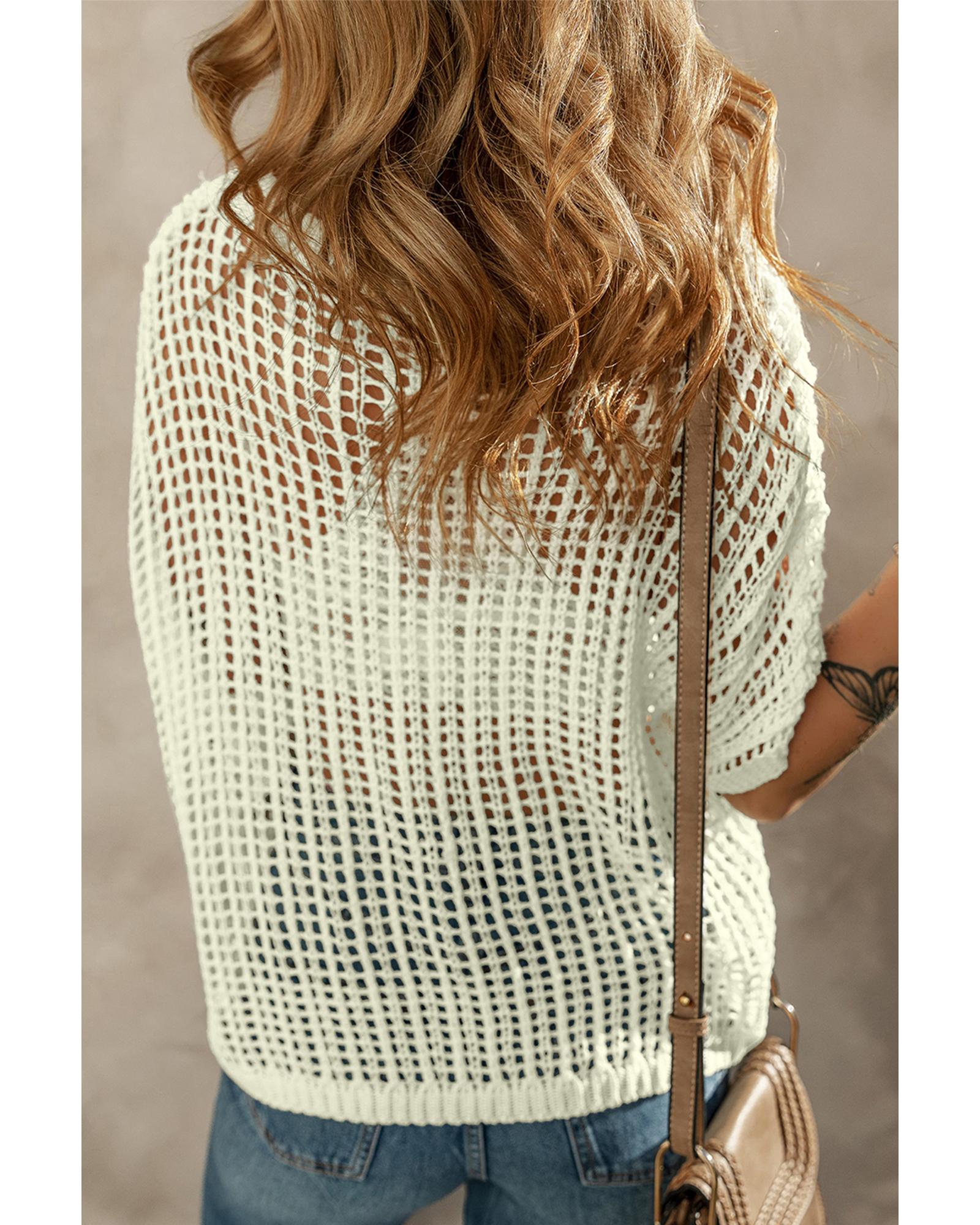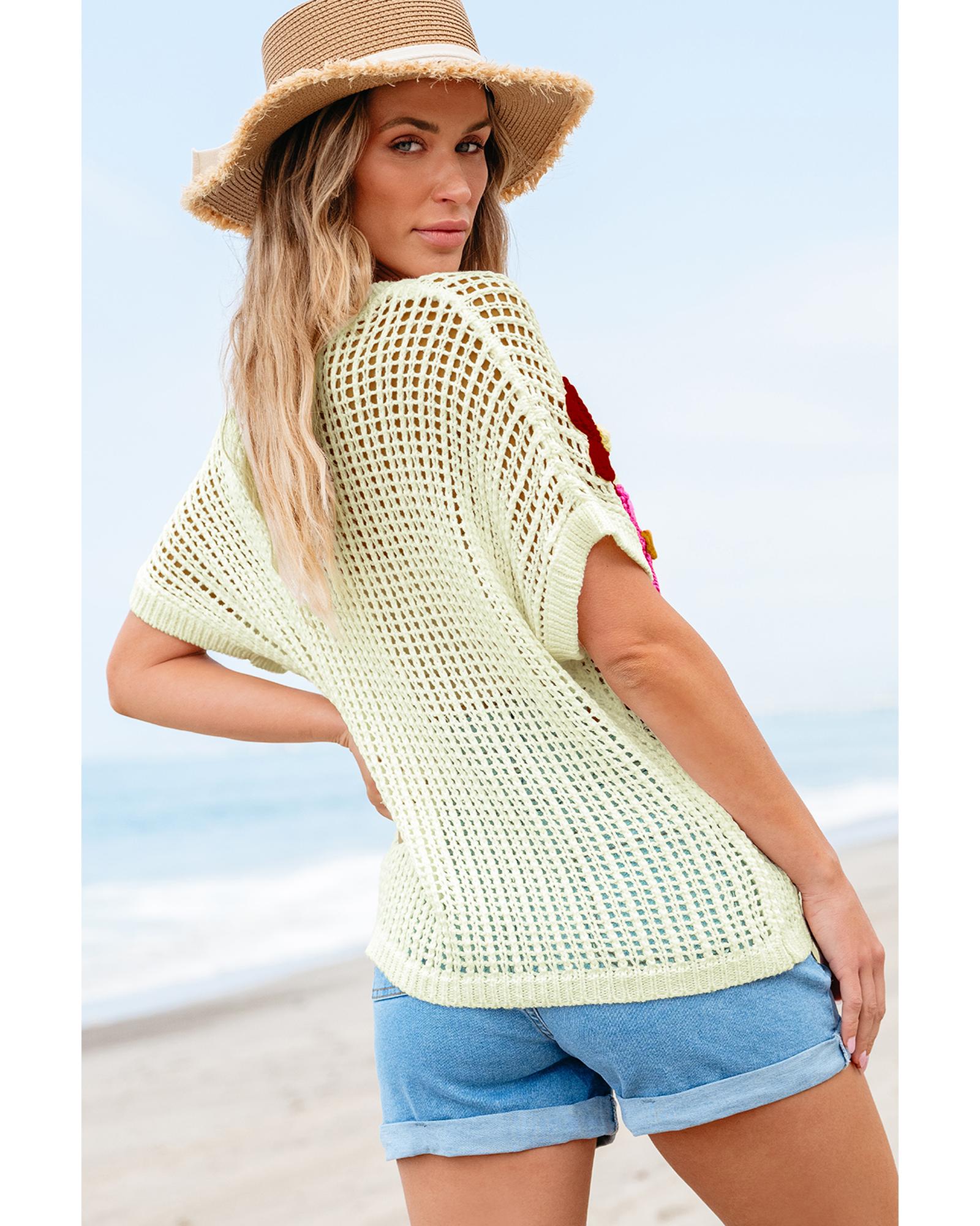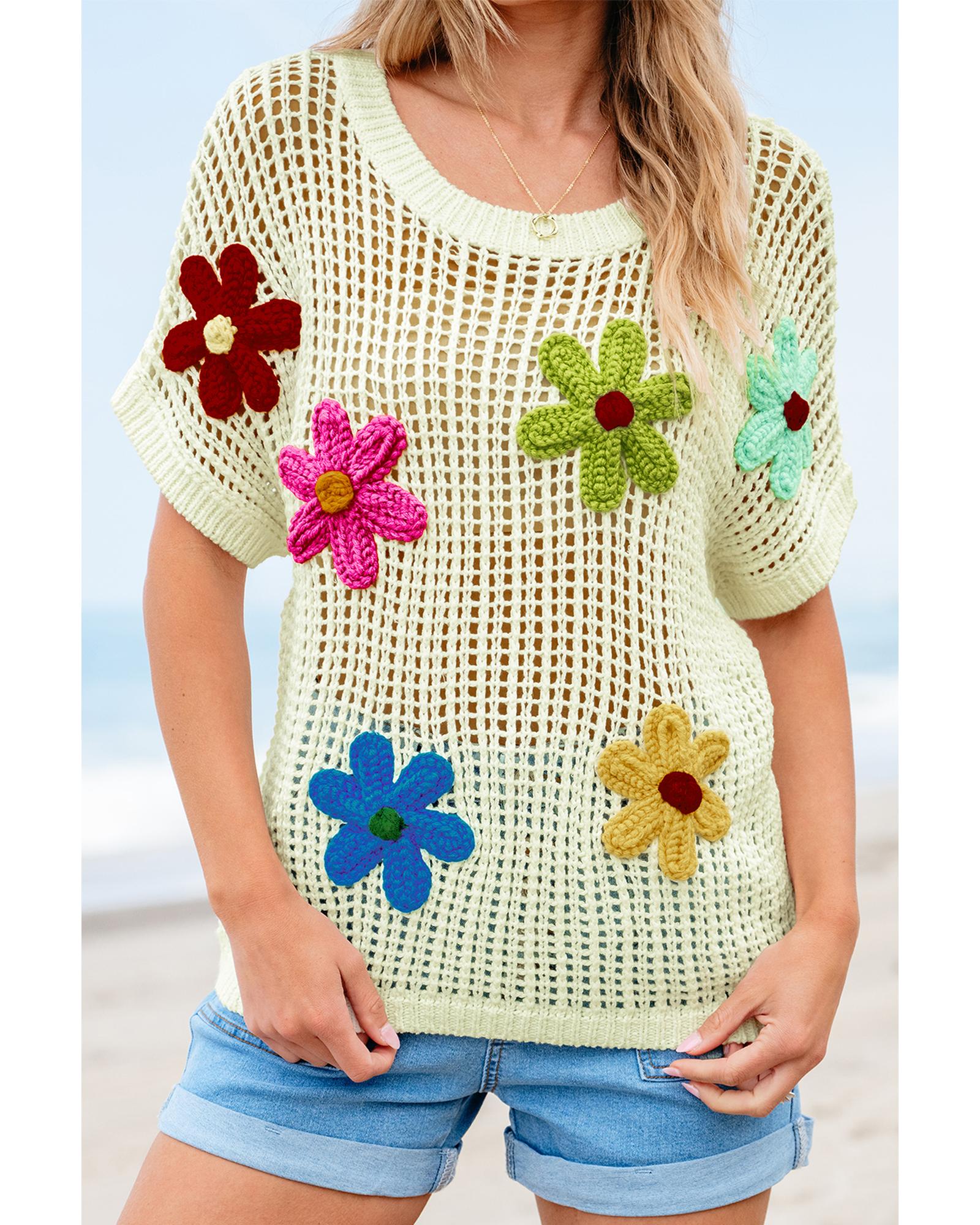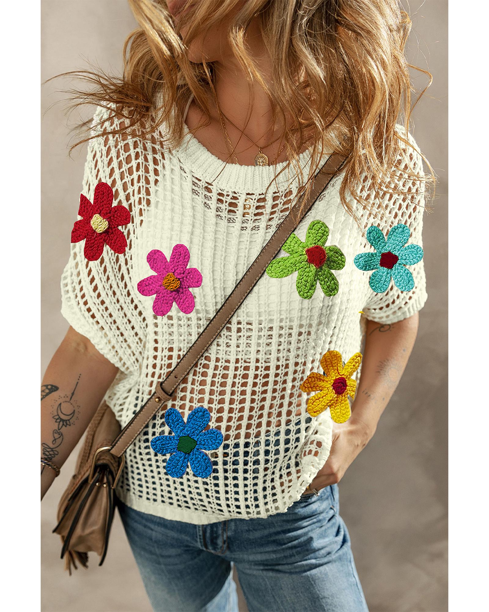 White Crochet Flower Hollow-out Sweater T Shirt – L