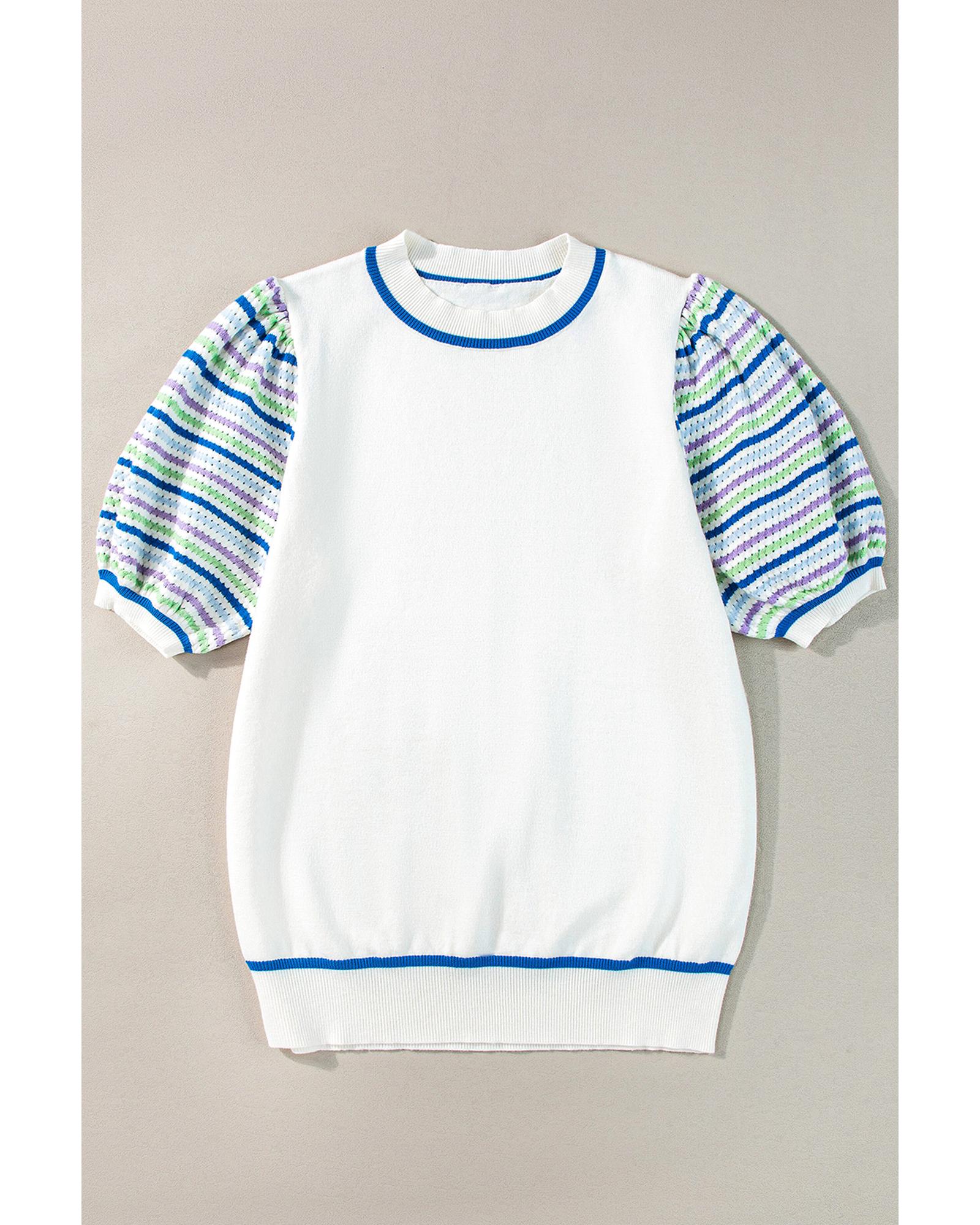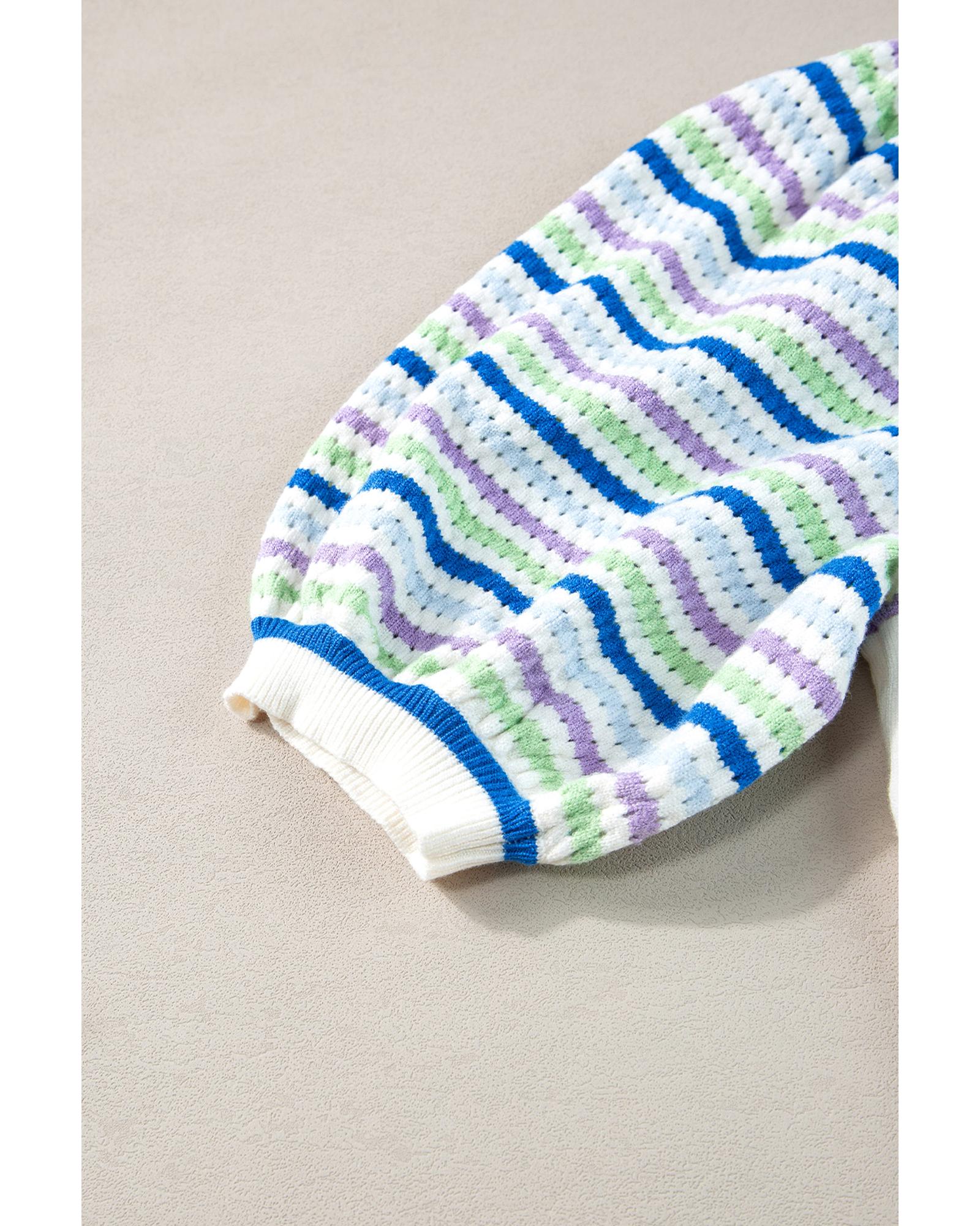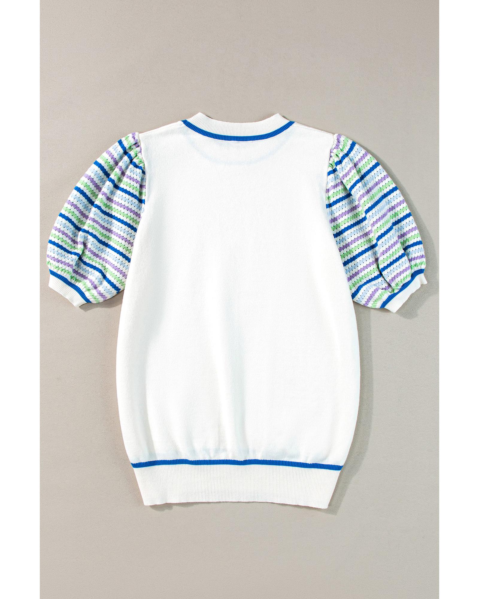 White Crochet Striped Bubble Sleeve Knit Sweater – XL