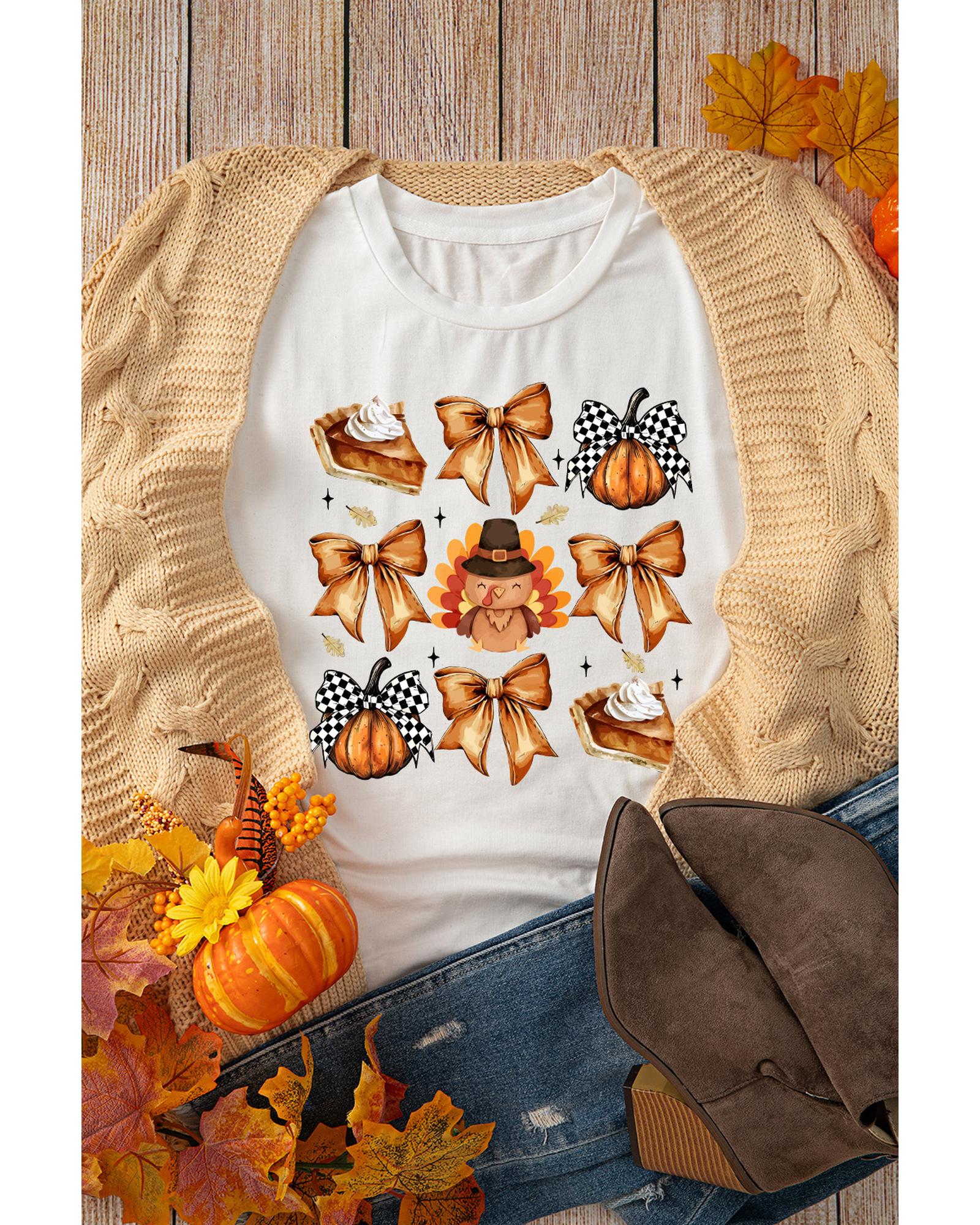 White Cute Bowknot Tanksgiving Graphic Crewneck T Shirt – 2XL