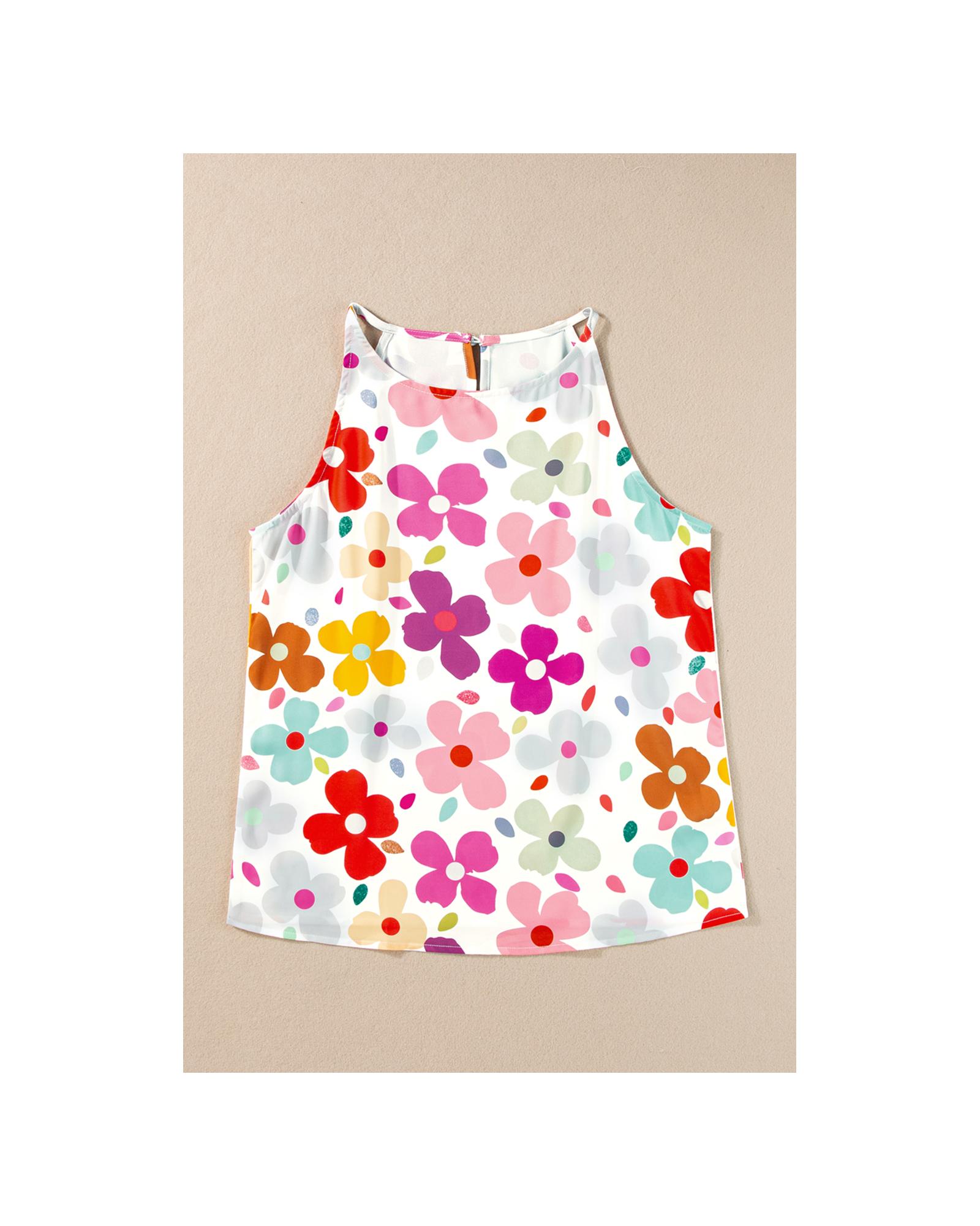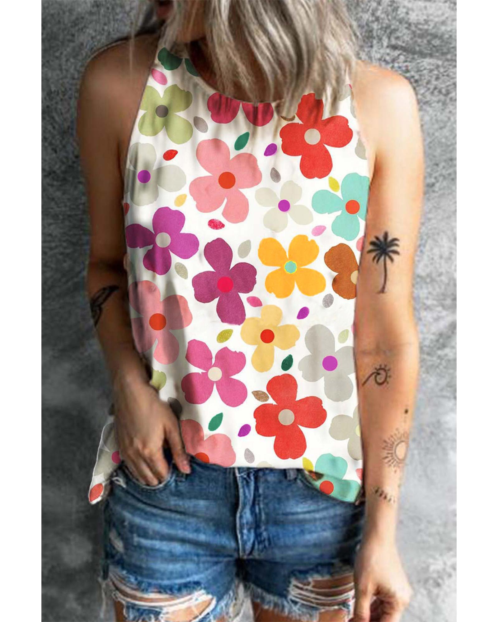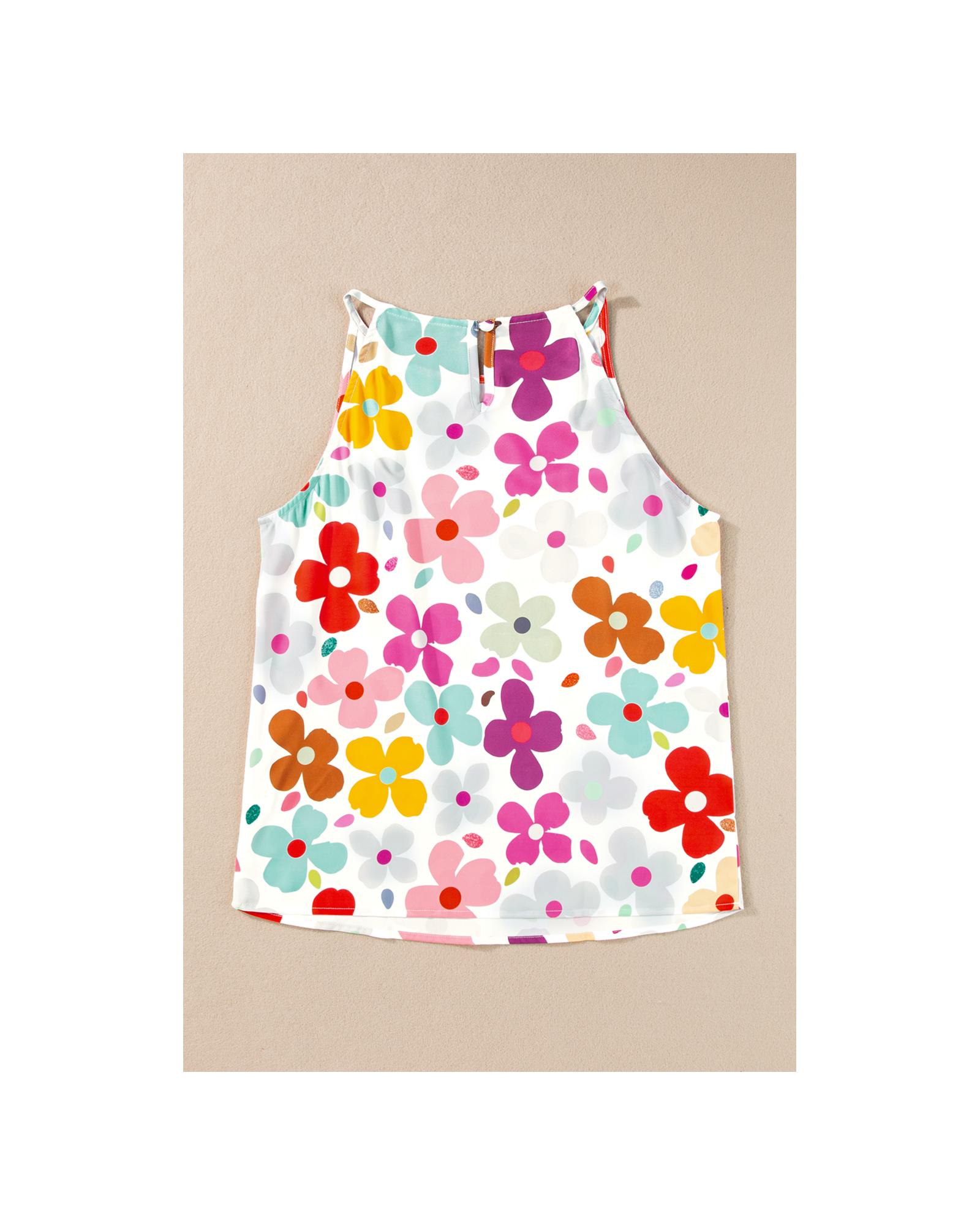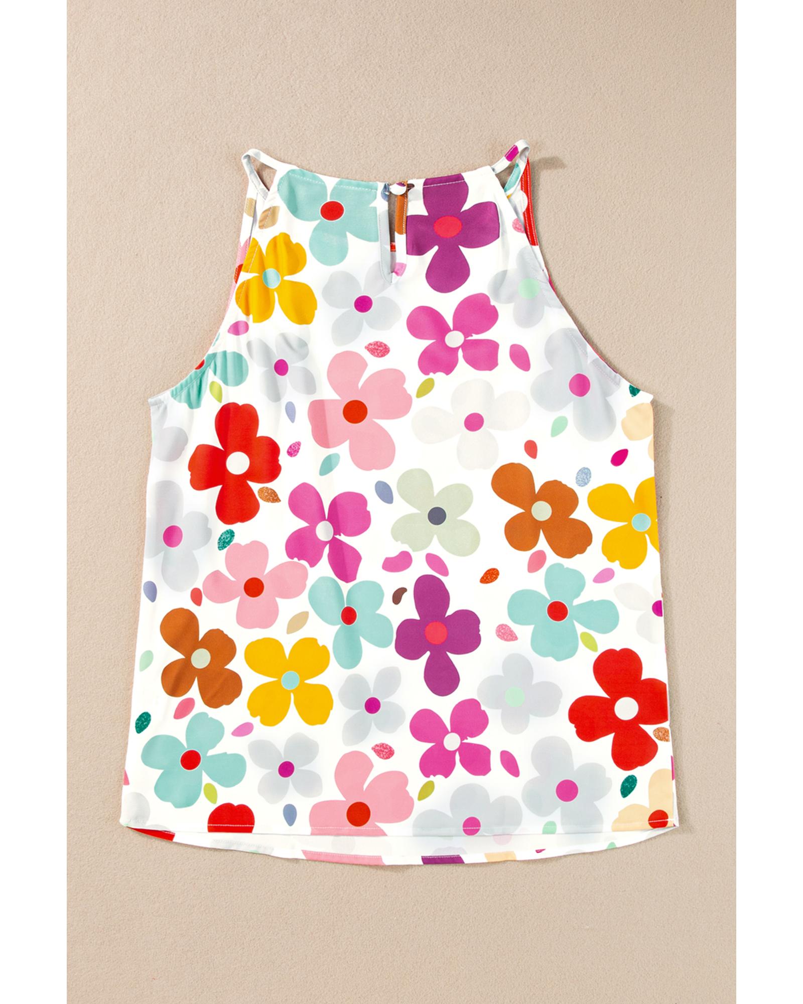 White Cute Floral Print Vest – S