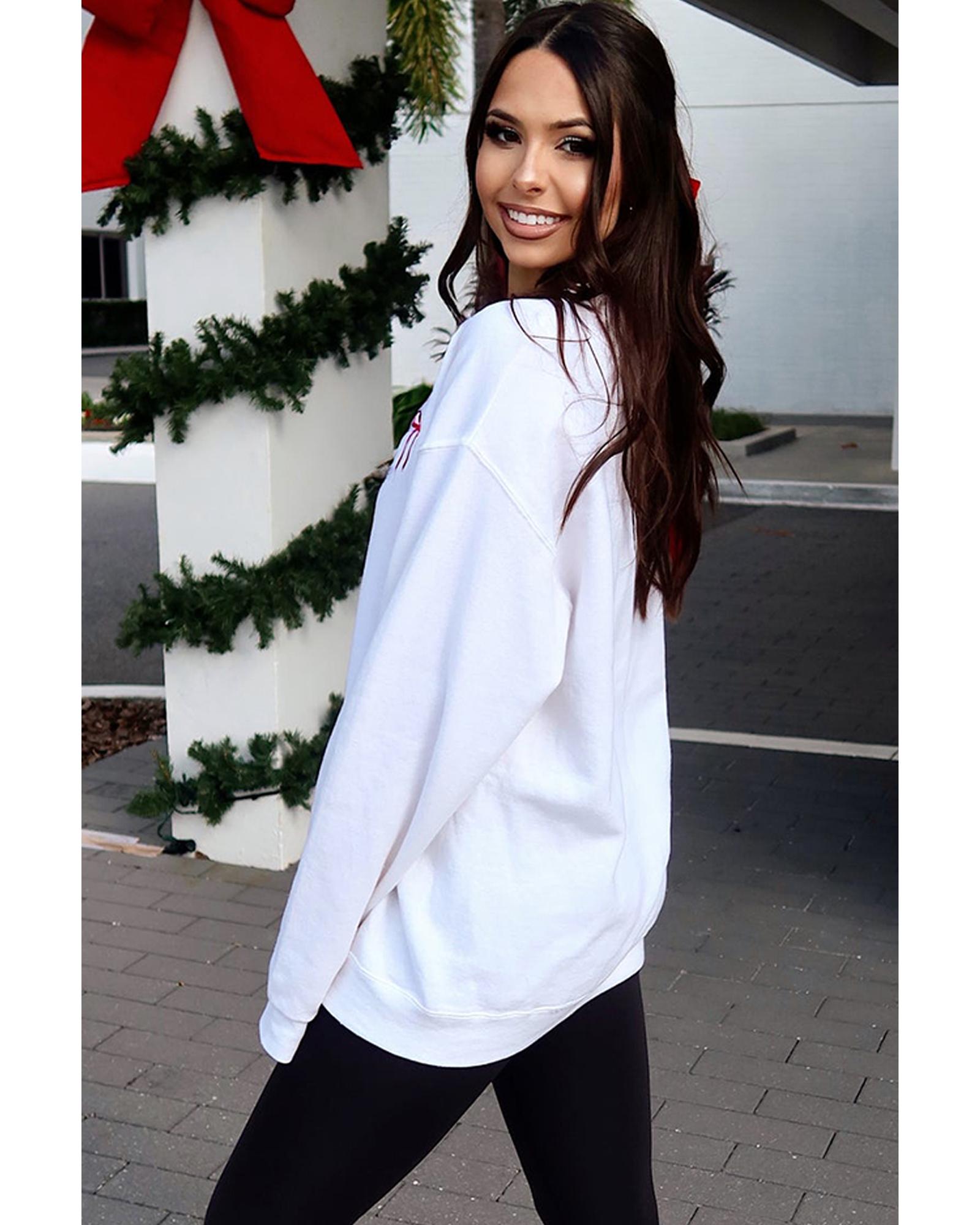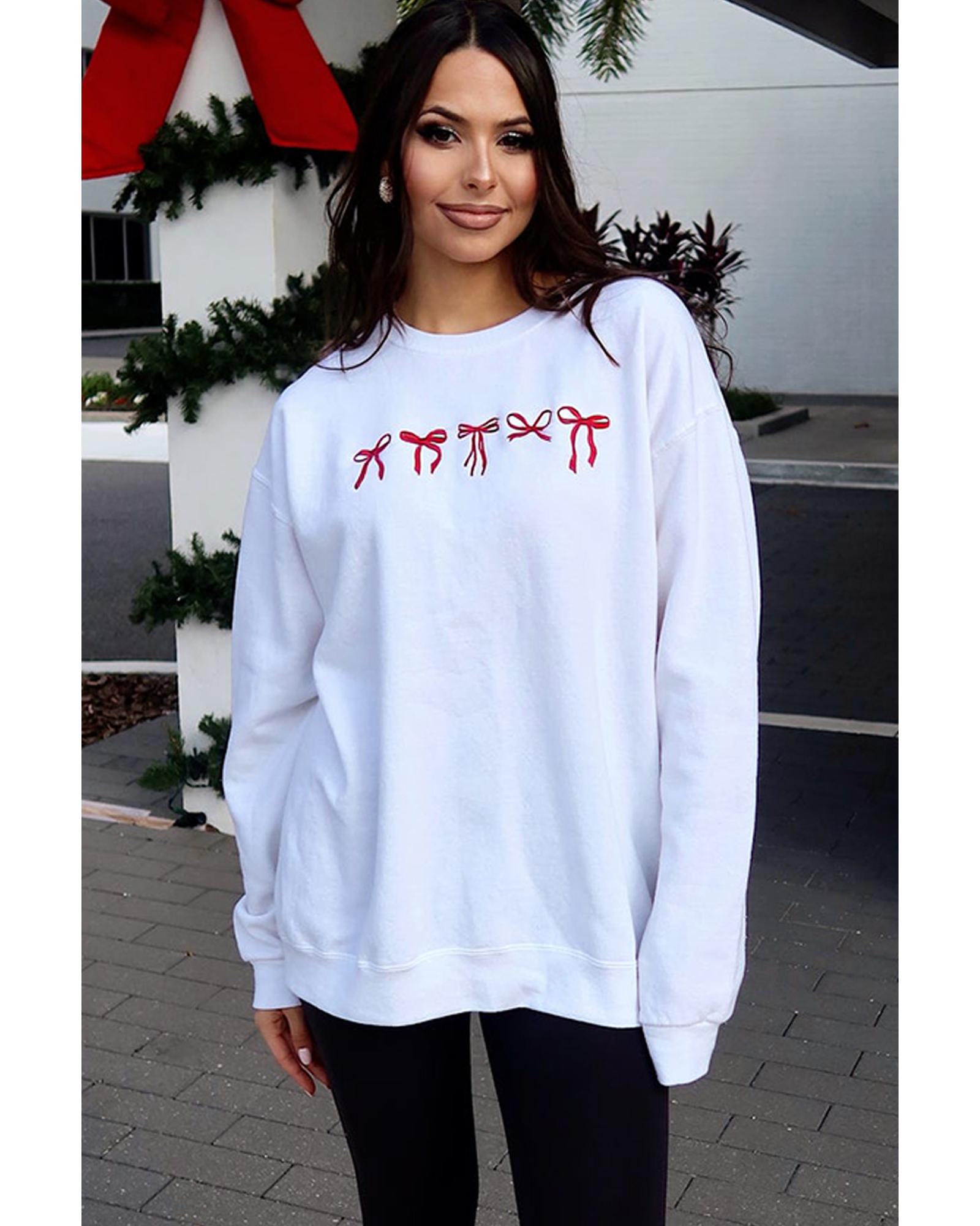 - White Diverse Bow Embroidery Drop Shoulder Sweatshirt