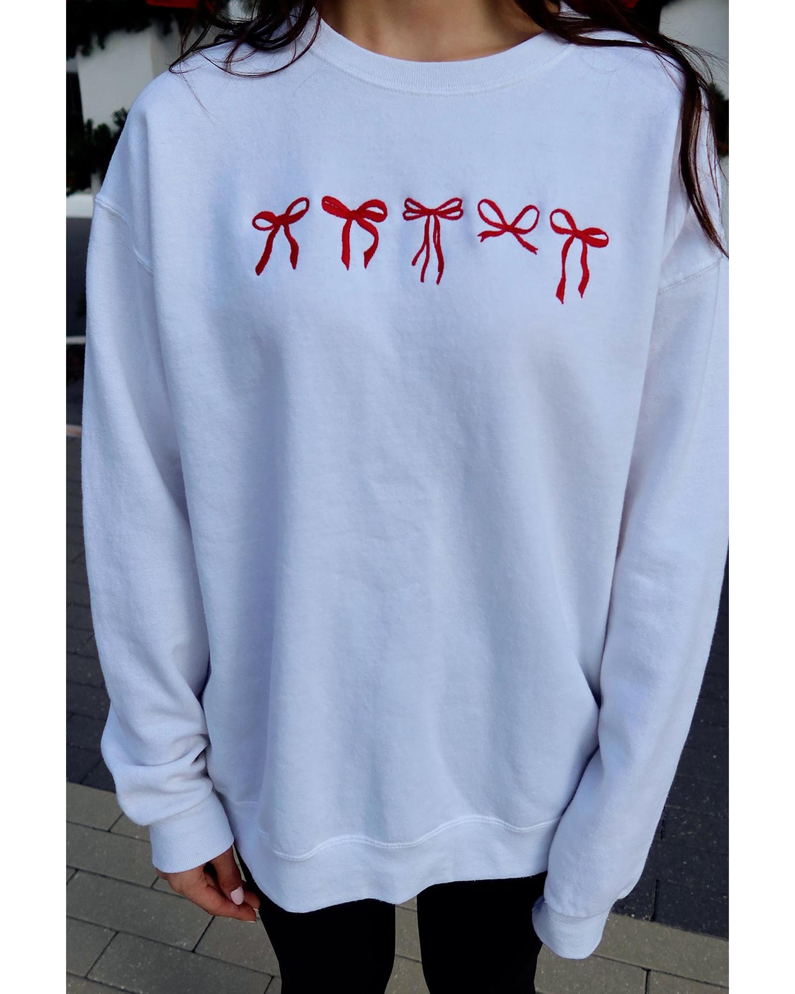 - White Diverse Bow Embroidery Drop Shoulder Sweatshirt