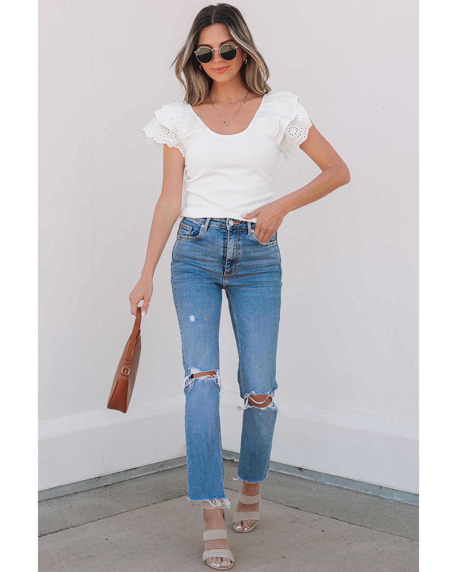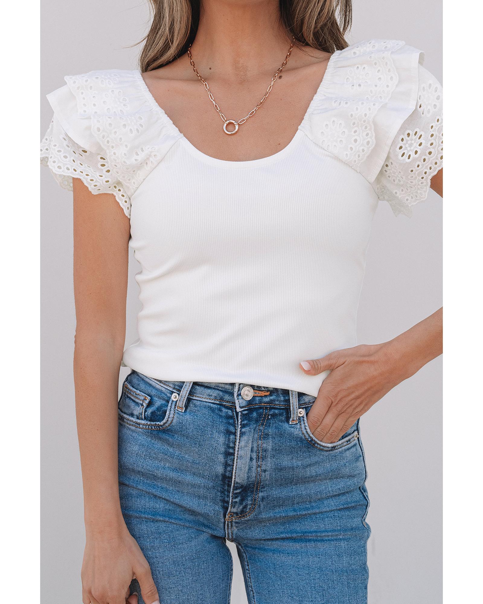White Eyelet Ruffle Sleeve Slim Fitted Top – 2XL