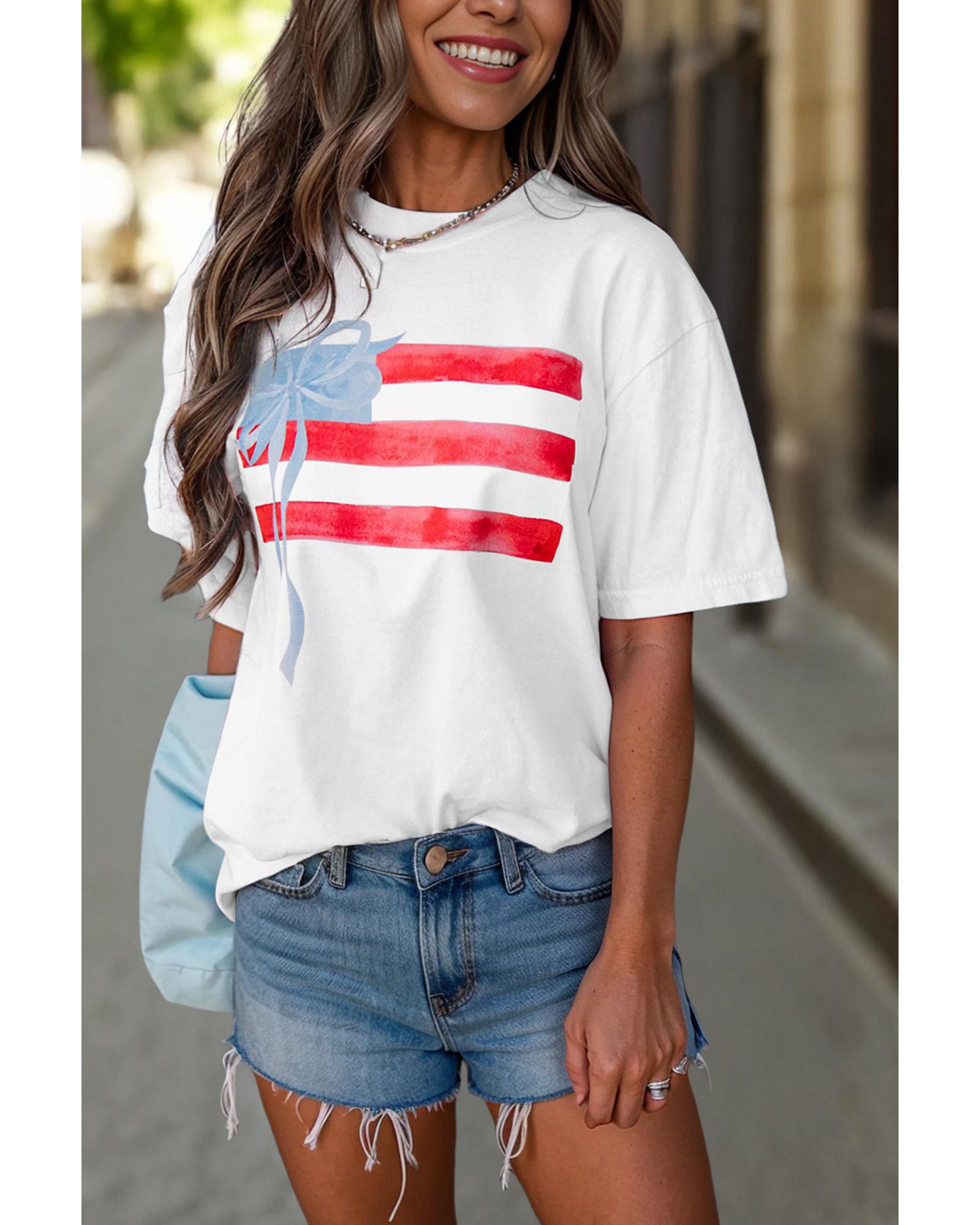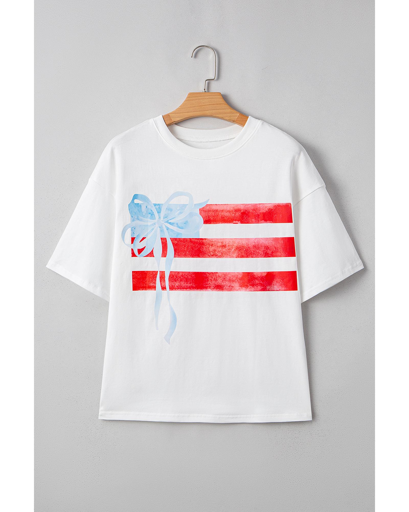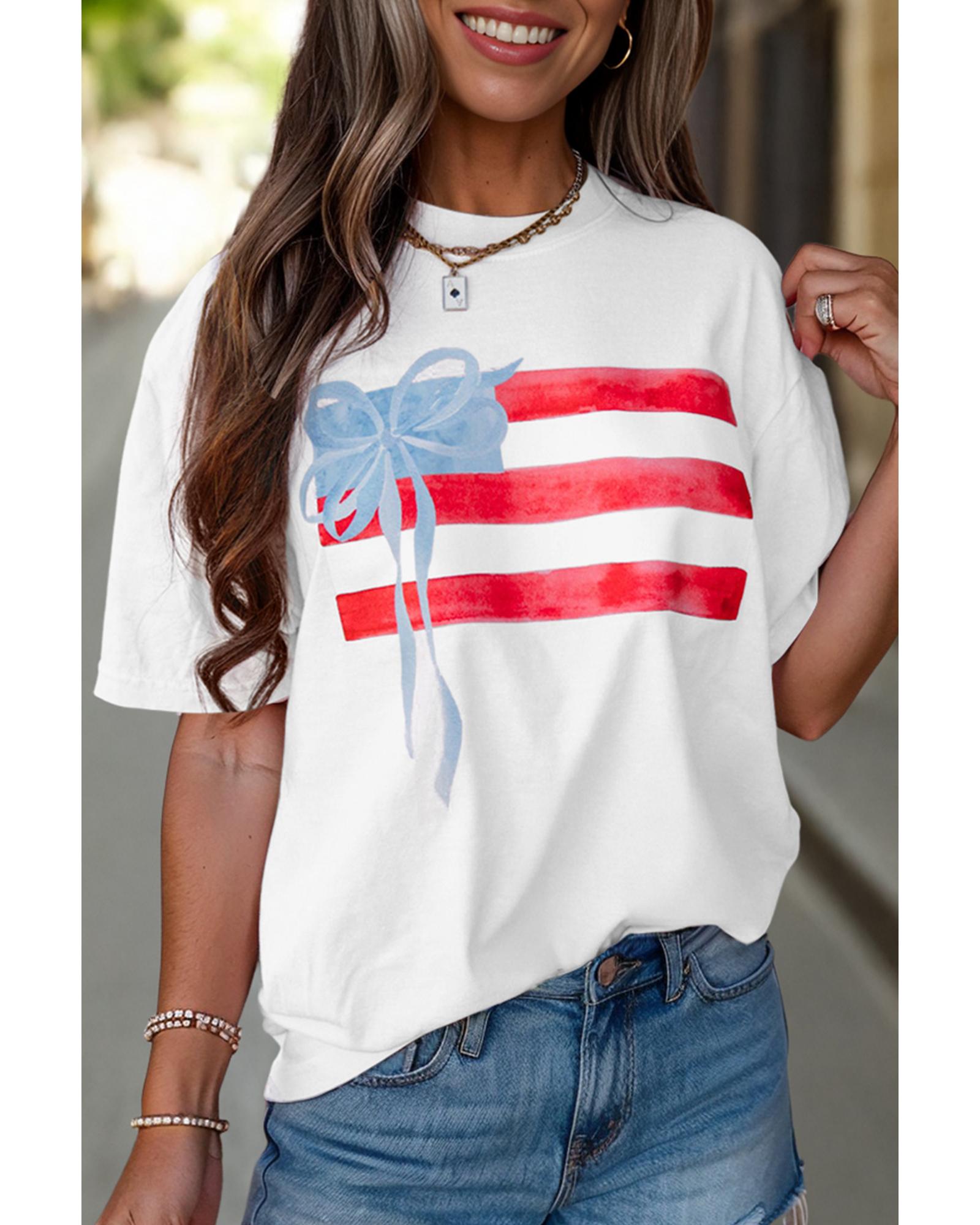 White Bowknot Rugby Football Printed Game Day T Shirt - M
