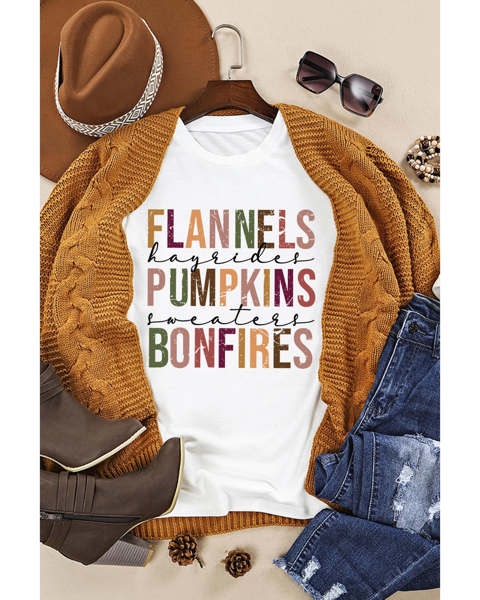 White FLANNELS PUMPKINS BONFIRES Crewneck Graphic Tee – XL