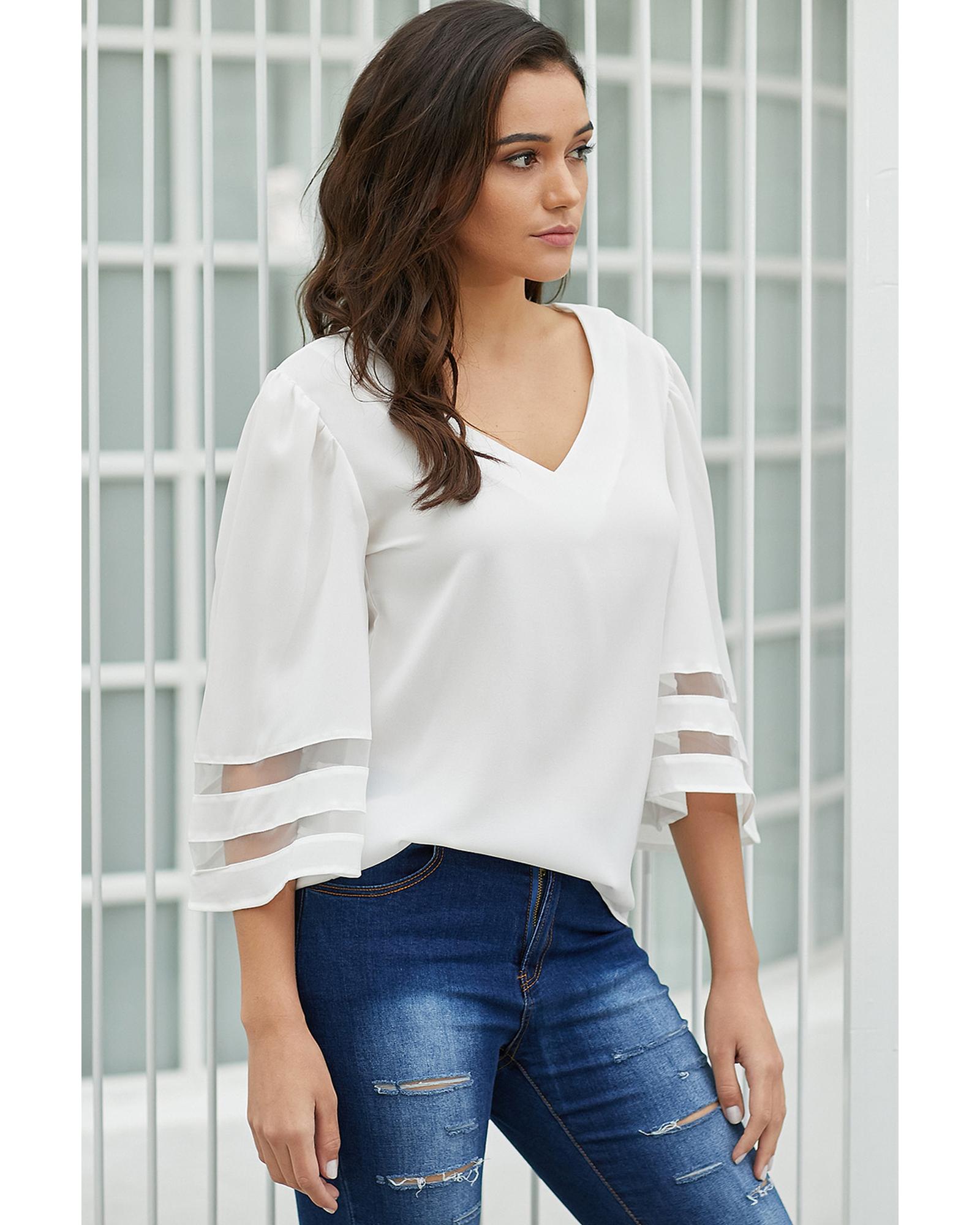 White Flare Sleeve V Neck Loose Blouse – 2XL