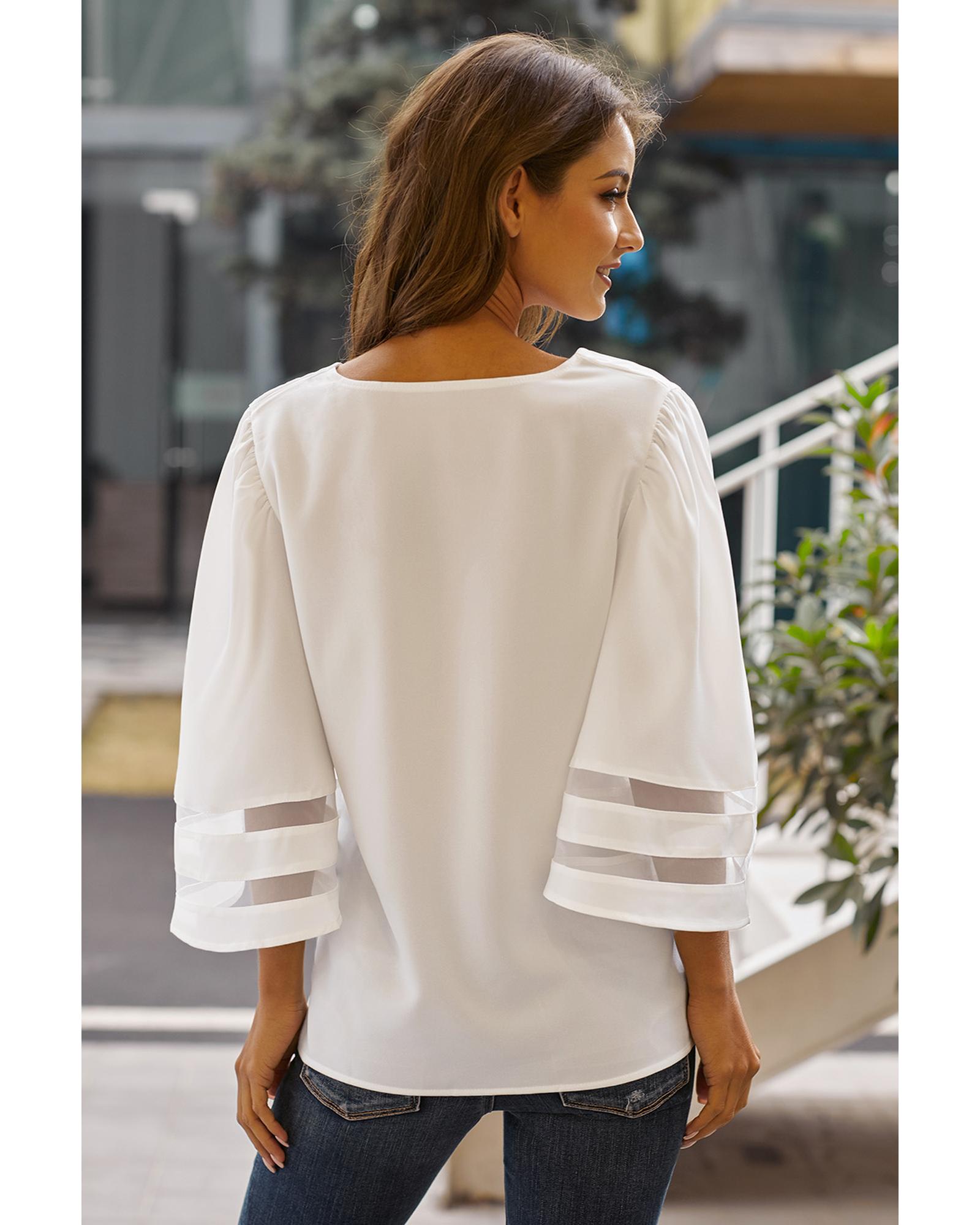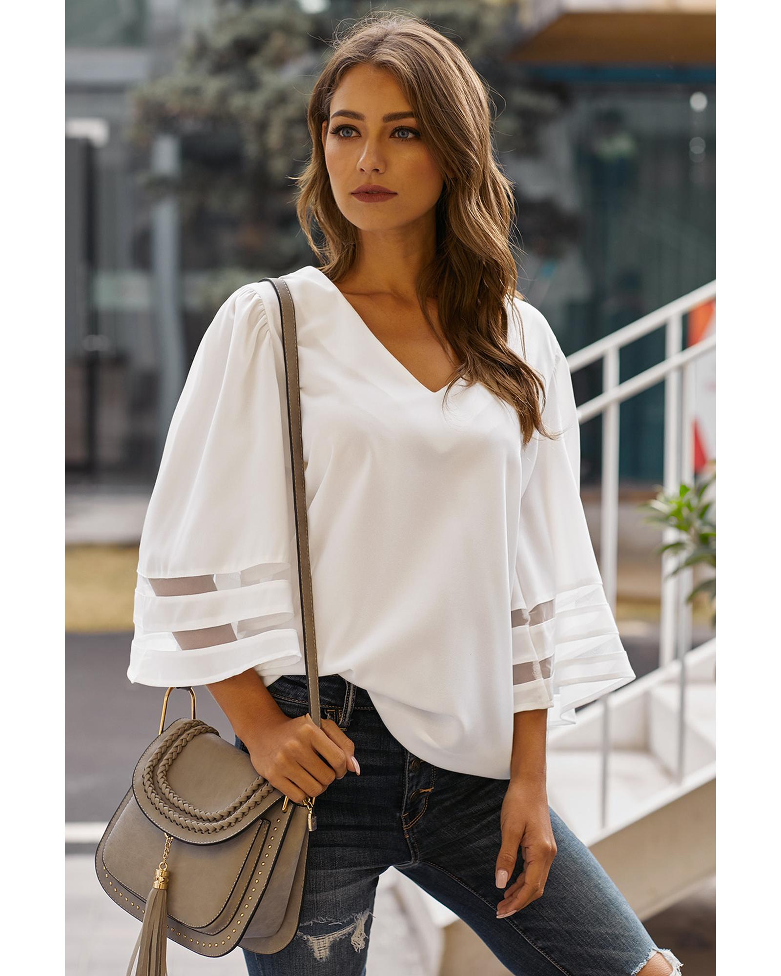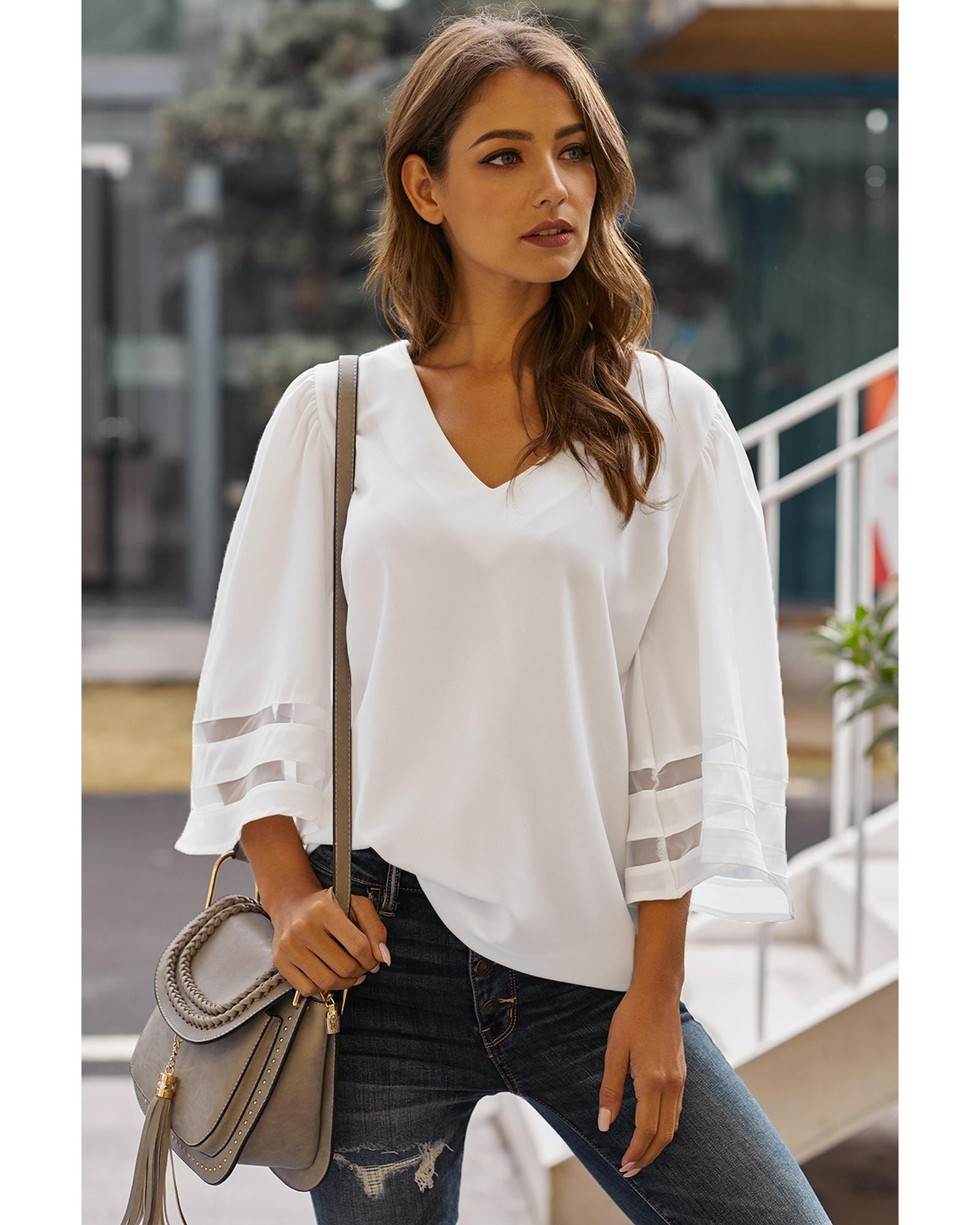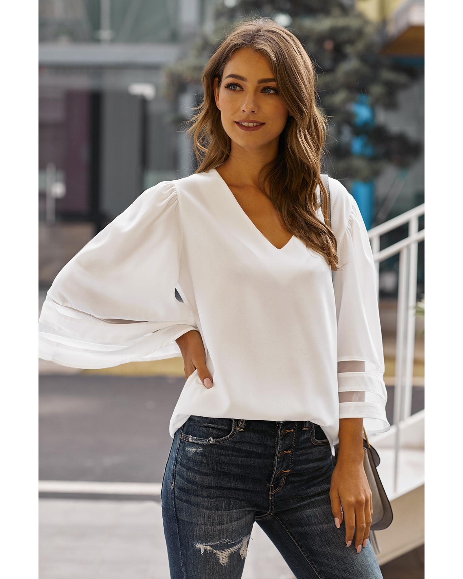 - Luxurious Flare Sleeve V Neck Loose Blouse