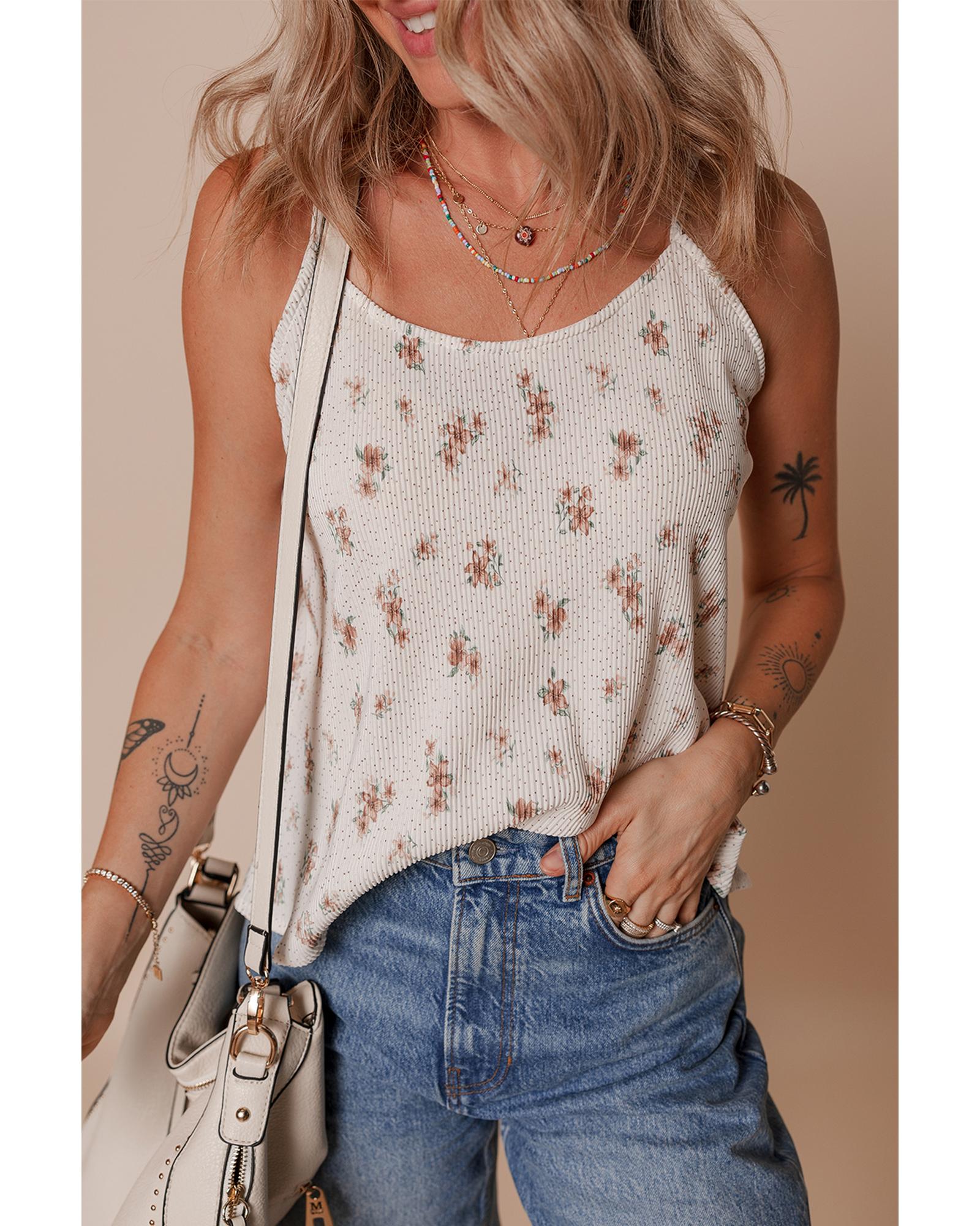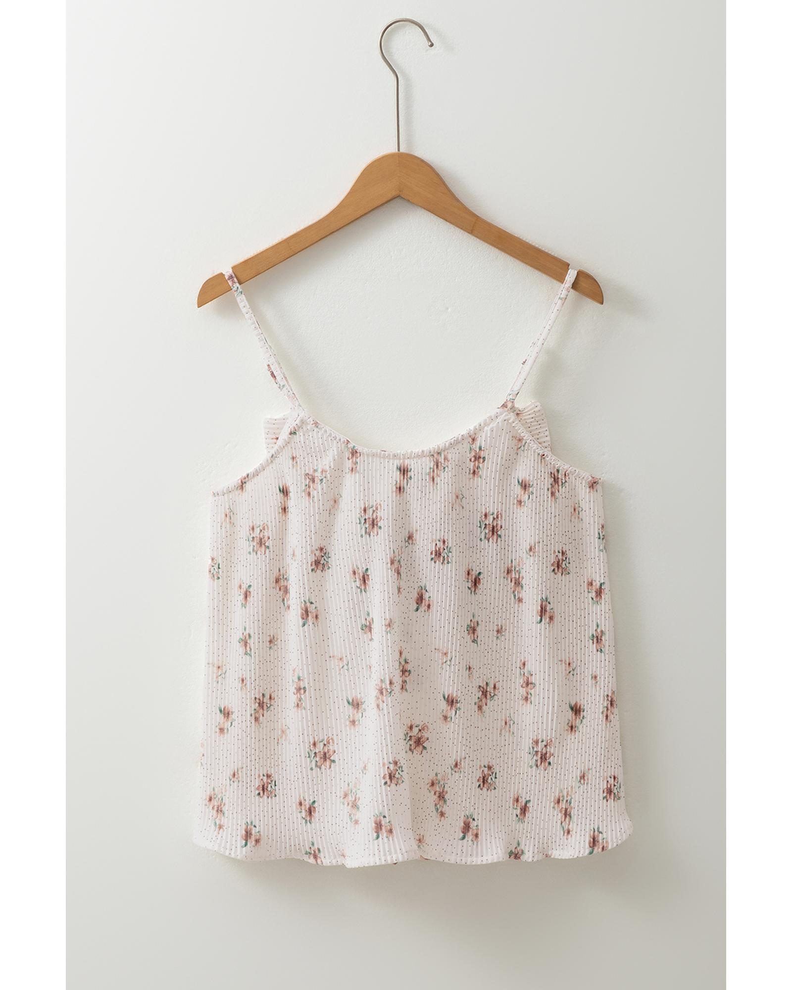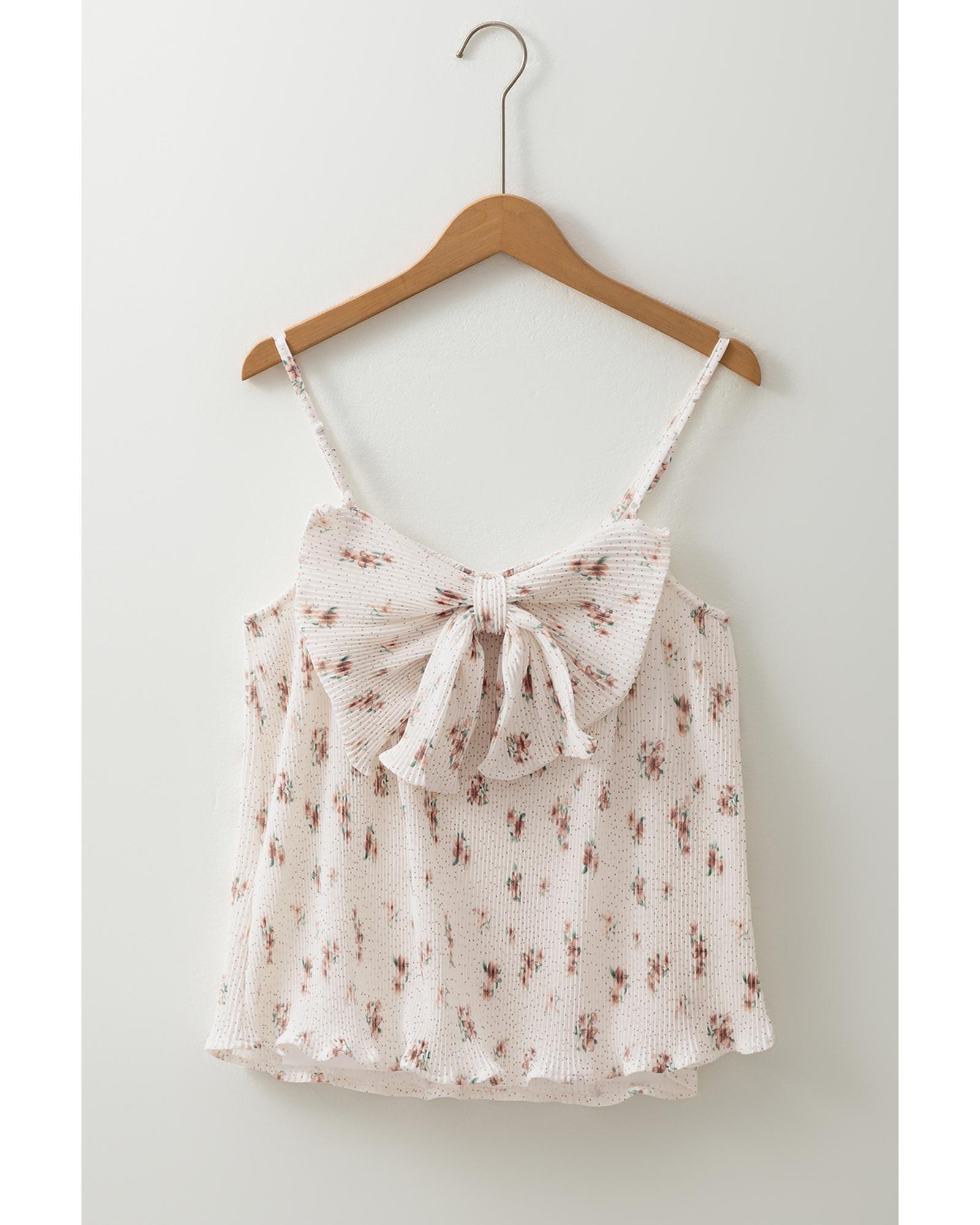 White Floral Pleated Big Bow Back Spaghetti Straps Tank Top – XL
