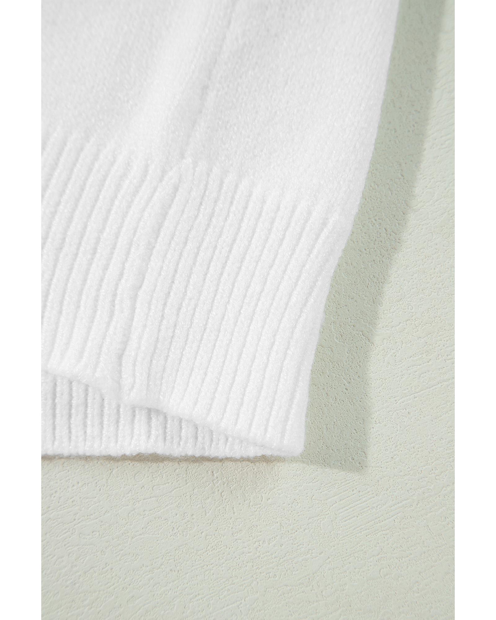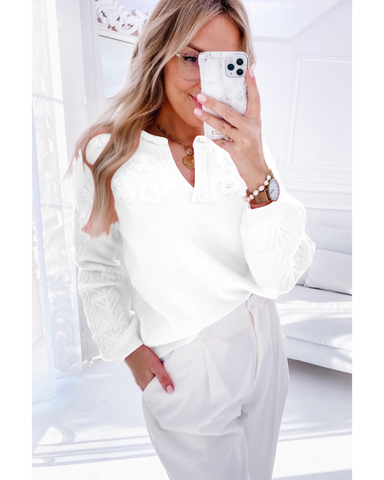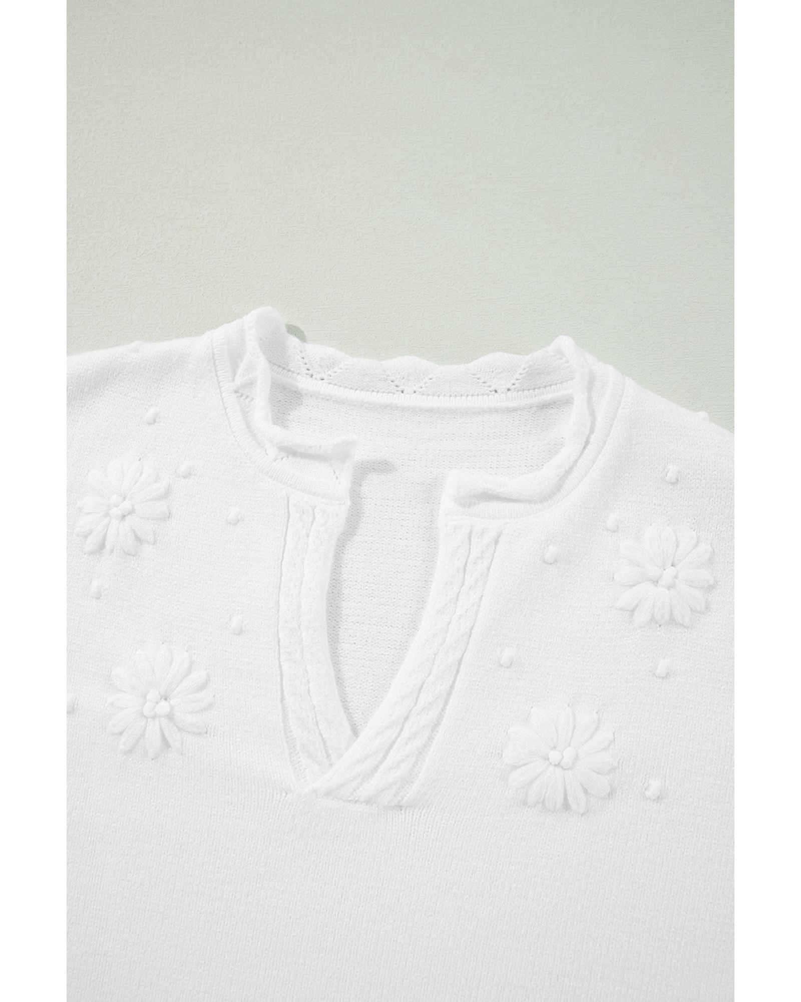 White Flower Detail Knitted Notched Neck Sweater – 2XL