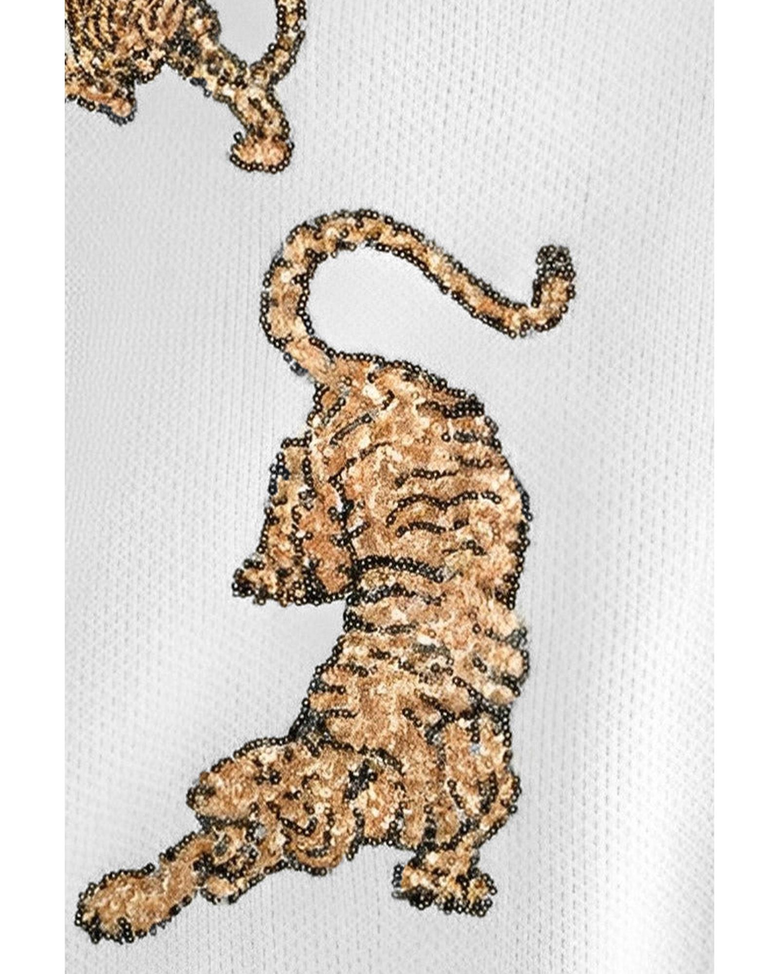 - Luxurious White Frayed Sequin Tiger Sweater