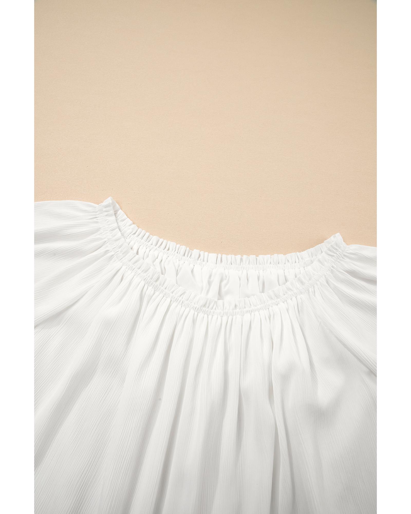 White Frilly Off Shoulder Lace Insert Sleeve Textured Blouse – S