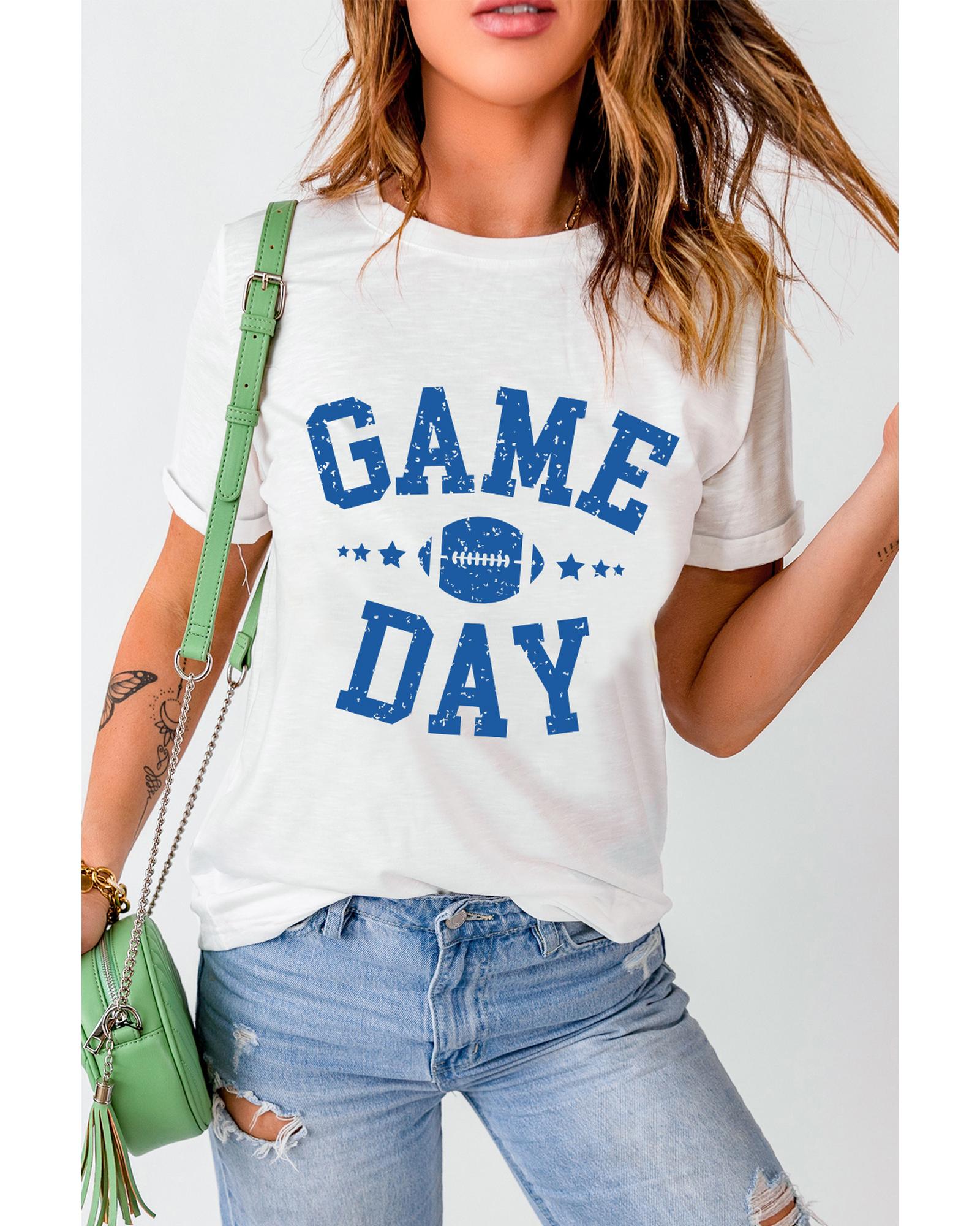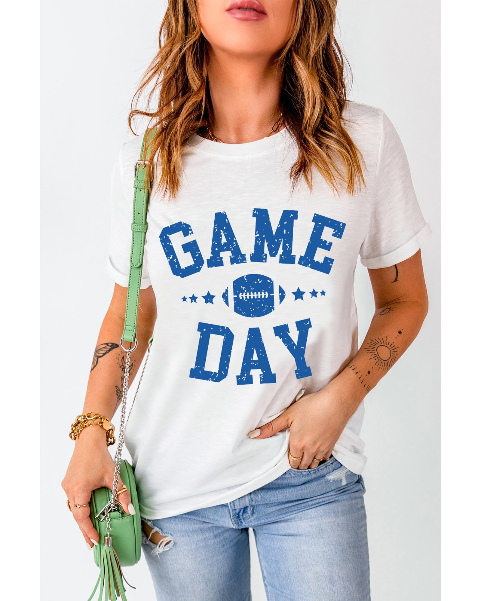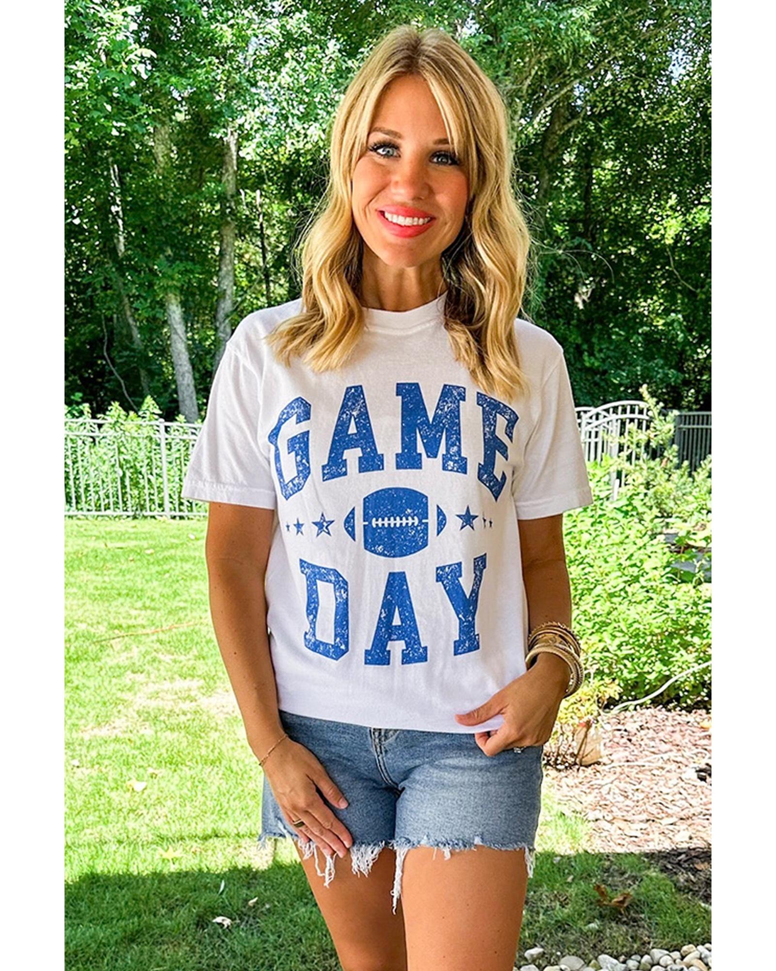 - White GAME DAY Rugby Football Graphic Crewneck T