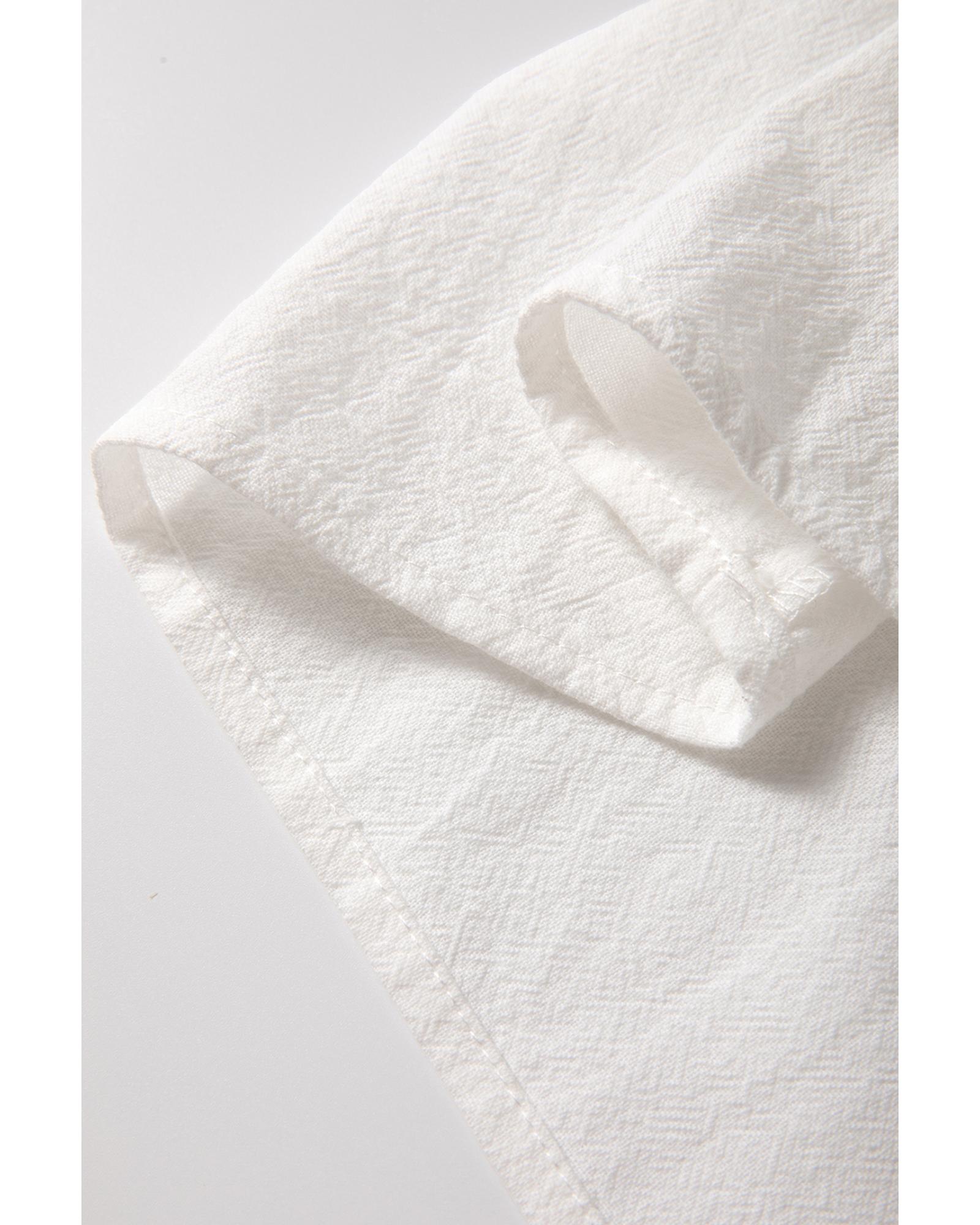 - White geometric embroidered long sleeve buttoned blouse