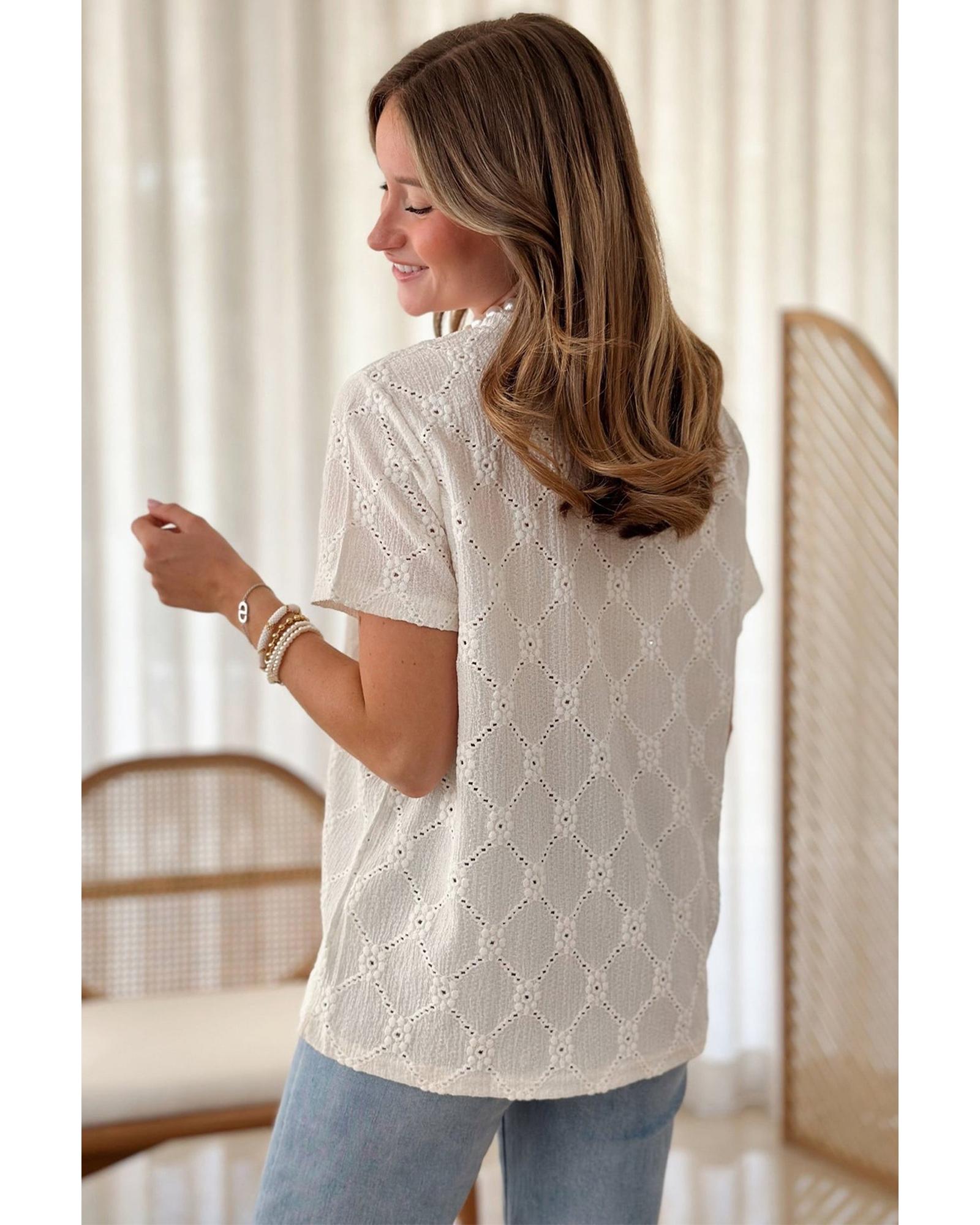 White Floral Ruffled Collar Short Puff Sleeve Printed Blouse - XL