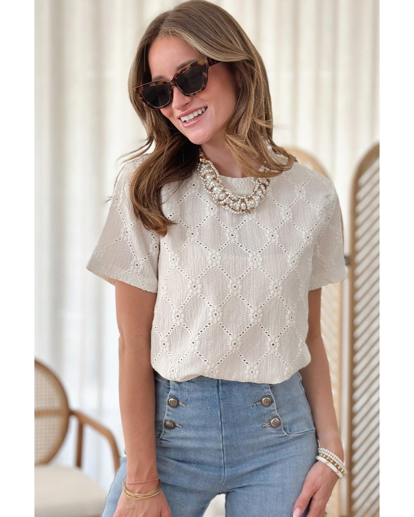 - Delicate geometric embroidered pattern