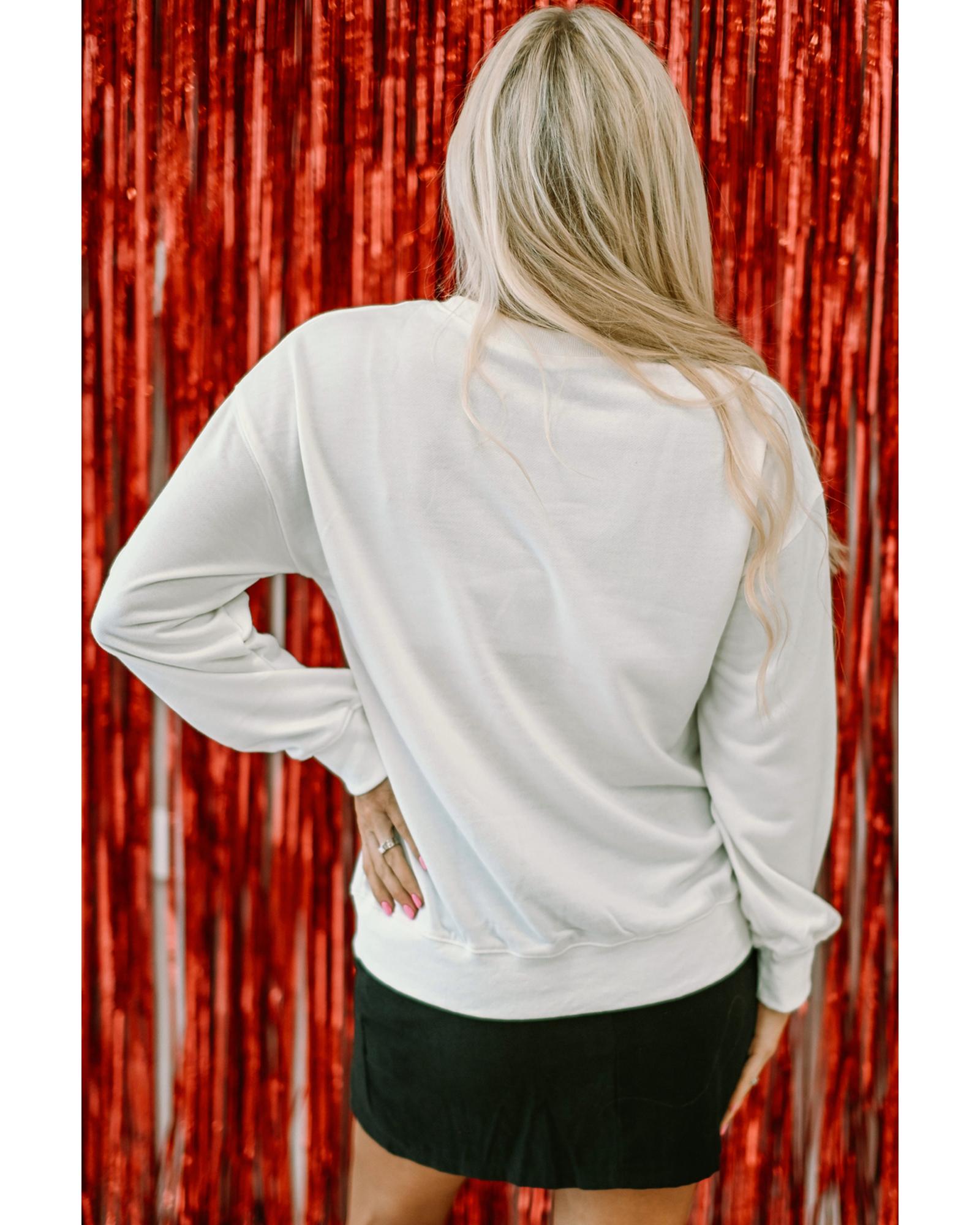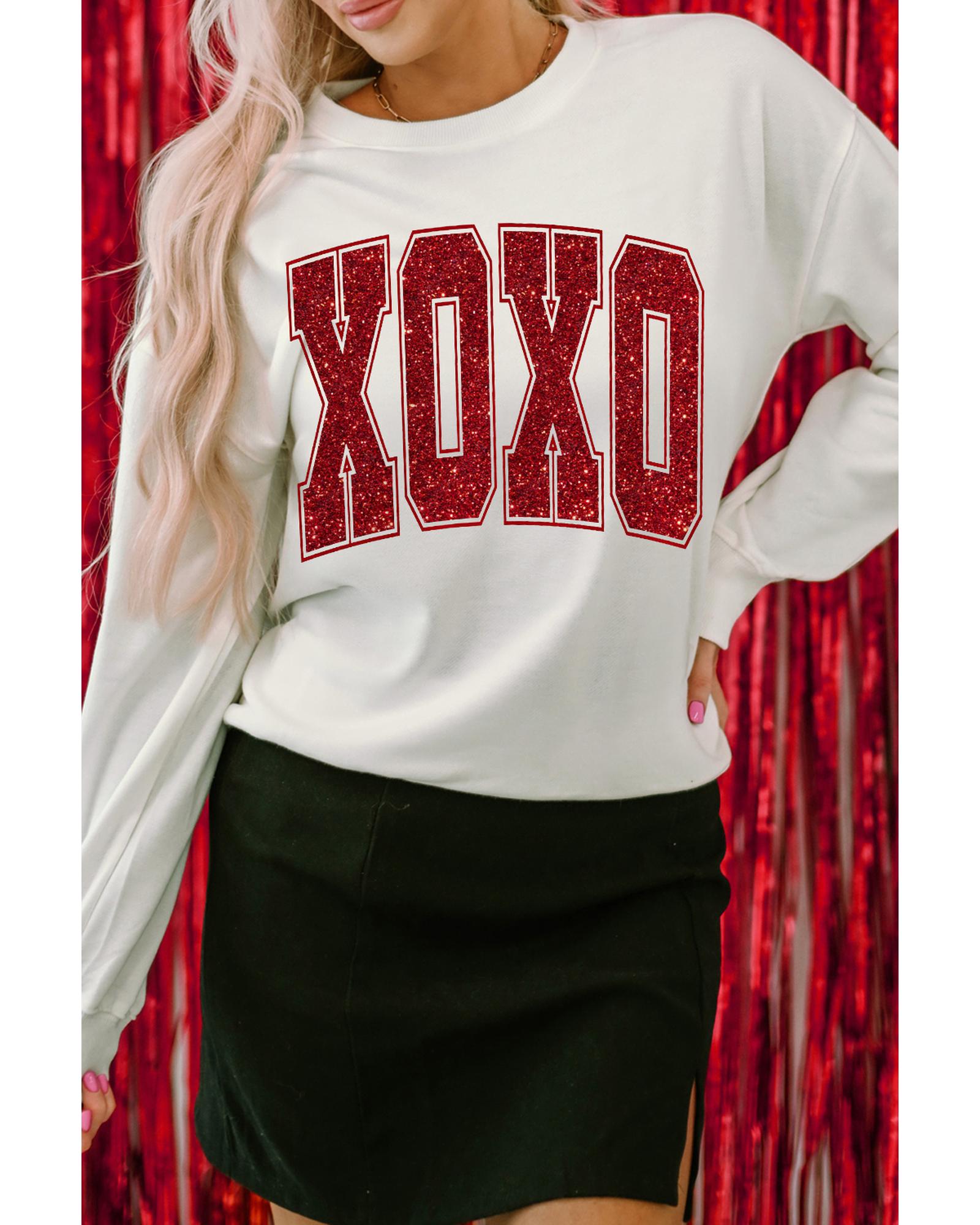White Glitter XOXO Graphic Crewneck Valentines Pullover Sweatshirt – XL