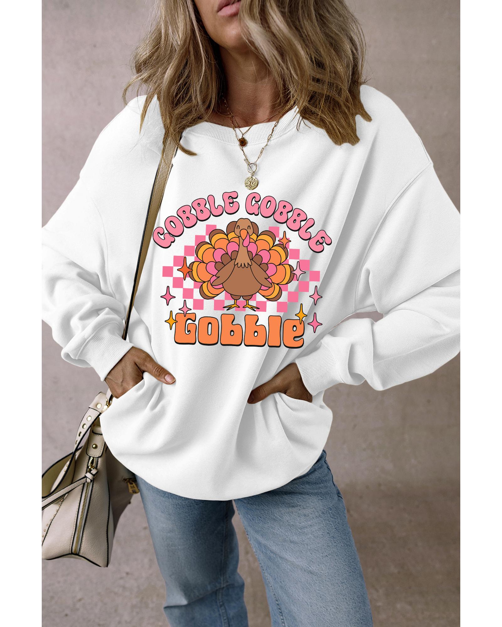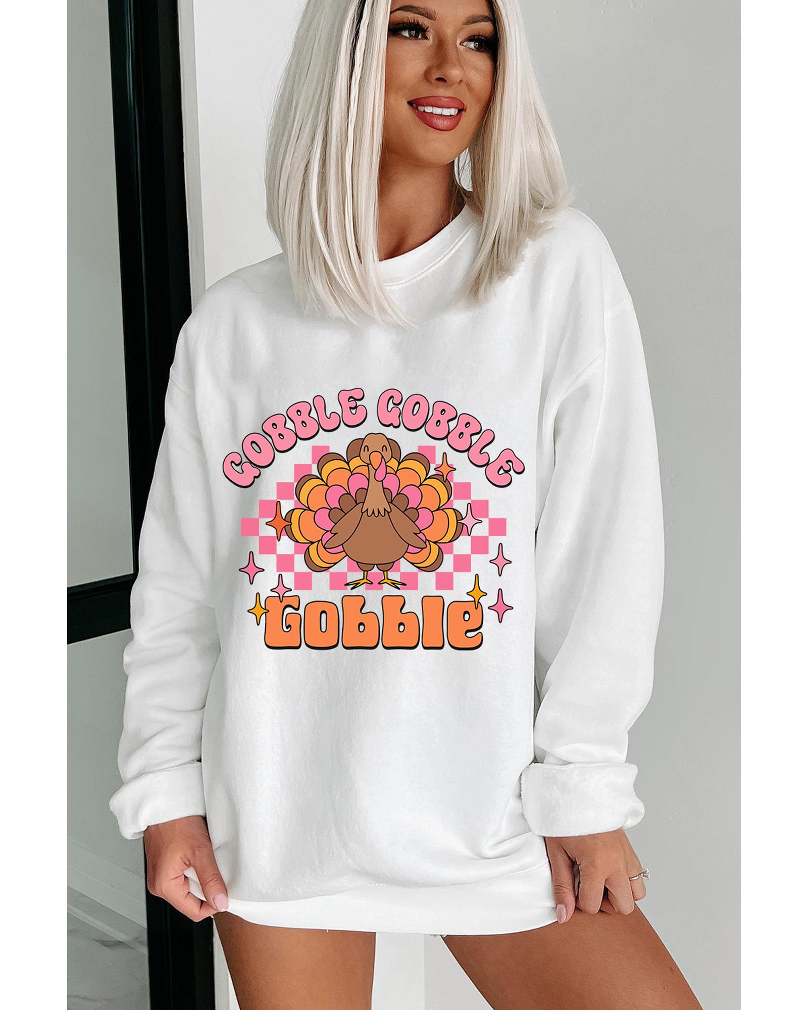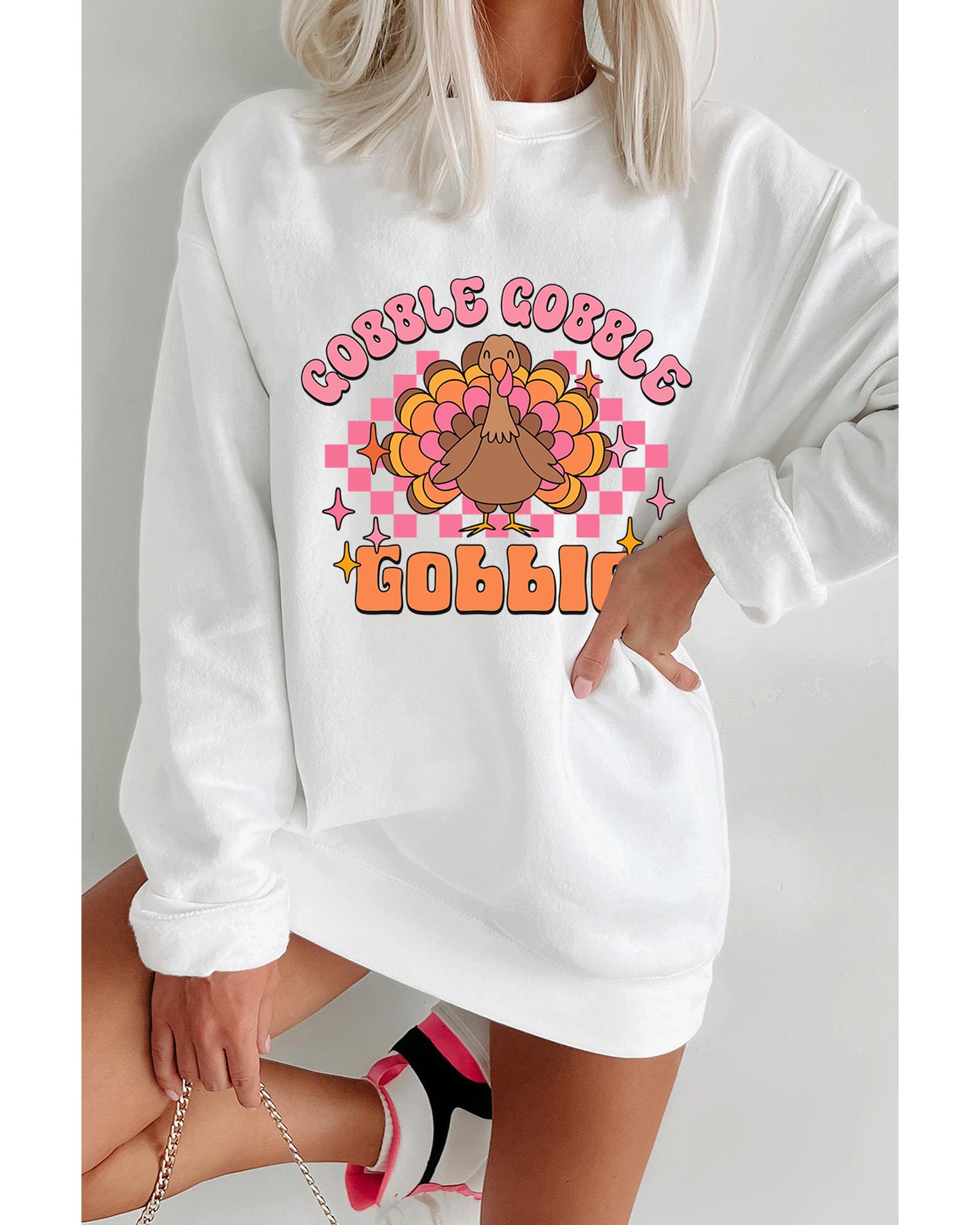 White Gobble Gobble Turkey Graphic Crewneck Thanksgiving Sweatshirt – XL