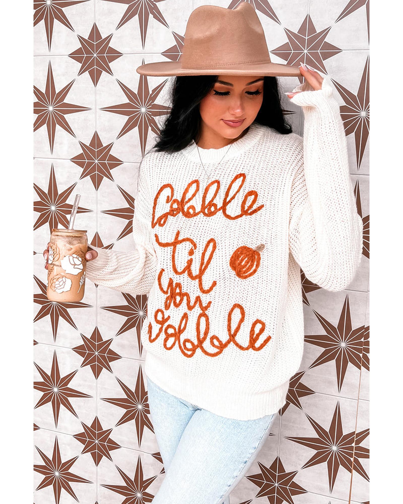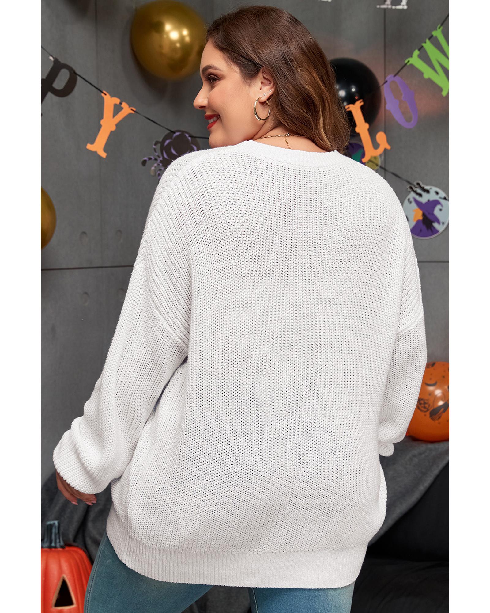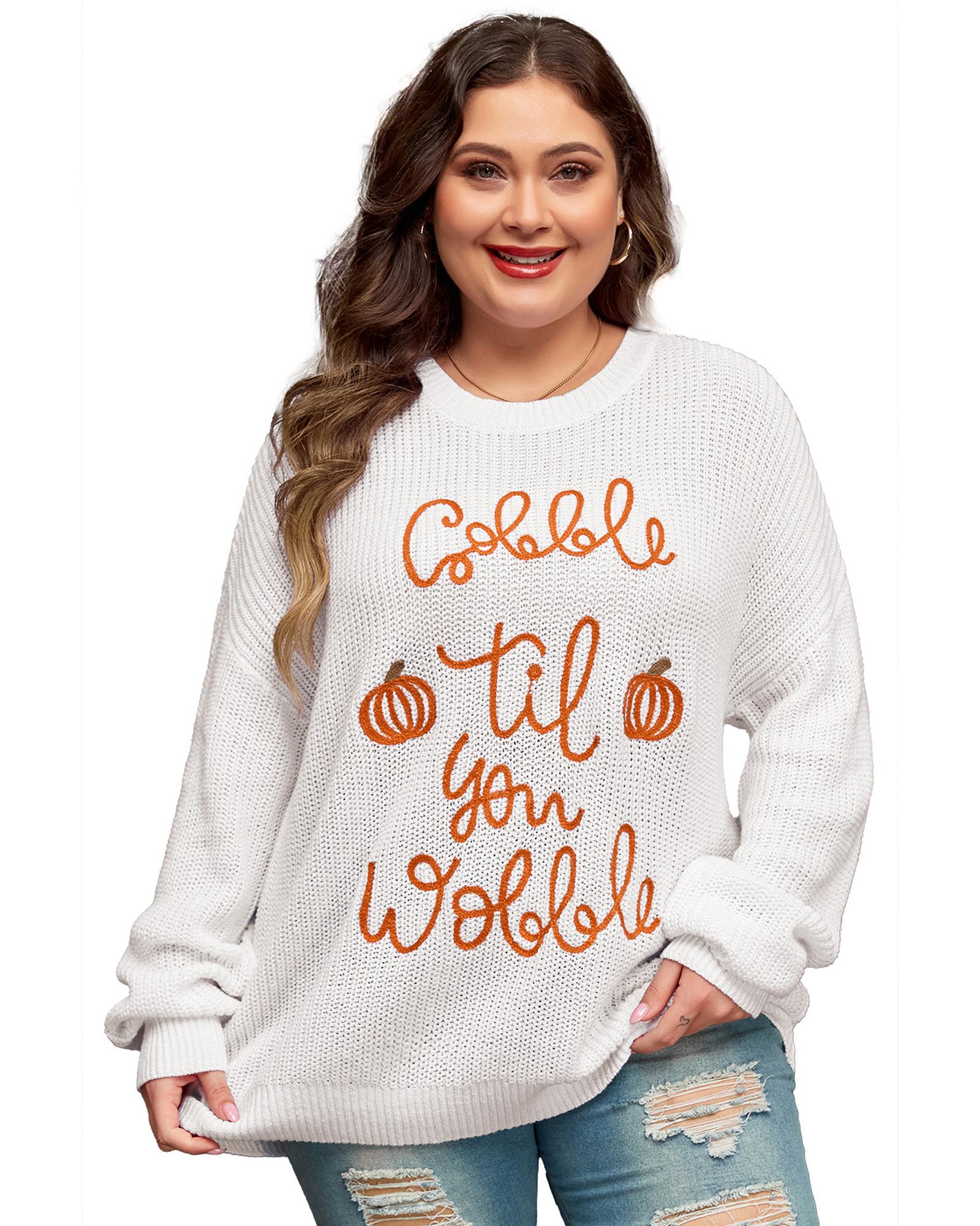 White Gobble Til You Wobble Pop Up Crochet Plus Size Sweater – 2X