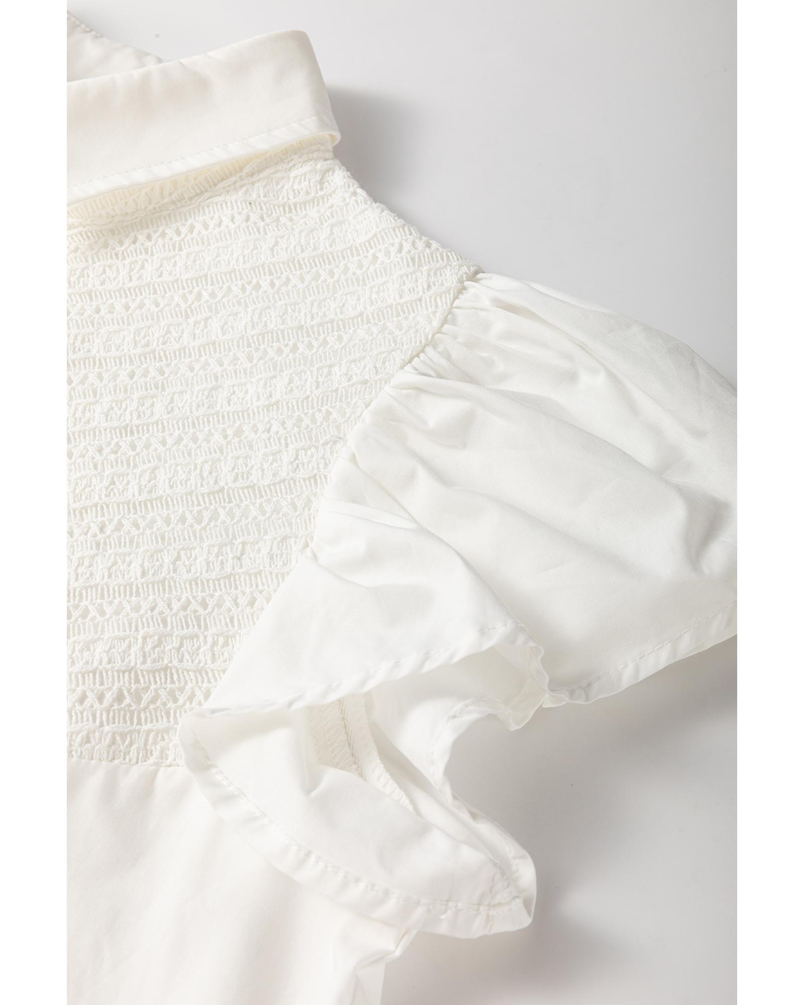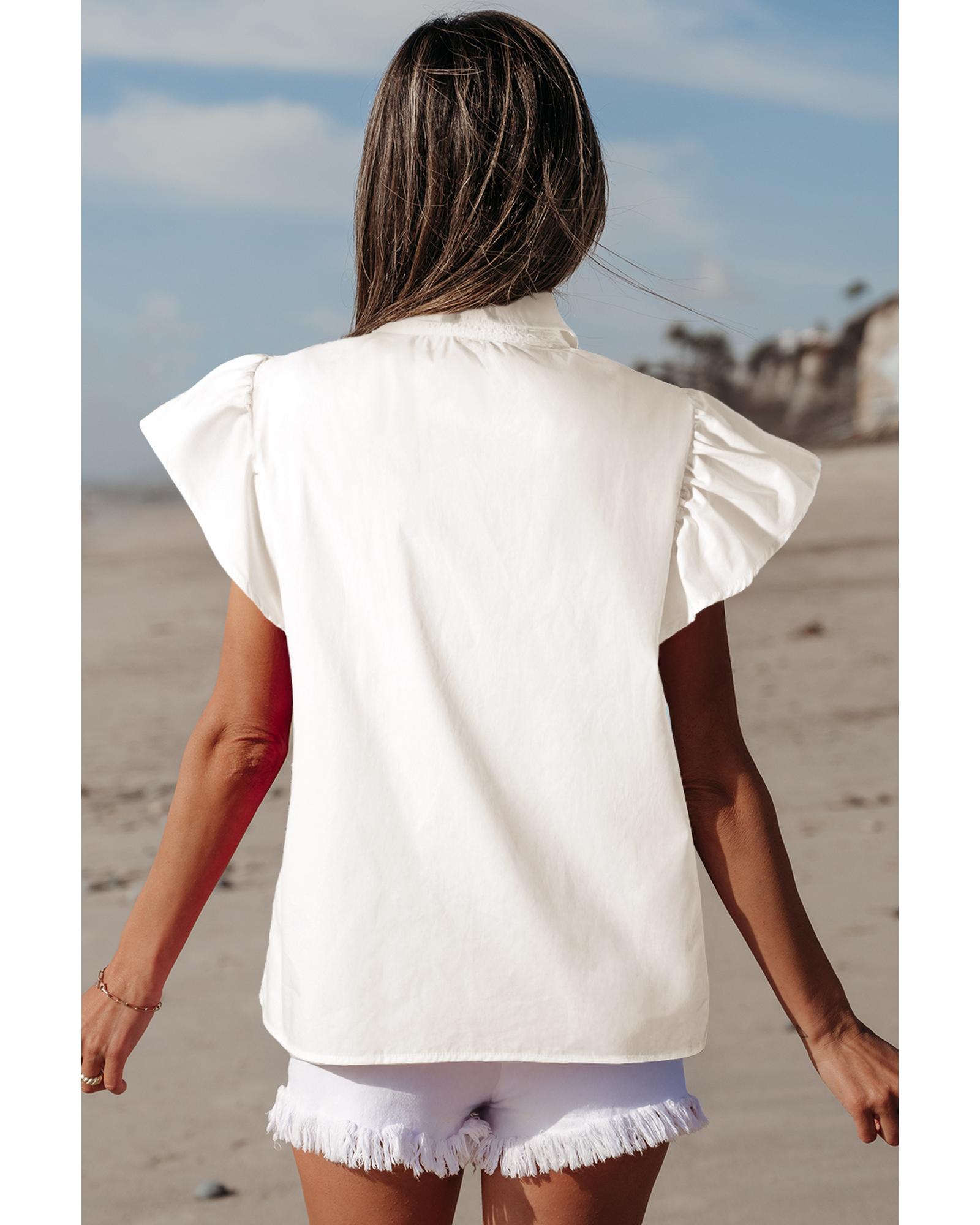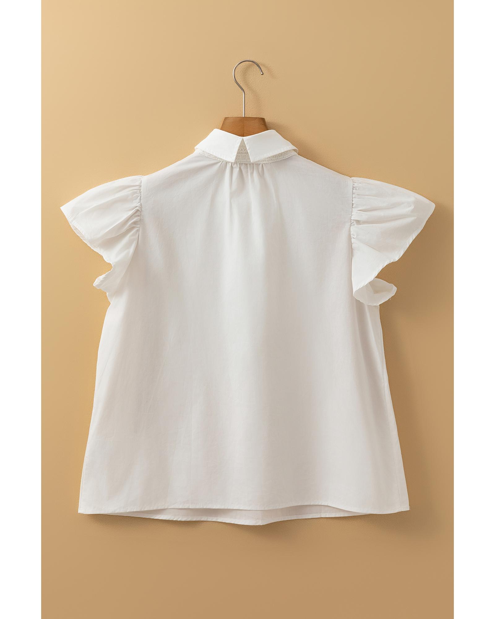 - White Half Button Lace Patchwork Flutter Sleeve Blouse