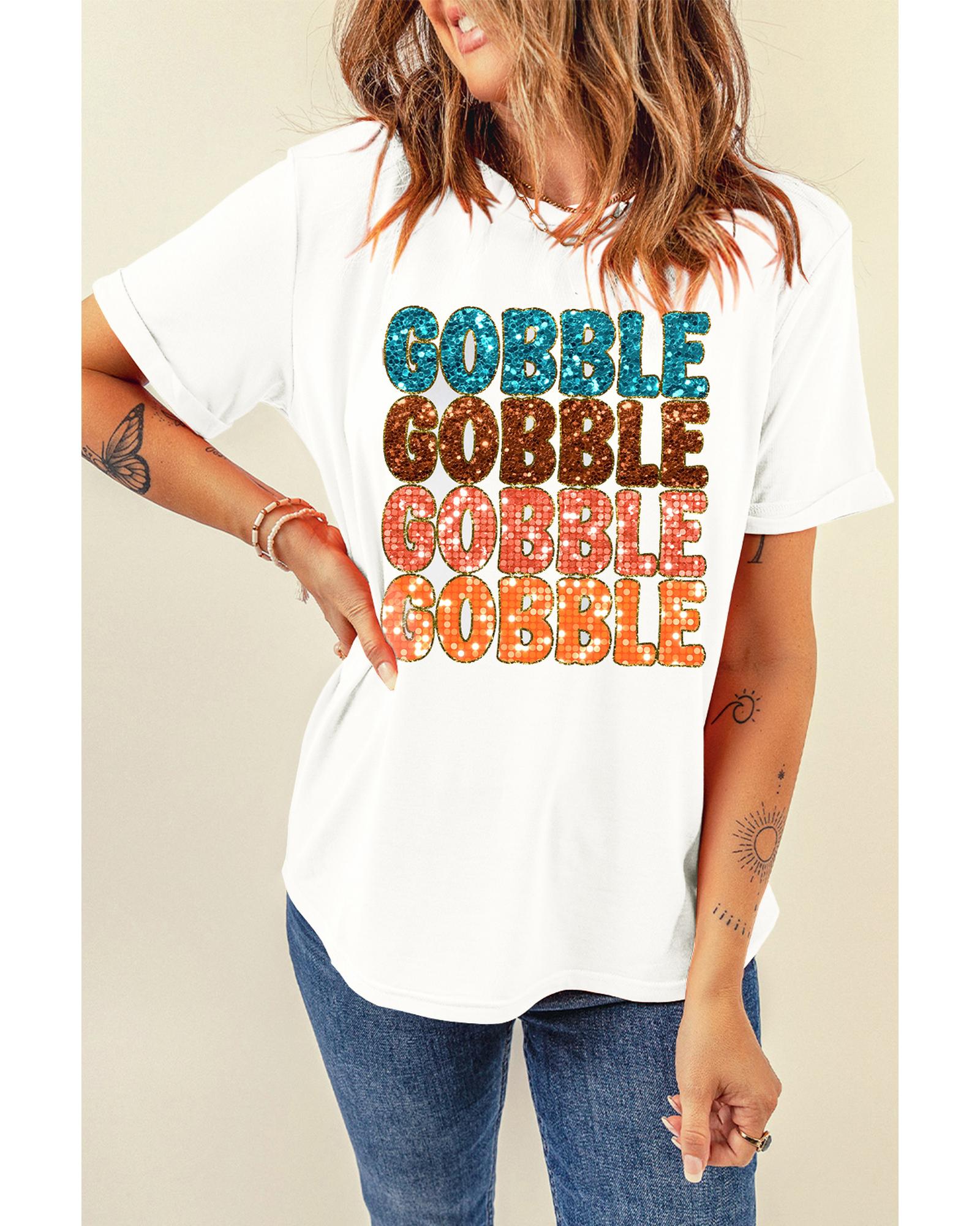 White Heat Transfer GOBBLE Graphic Crewneck Thanksgiving T Shirt – 3XL