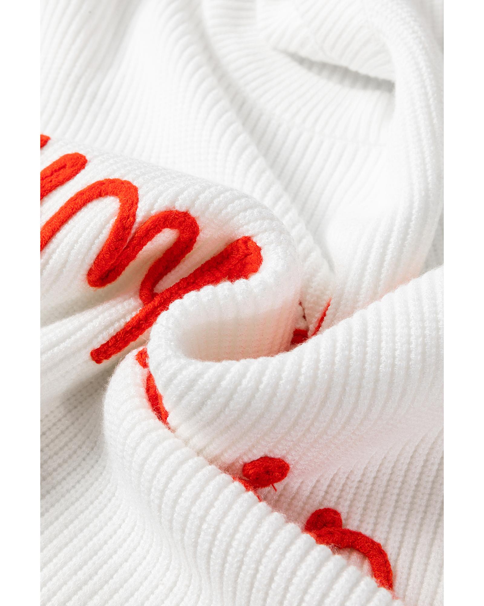 White Striped Merry Bright Letter Christmas Sweater - XL