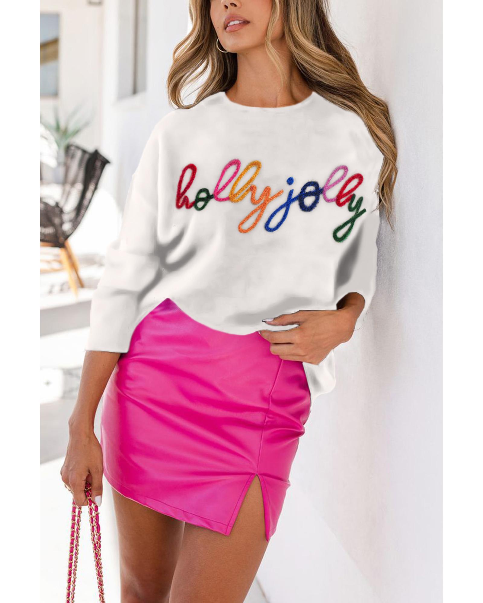White Holly Jolly Round Neck Casual Sweater – S