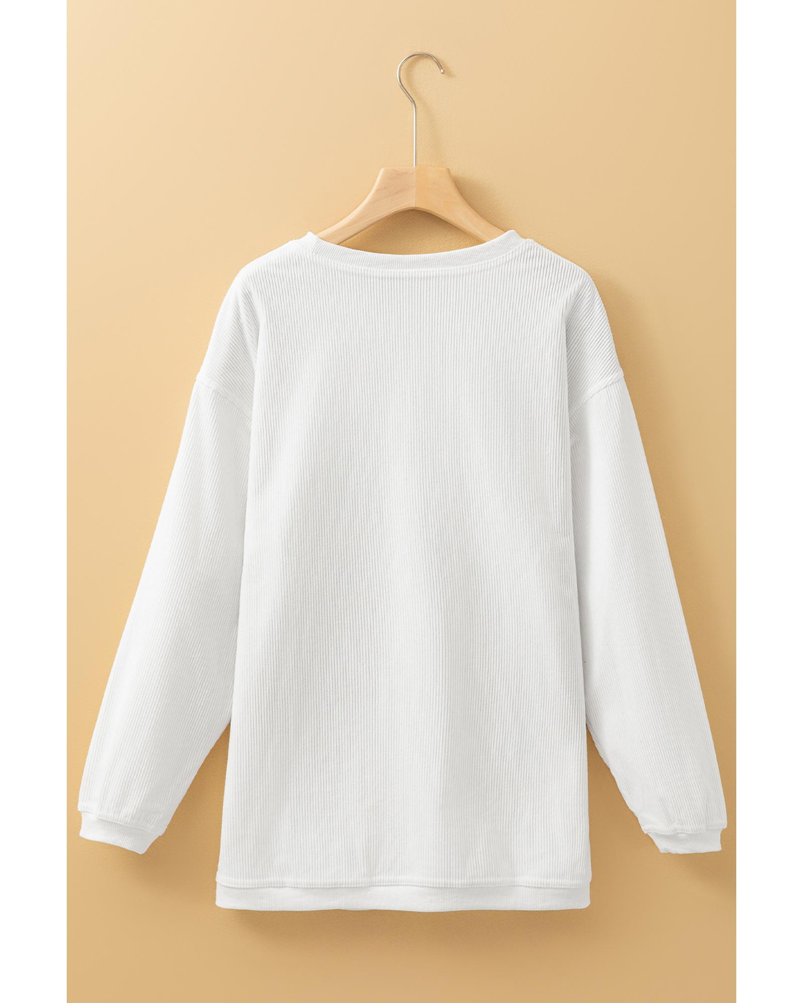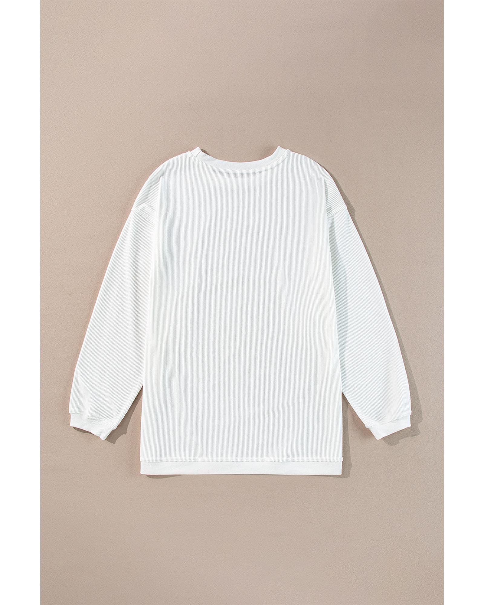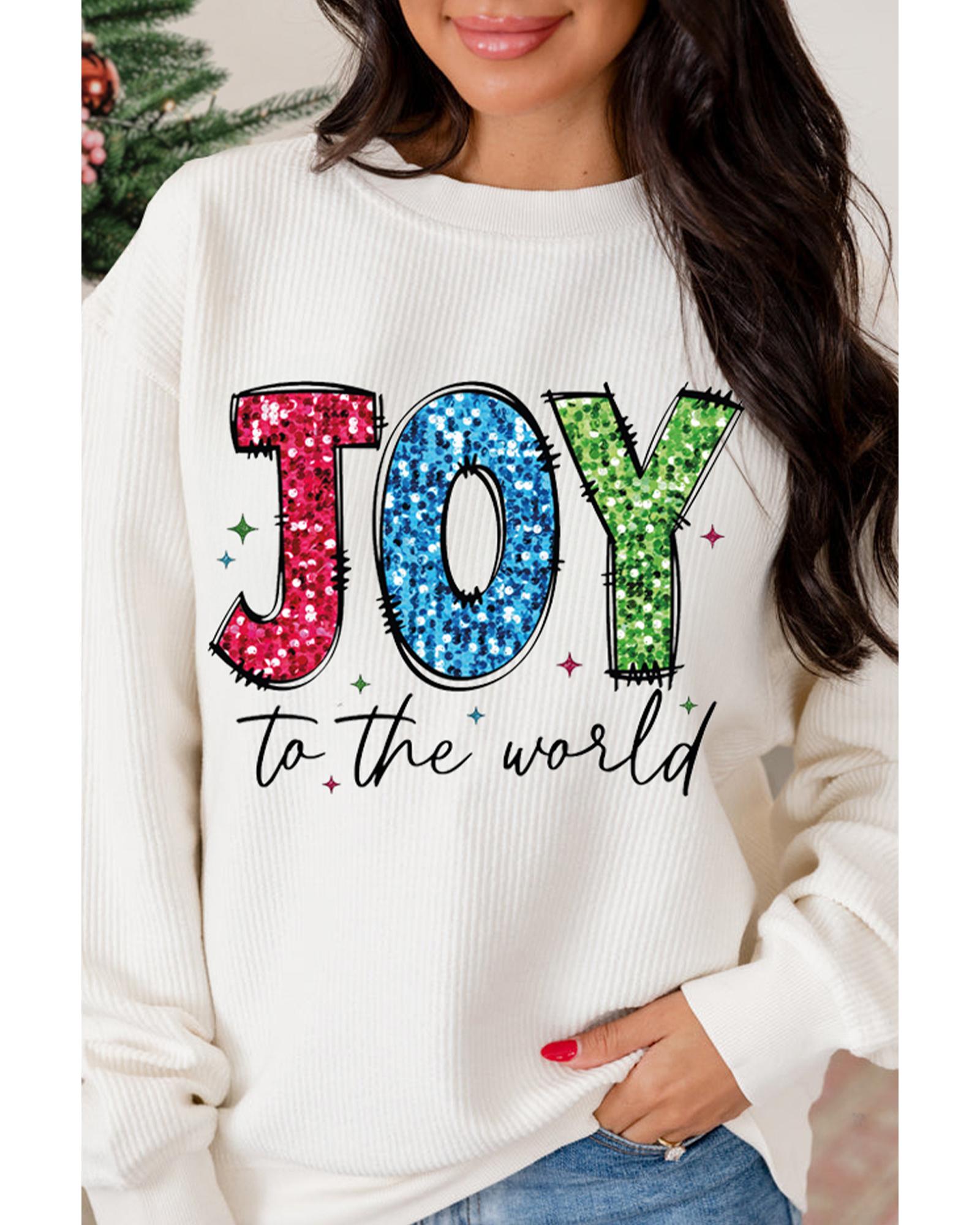 White JOY to the world Ribbed Crewneck Pullover Sweatshirt – S