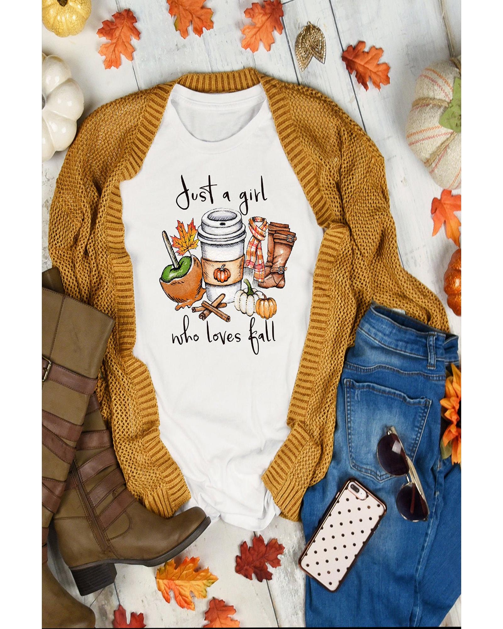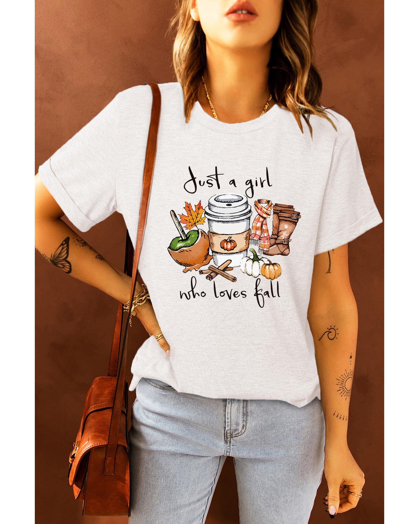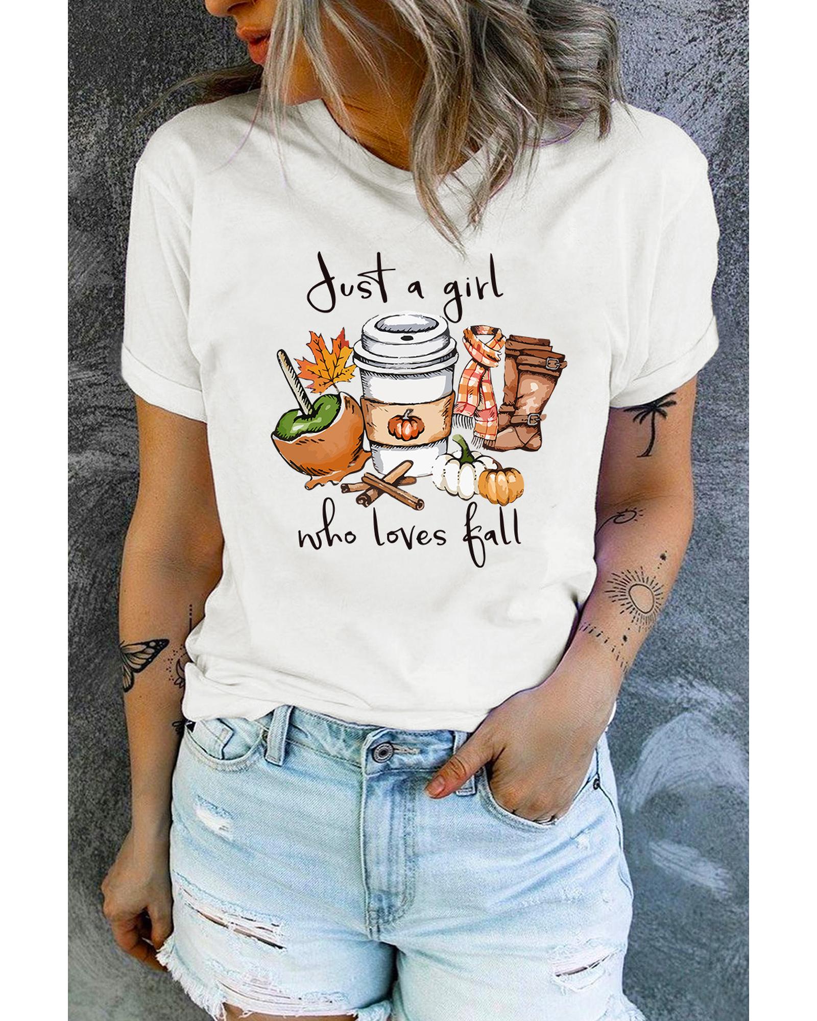 White Just A Girl Who Loves Fall Graphic T Shirt – M