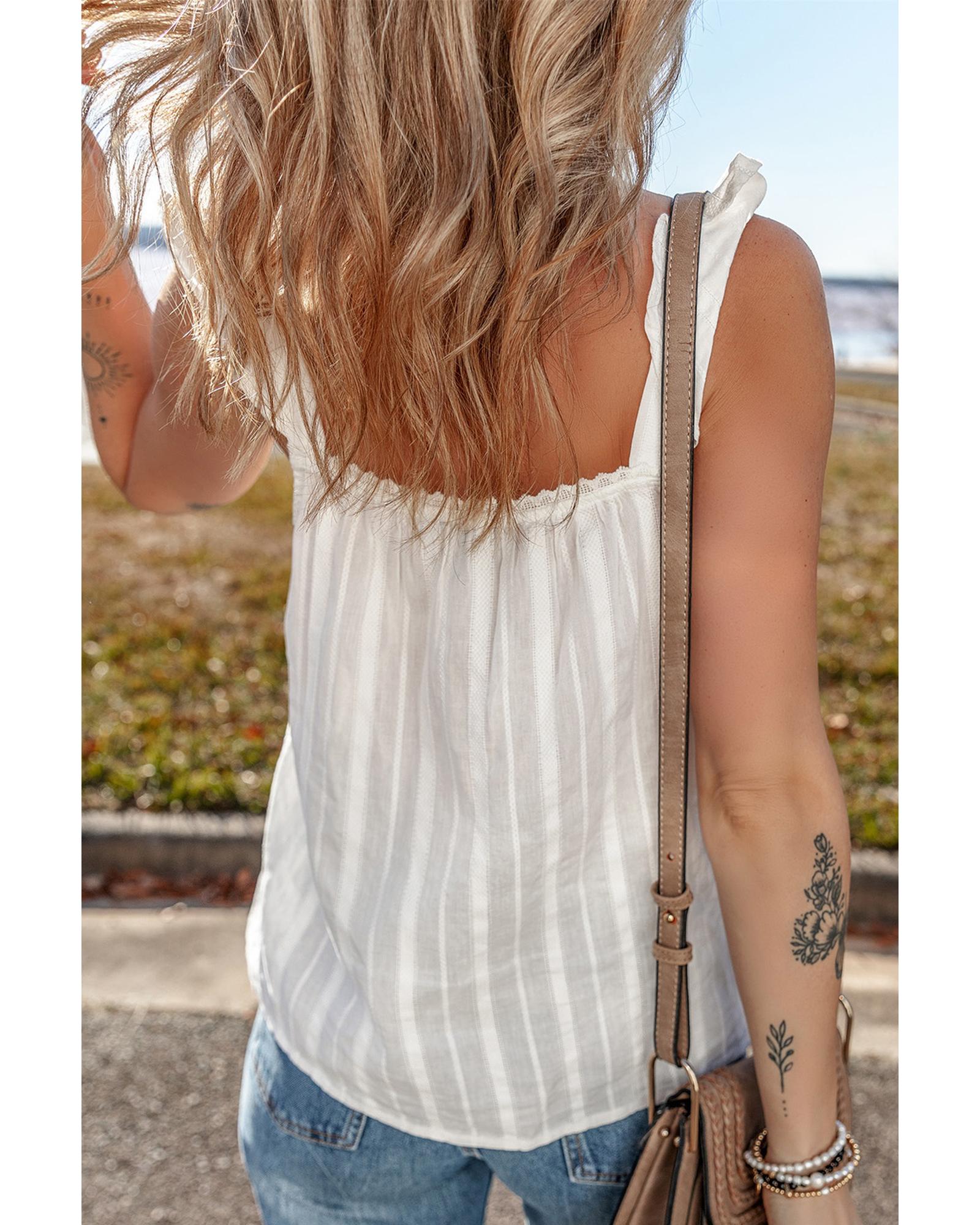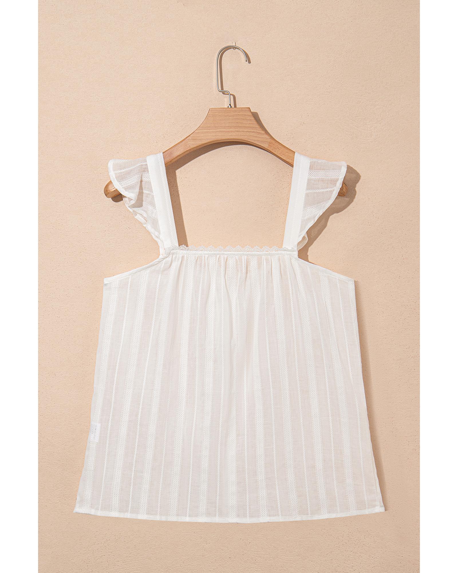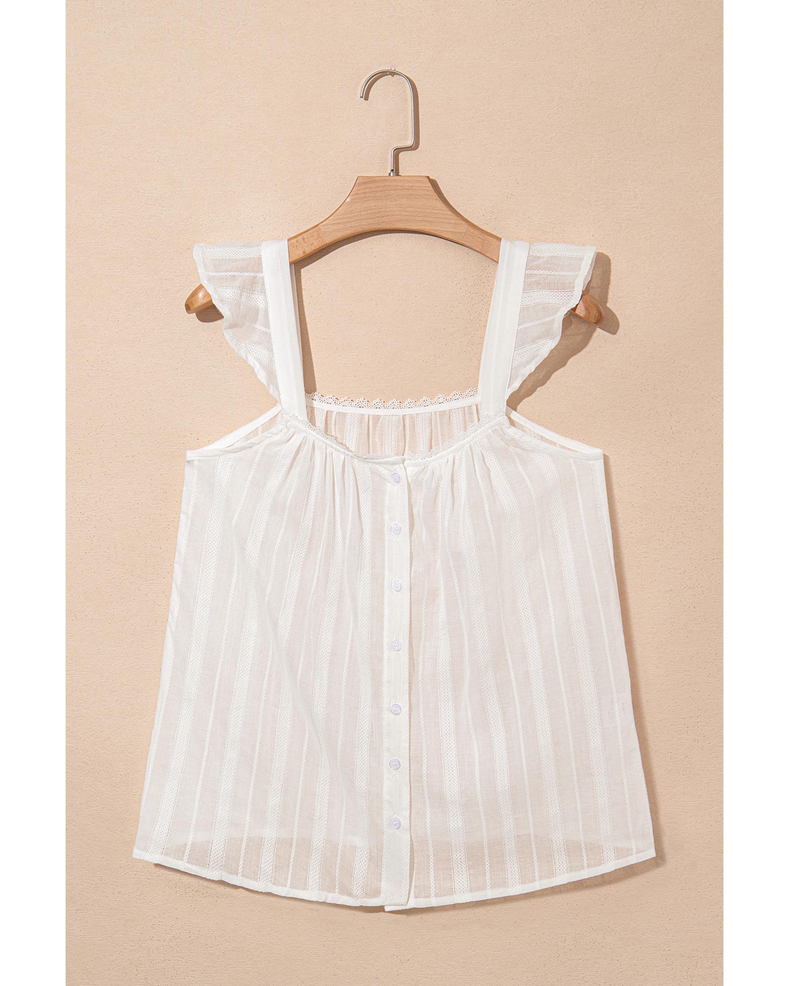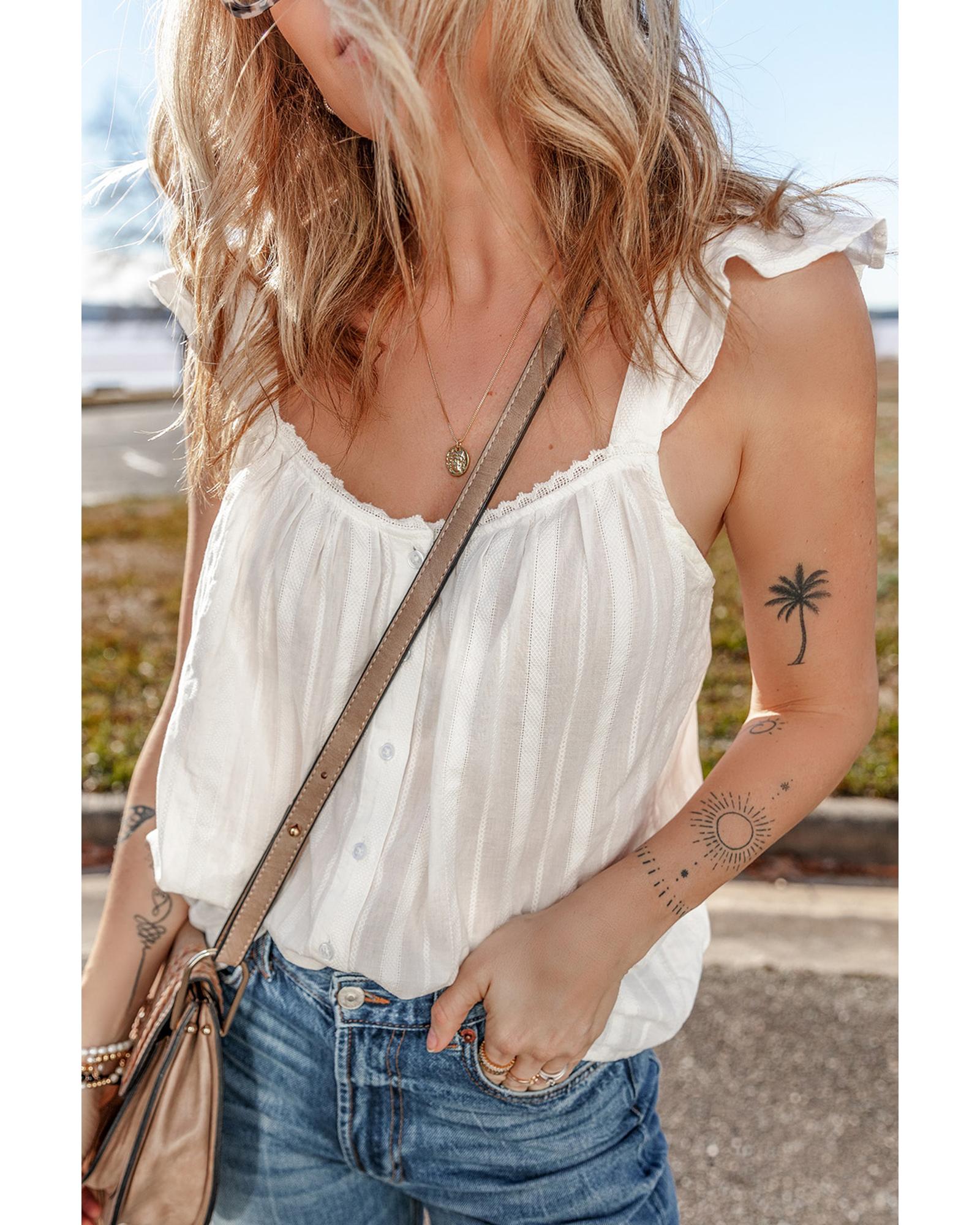White Lace Crochet Ruffled Buttoned Loose Fit Tank Top – XL