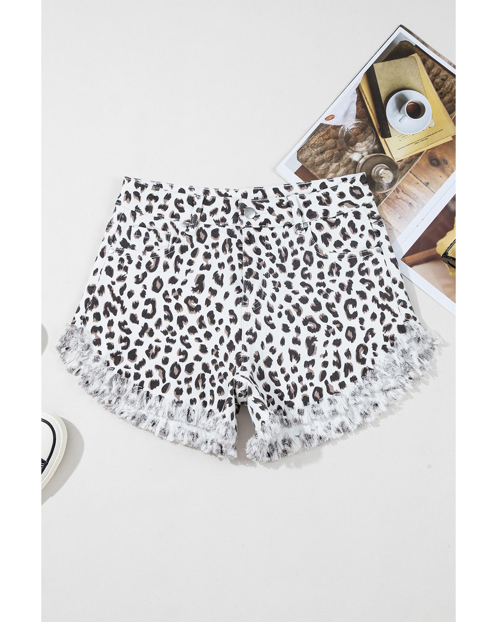 White Leopard Frayed Hem Denim Shorts – 8 US
