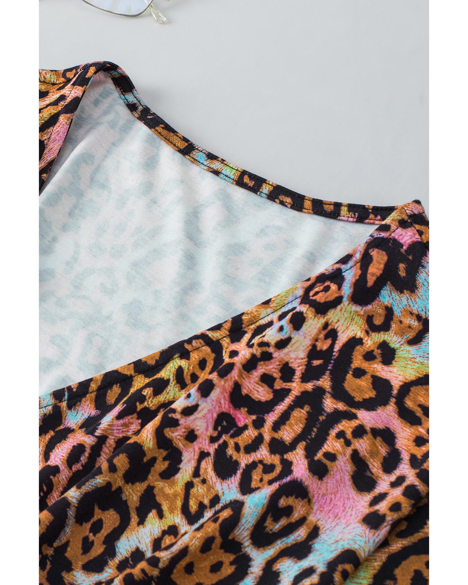 White Leopard Print Wide Sleeve Peplum Hem Blouse – XL