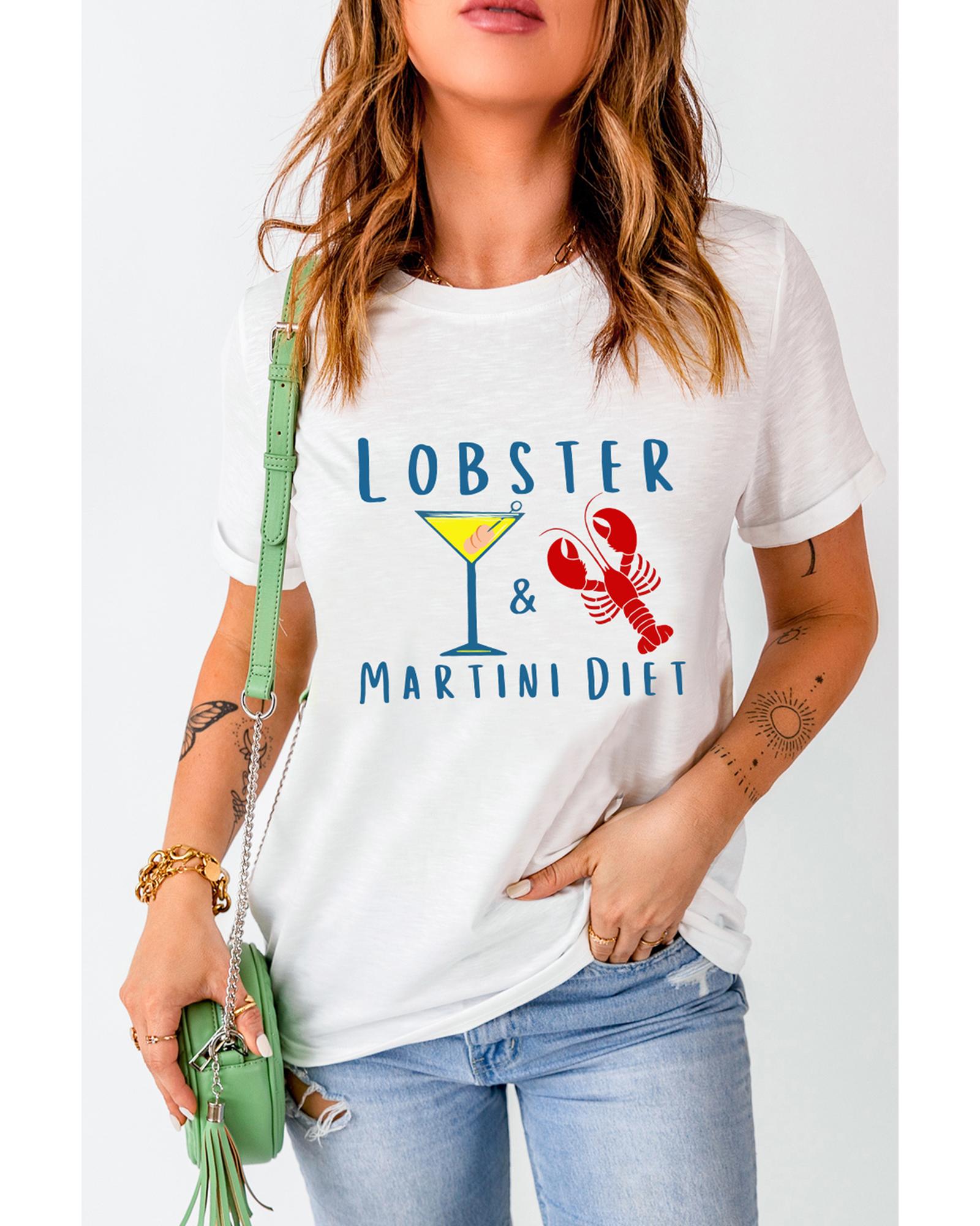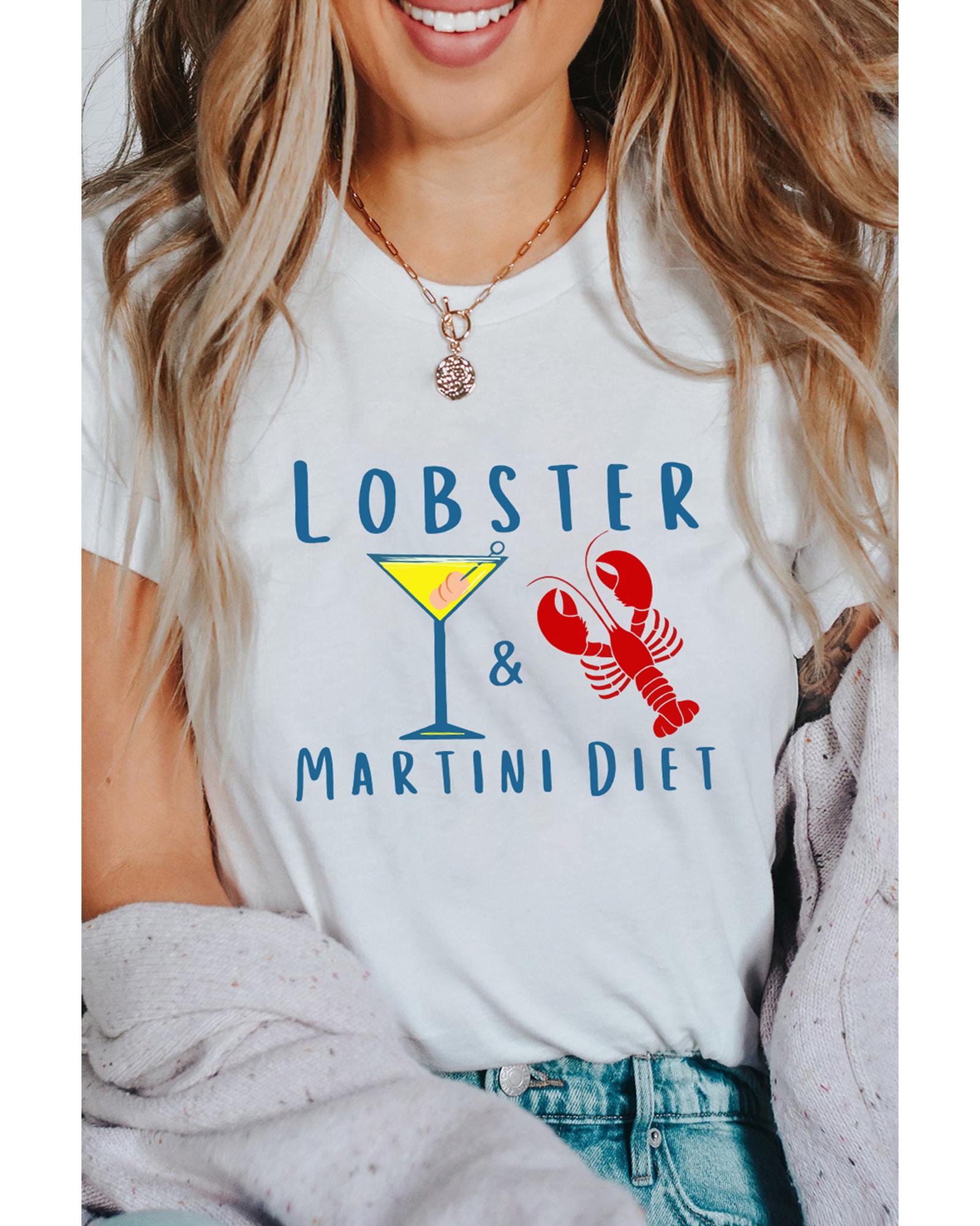 • White LOBSTER MARTINI DIET Cocktail & Crawfish Print T