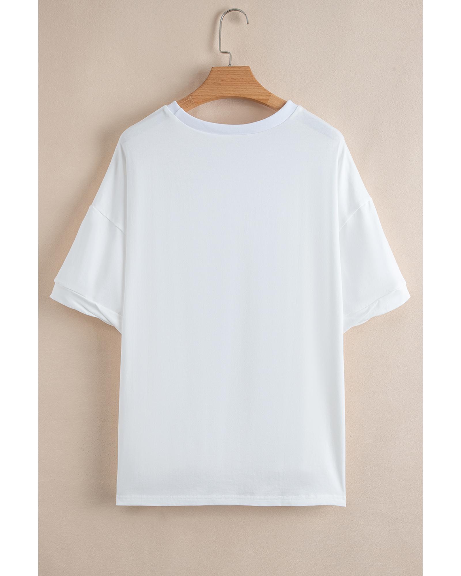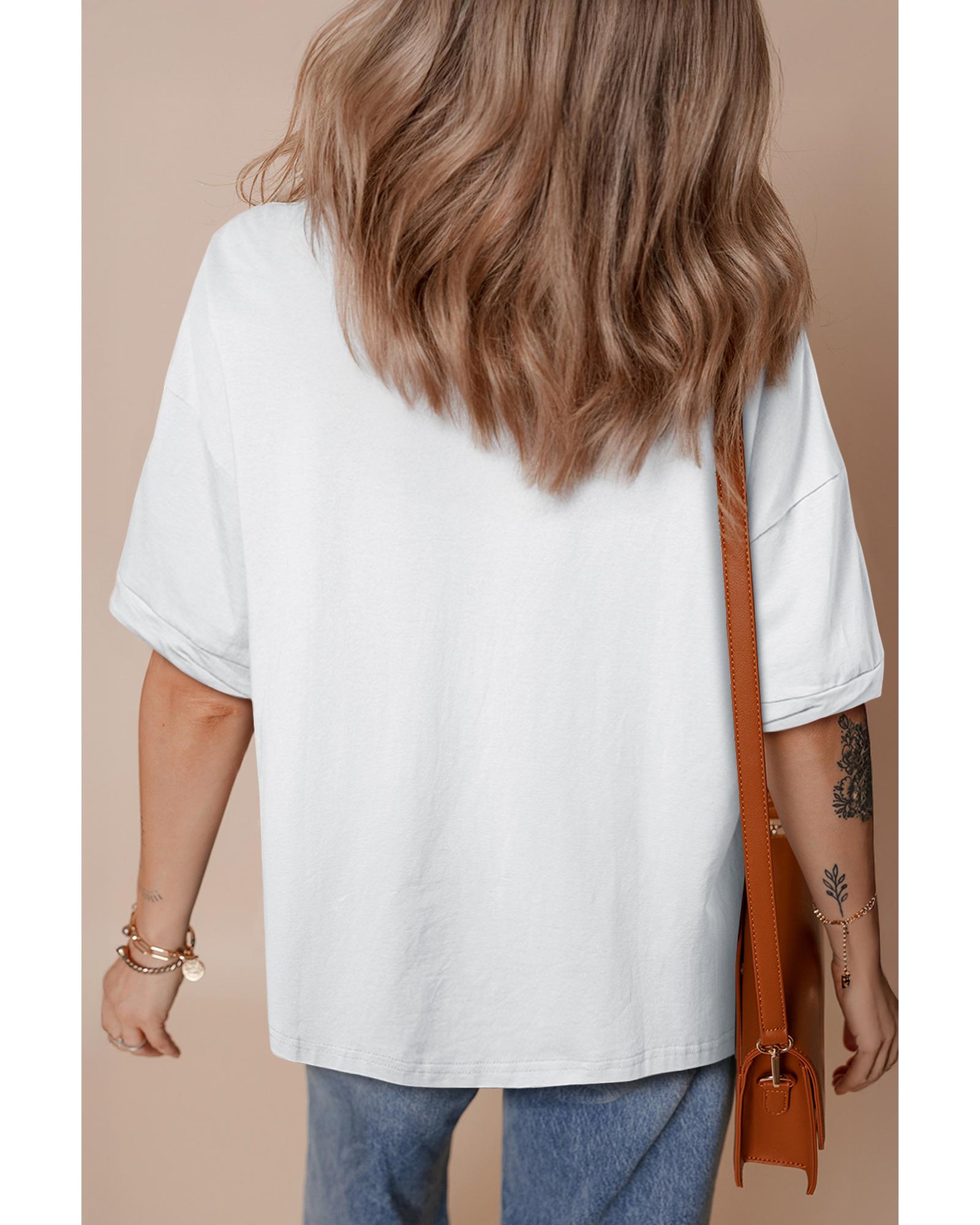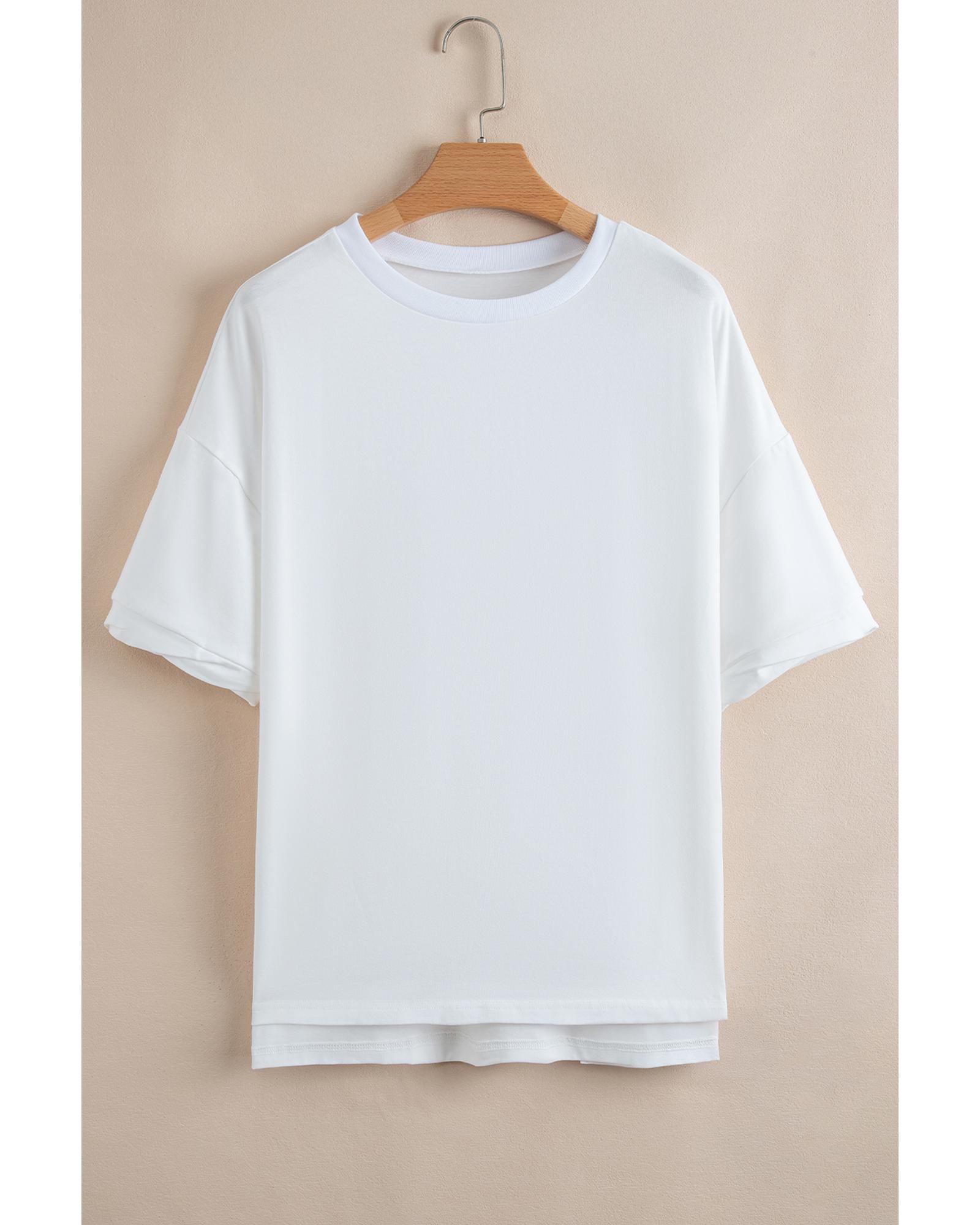 White Loose Half Sleeve Hi Low Hem T Shirt – L