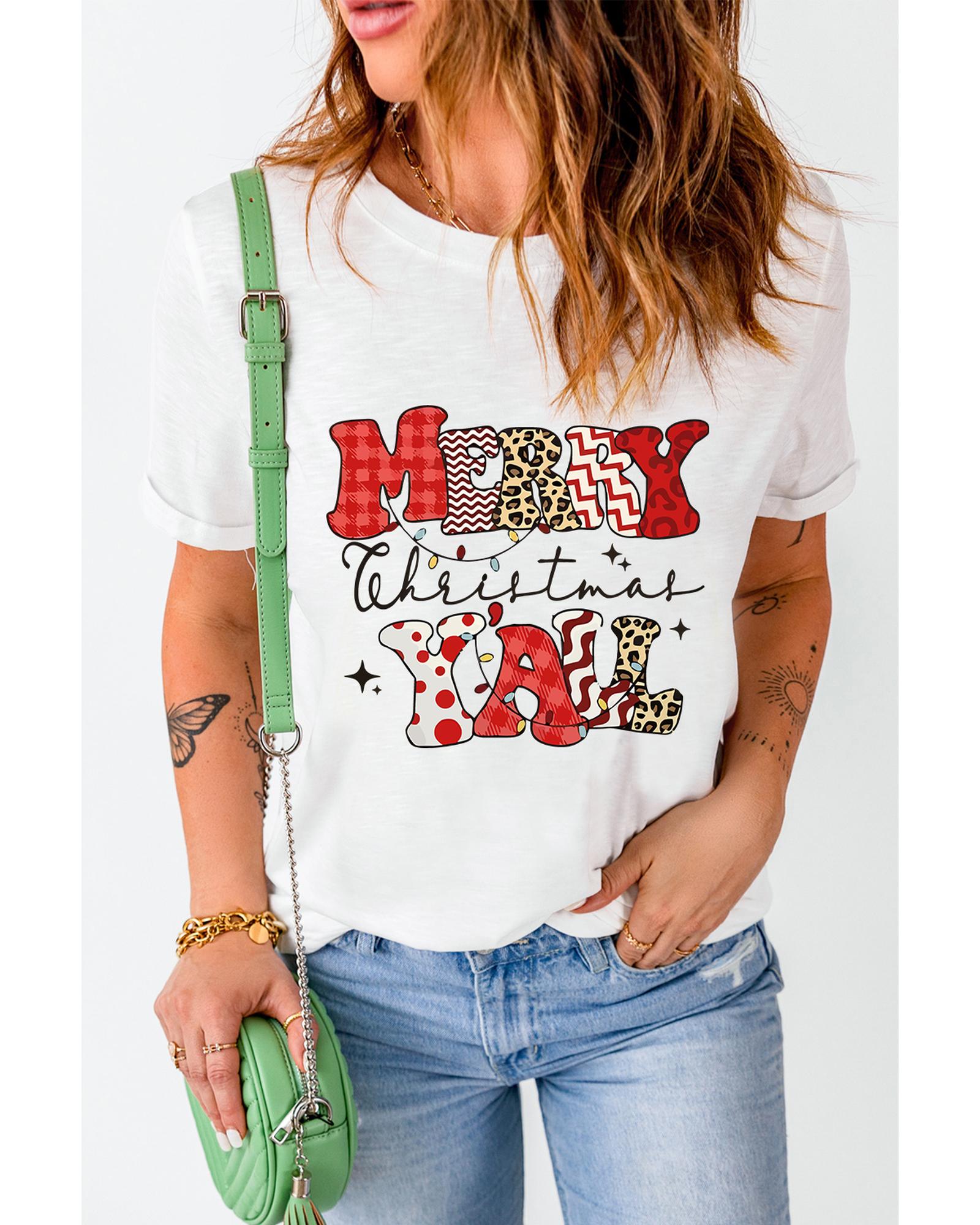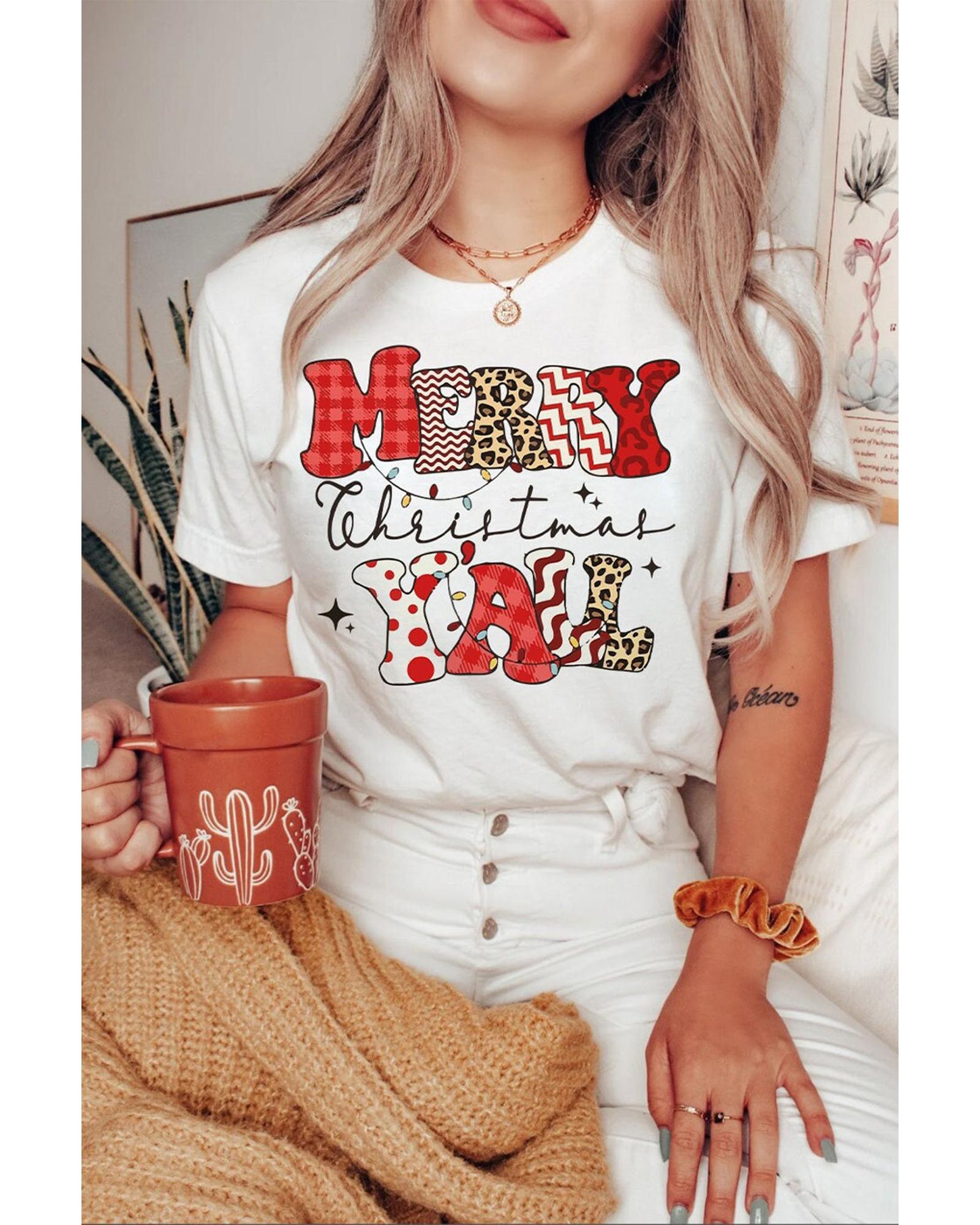 White MERRY Christmas YAll Graphic Crewneck T Shirt – 2XL