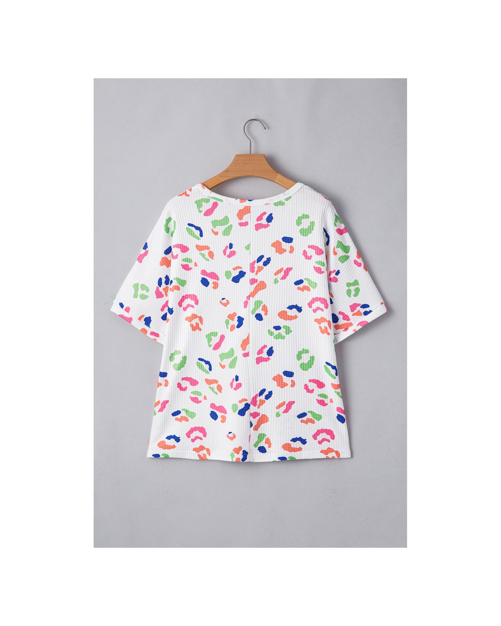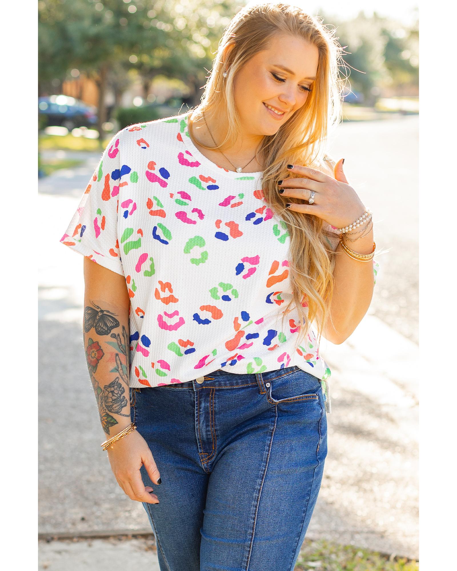 White Multicolor Leopard Print Textured Plus Size T Shirt – 4X
