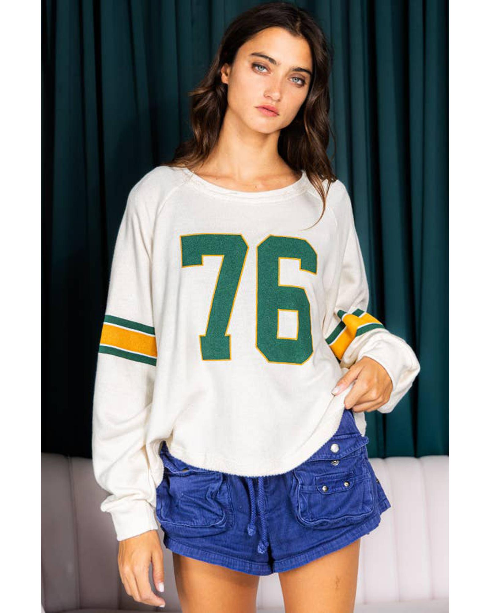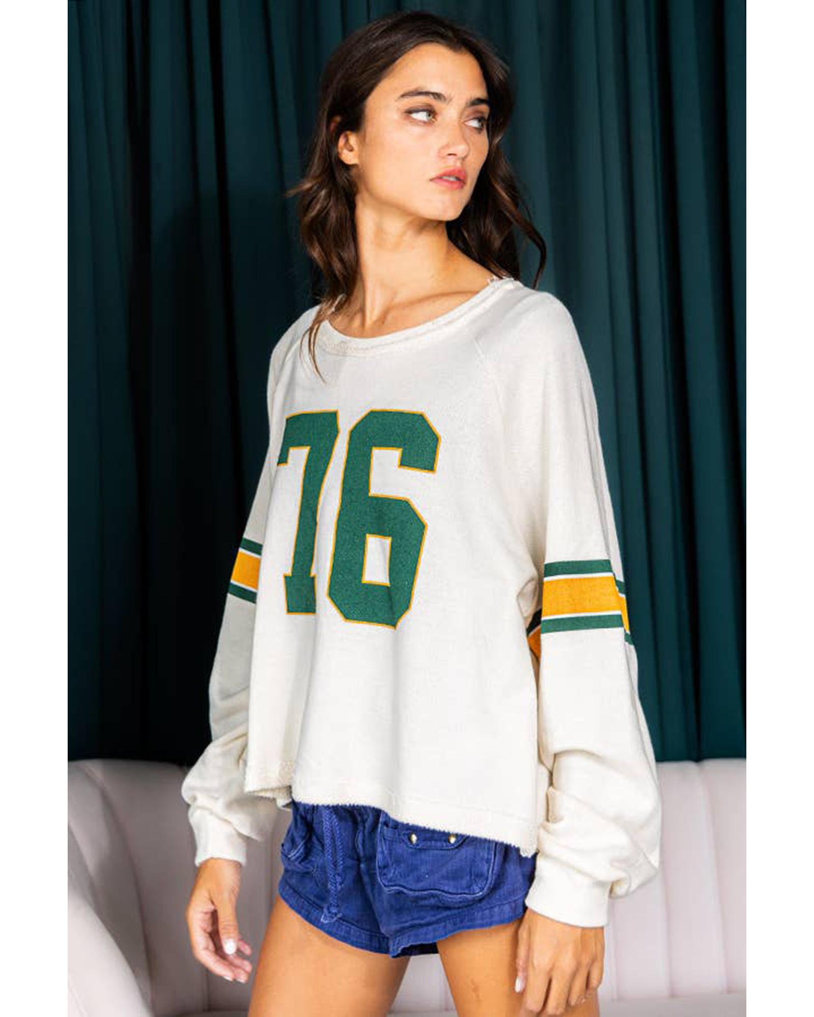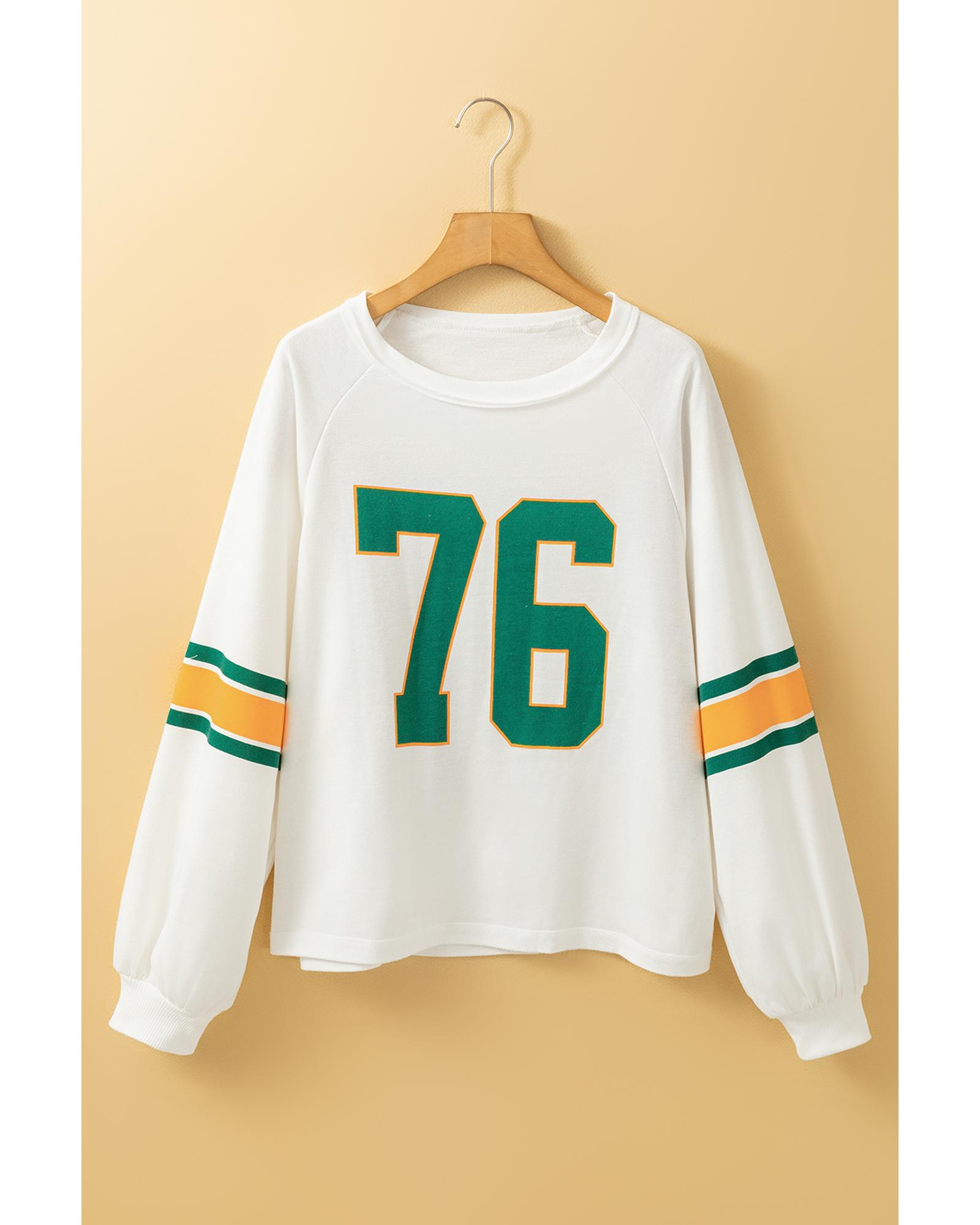 White Number 76 Printed Retro Sporty Long Sleeve Top – XL