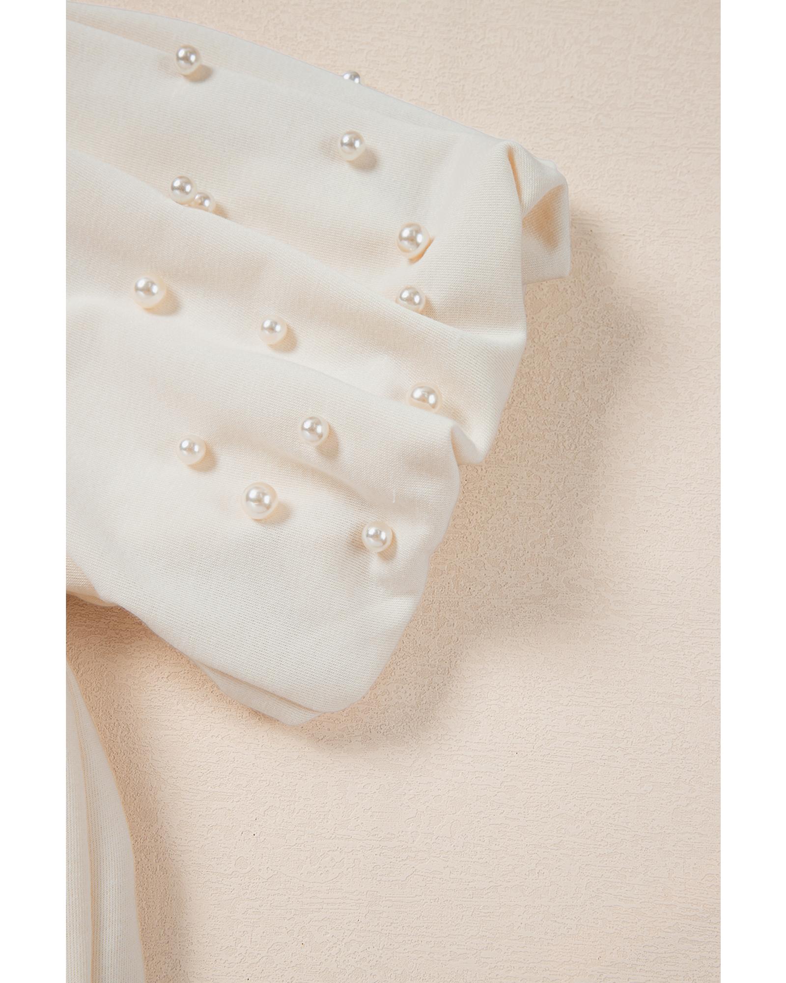 - White blouse with luxurious pearled decoration on sleeves