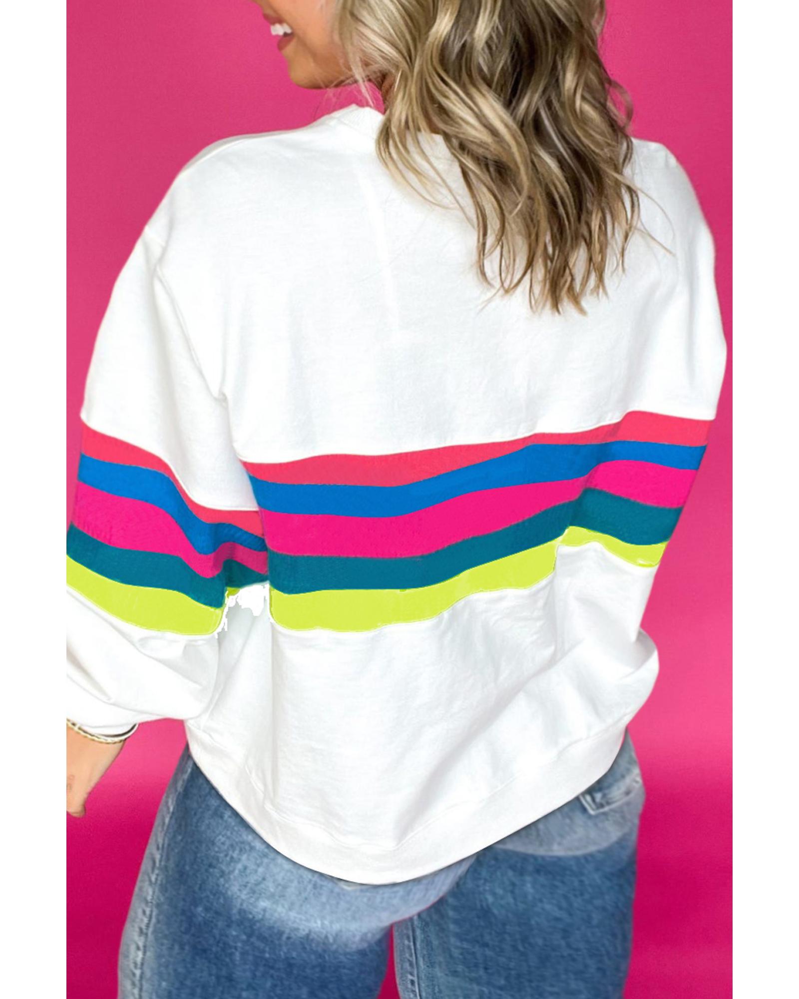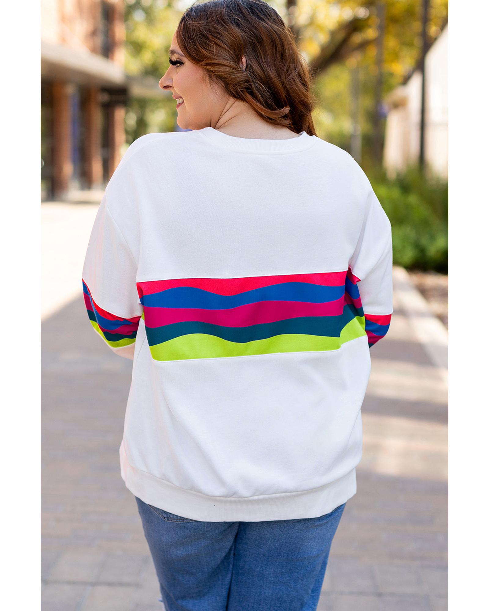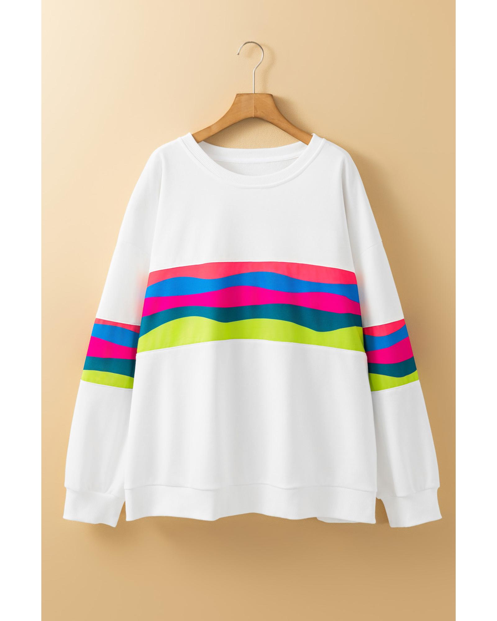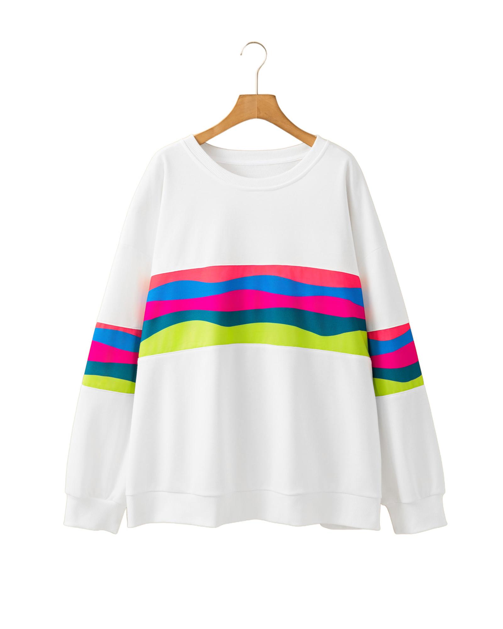 White Plus Size Colorful Striped Drop Shoulder Loose Sweatshirt – 2X