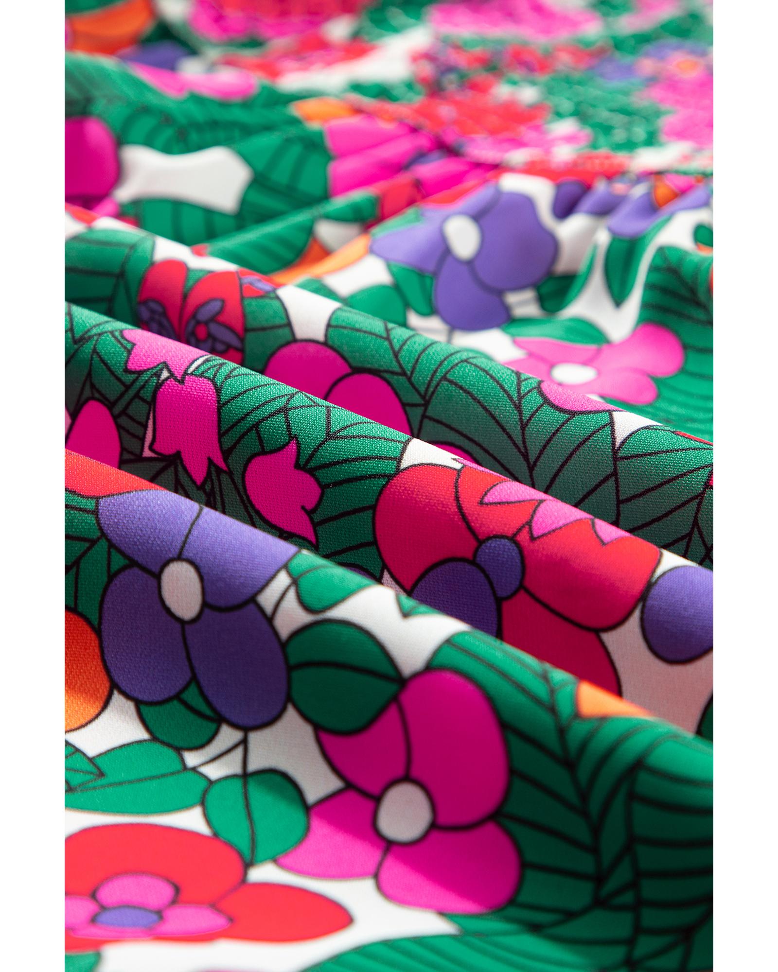 White Plus Size Floral Frilled Square Neck Shirred Long Sleeve Dress - 2X