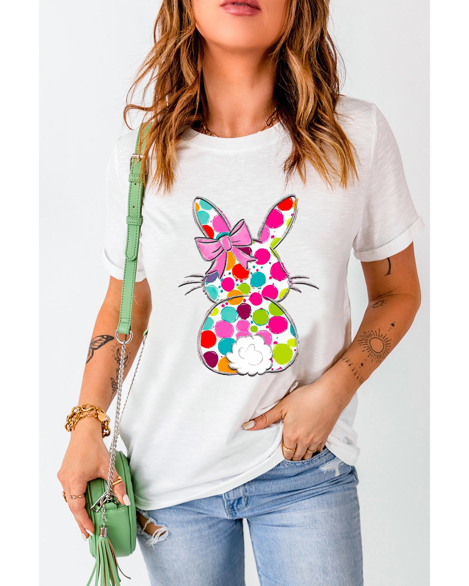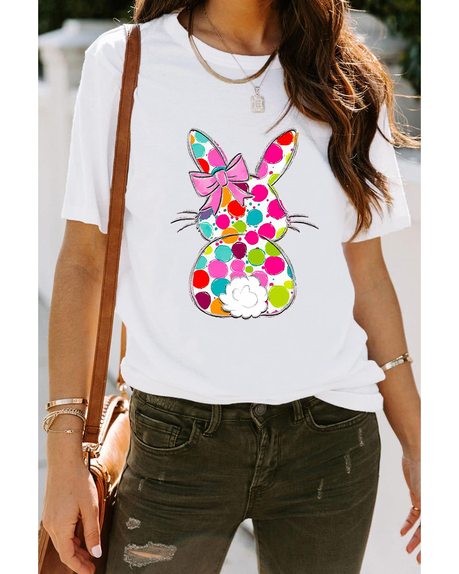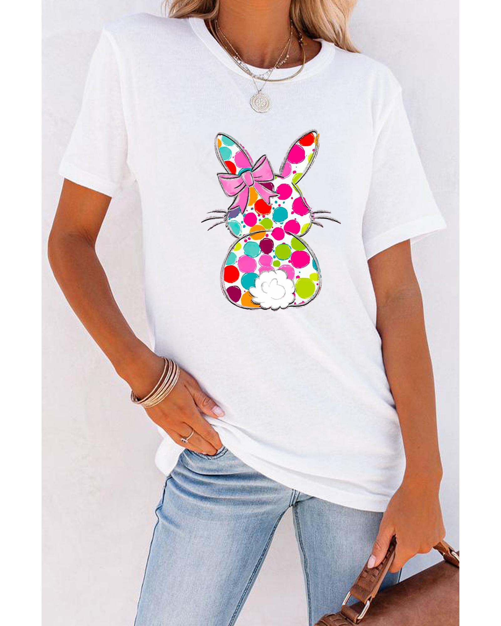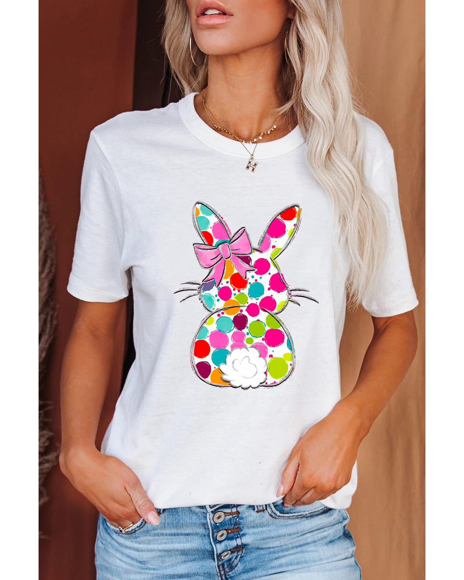 White Polka Dot Bow Rabbit Graphic Crewneck Easter Fashion Tee – XL