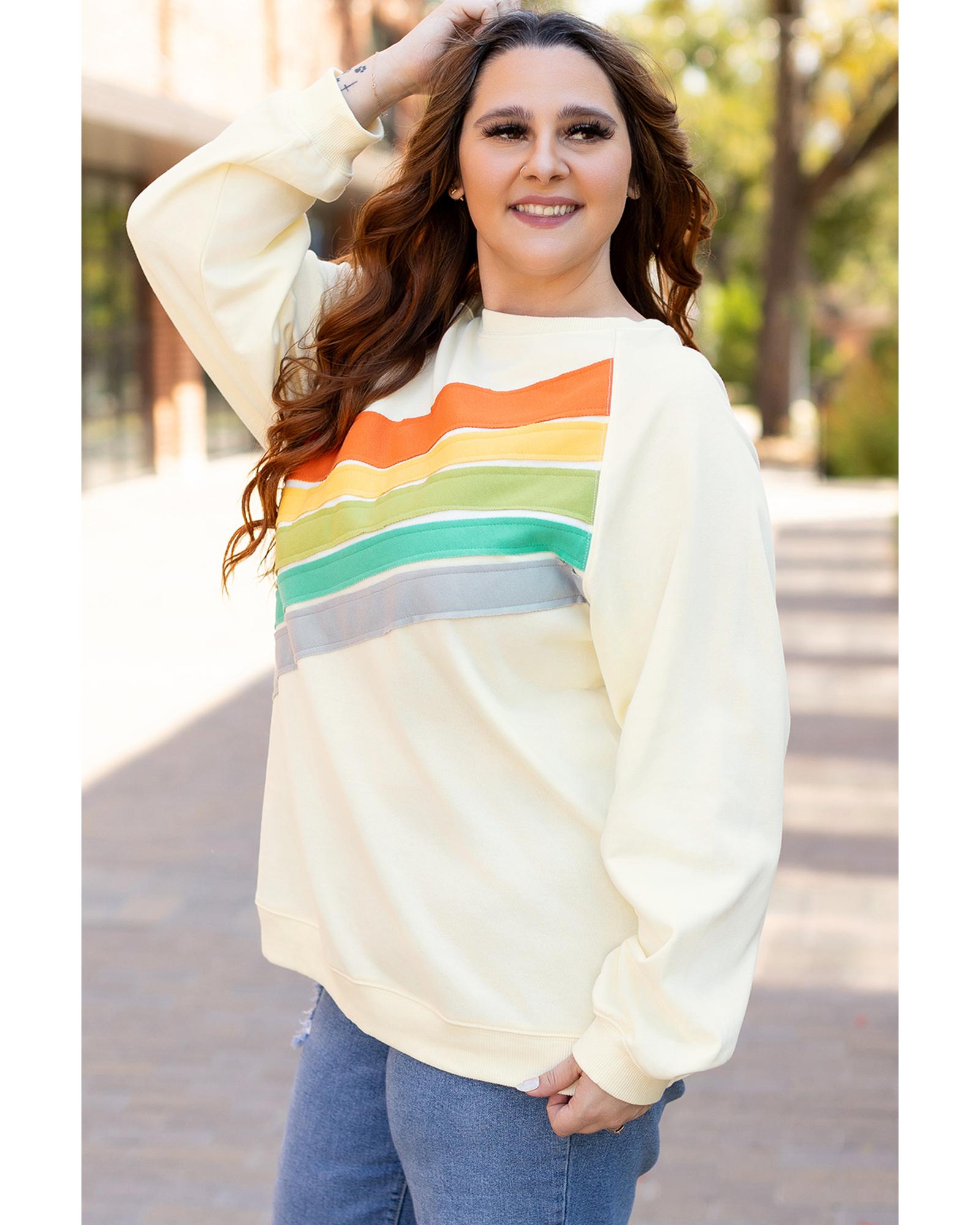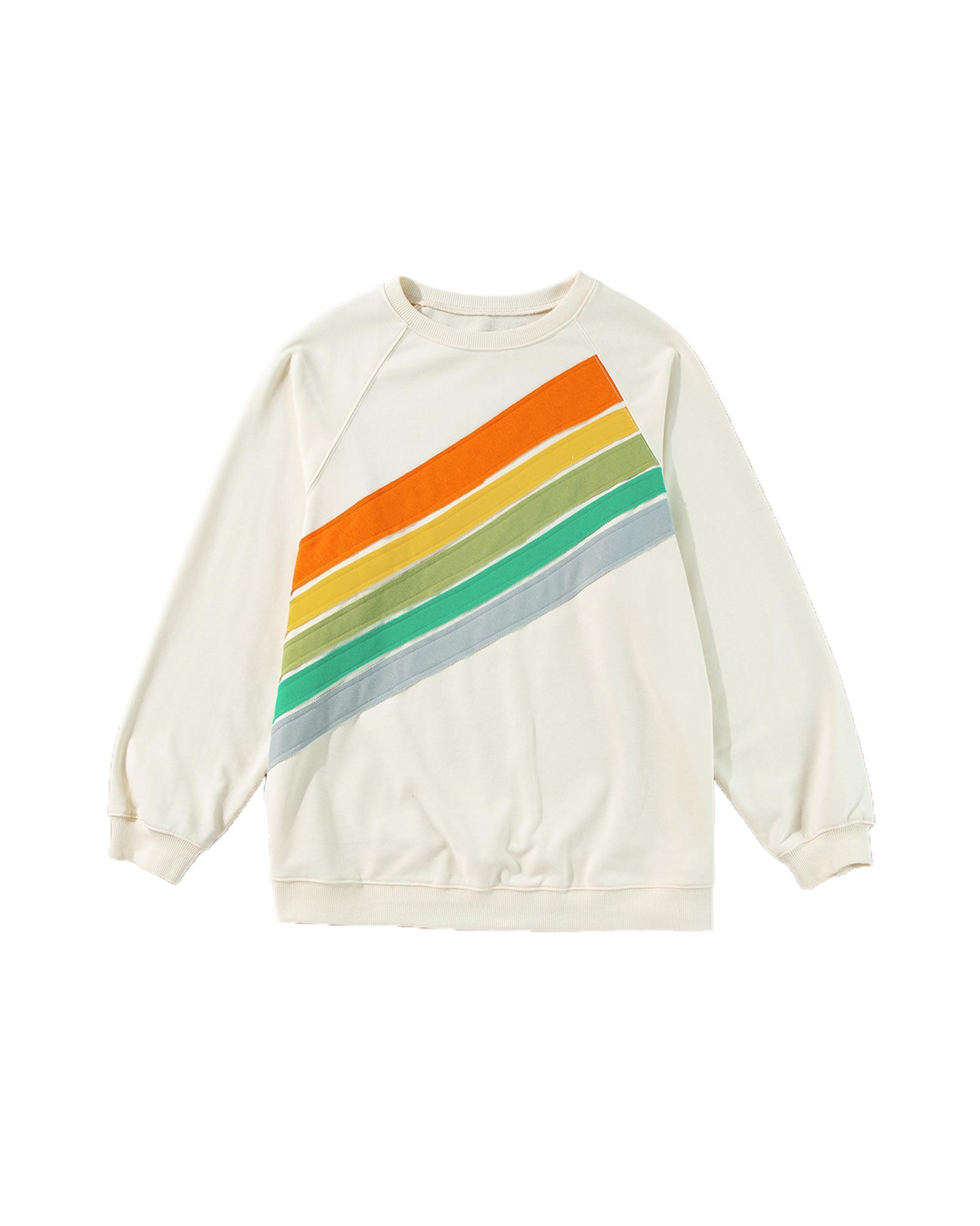 - Vibrant white Rainbow Raglan Sleeve Crew Neck Plus Size Sweatshirt with rainbow pattern