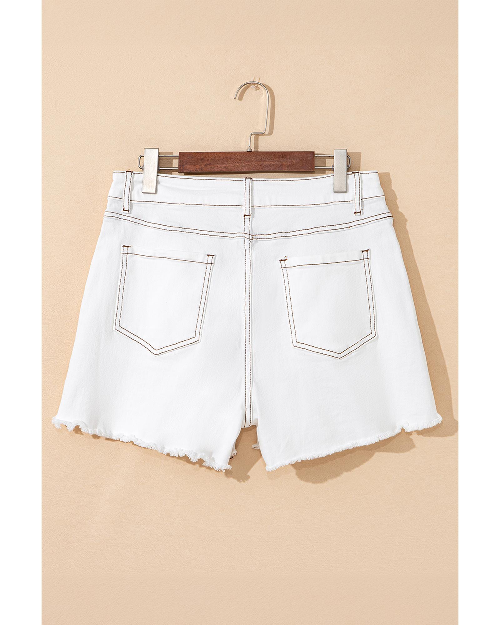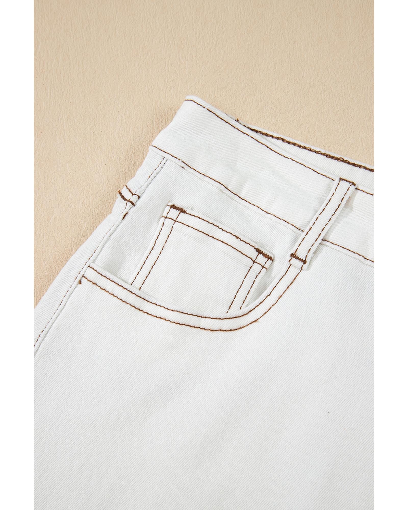Dusk Blue Rhinestone Distressed Denim High Waist Mini Skirt - L
