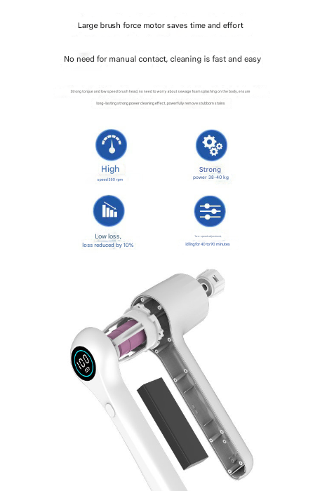• Powerful & Efficient Cleaning: Equipped with a robust motor offering adjustable spin speeds (e.g., 240/270 RPM for controlled cleaning and reduced splashing, and a higher speed up to 350-450 RPM for tough stains), this scrubber effortlessly removes dirt, soap scum, grease, and grime.